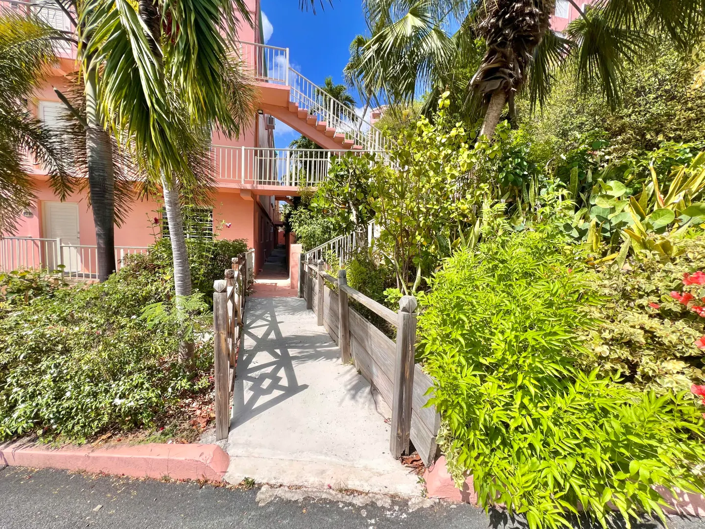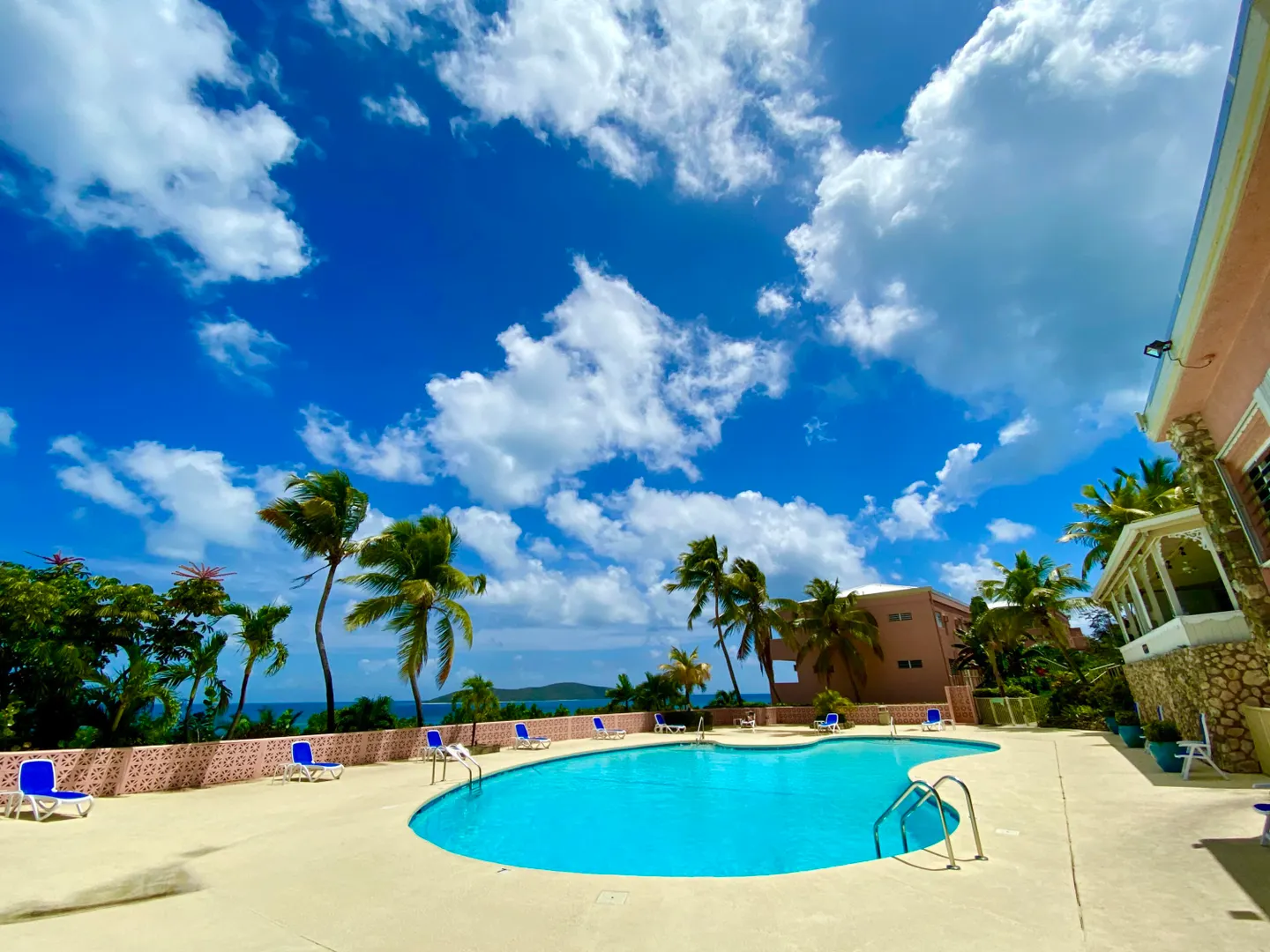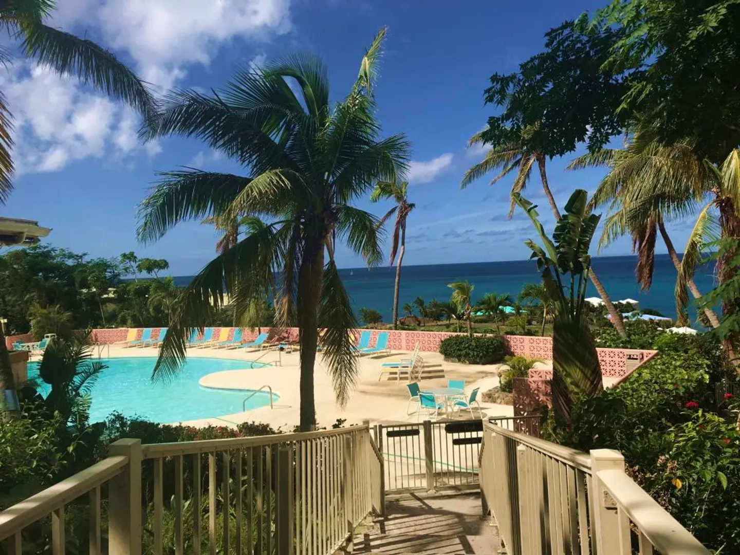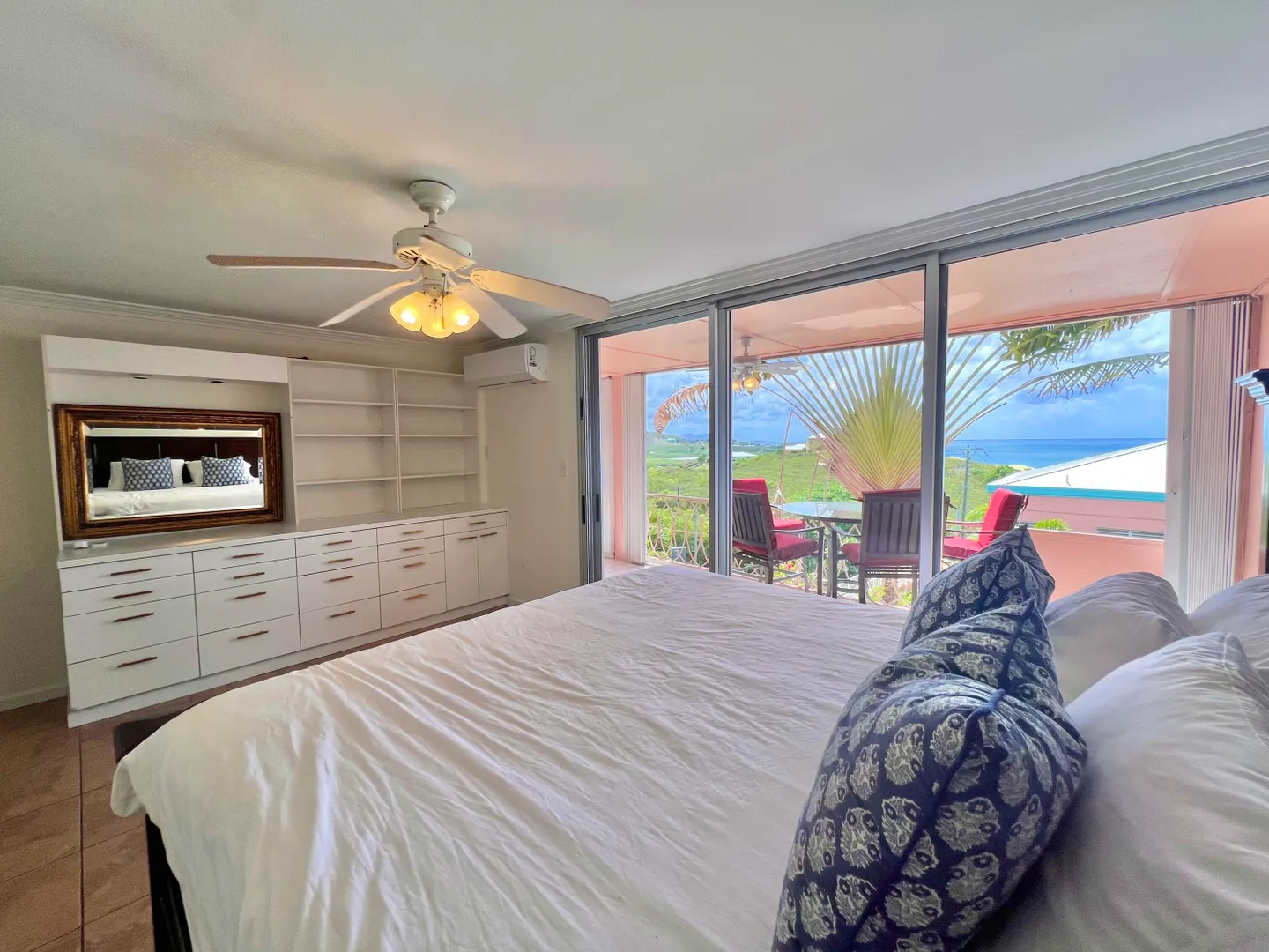 Beautiful and spacious 2-bedroom unit that is ready for its new owner to make it their own! Buck Island and sea views from the spacious gallery, which is perfect for alfresco dining, taking in the sunset or enjoying your morning coffee. All rooms are on one level and this unit offers an open and spacious living area and kitchen as you enter the unit. The bedrooms each have their own full bath en-suite with ample space. Split A/Cs in each room, plenty of natural light and freshly painted. Located on the lower level, there are stairs to the unit or there is a walkway that allows access without stairs! The building is one level above the pool for easy access to the pool and seasonal restaurant, GOAT. The J building is a dead end, so no through traffic and tucked away far from main road.