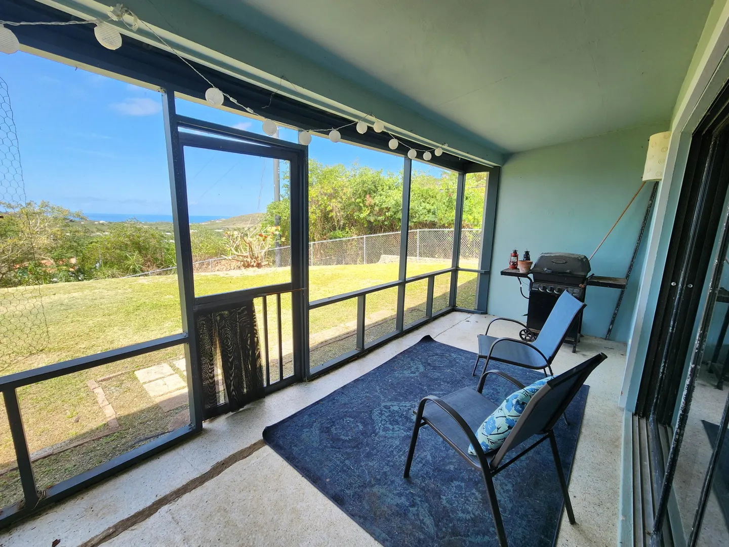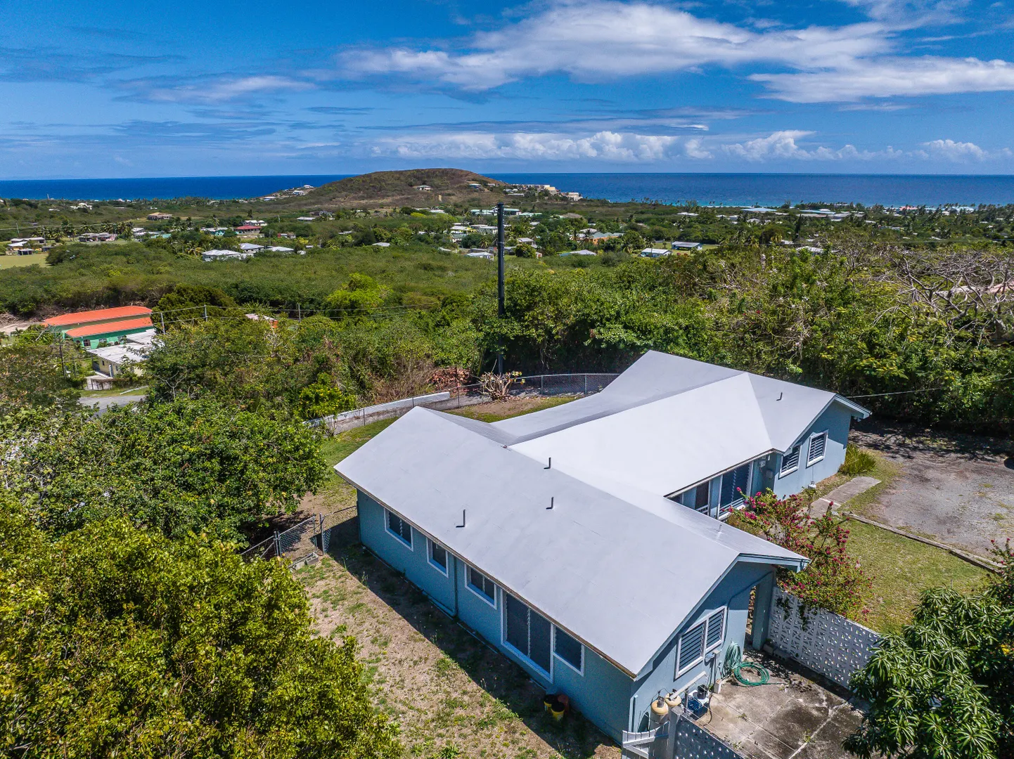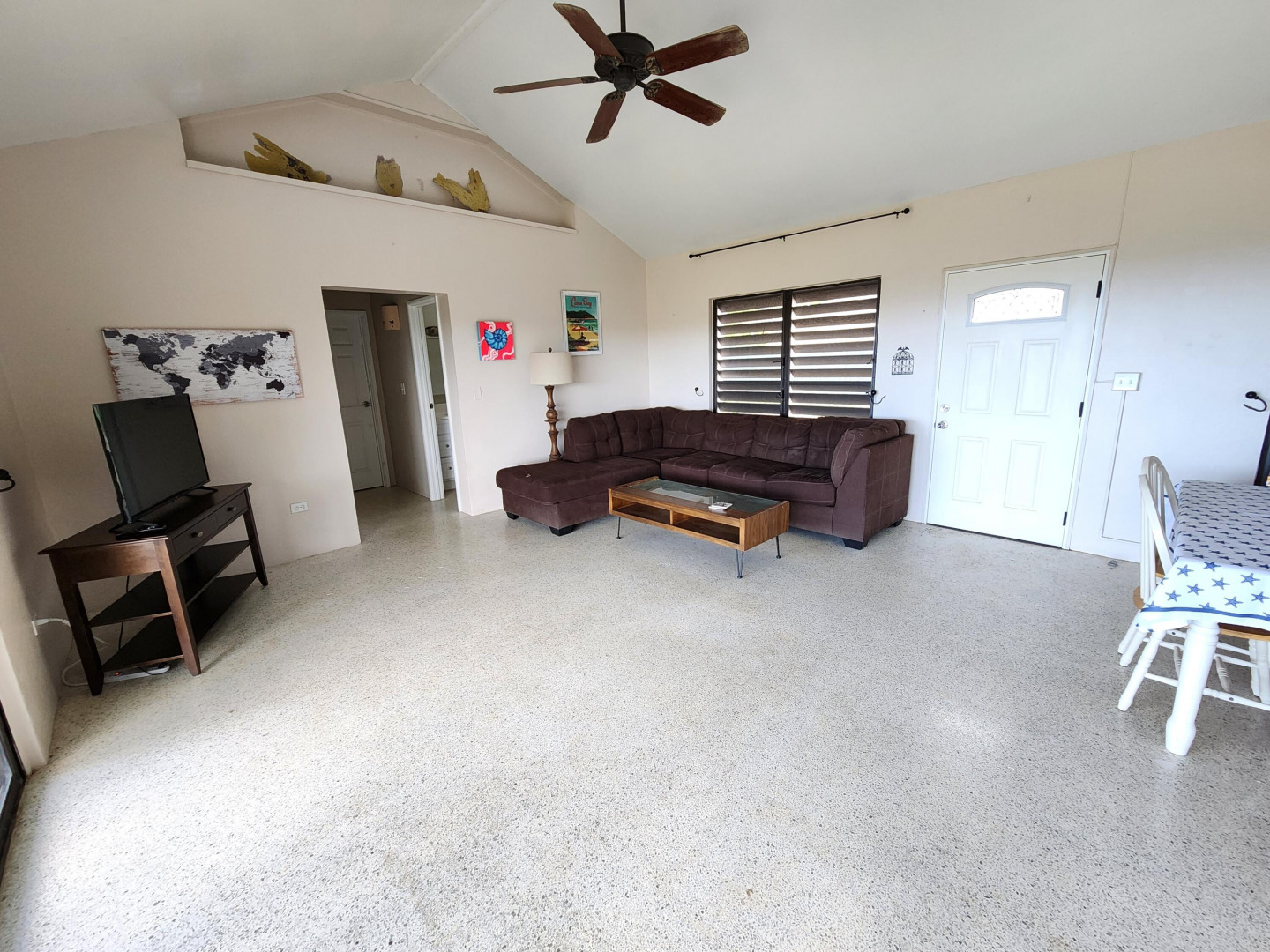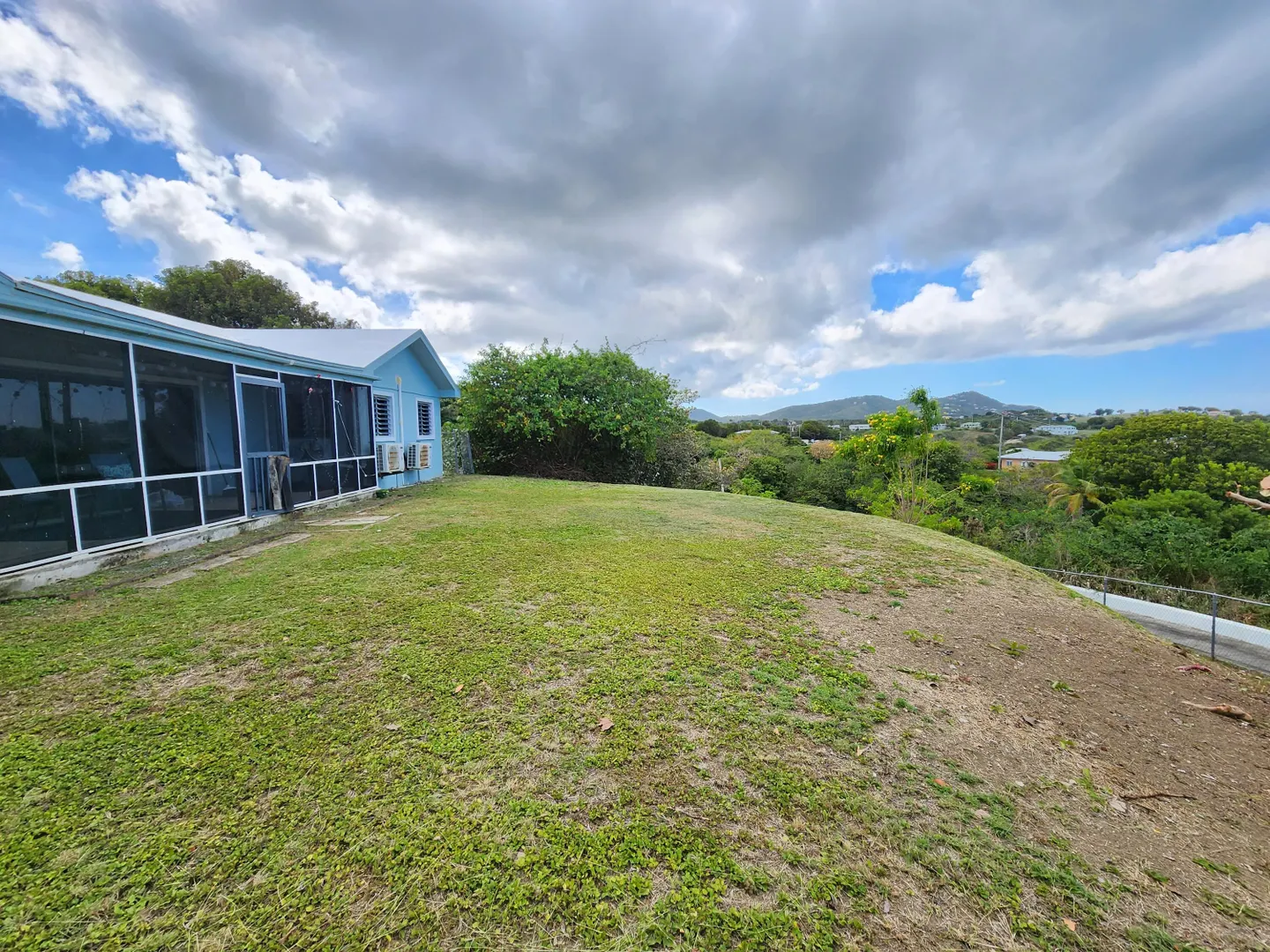 Pets allowed! Internet and lanscaping included. Nestled on a spacious 0.6-acre lot just a short drive from Christiansted, this delightful 3-bedroom, 2-bathroom home blends comfort and privacy. With a fully fenced backyard perfect for outdoor activities and pets, the screened-in patio invites relaxation amid tranquil surroundings. Inside, the layout offers natural light and an open flow ideal for living and entertaining. Split AC units ensure year-round comfort. Enjoy breathtaking views of the Caribbean and sister islands right from your backyard.House is also listed for sale MLS #25-565