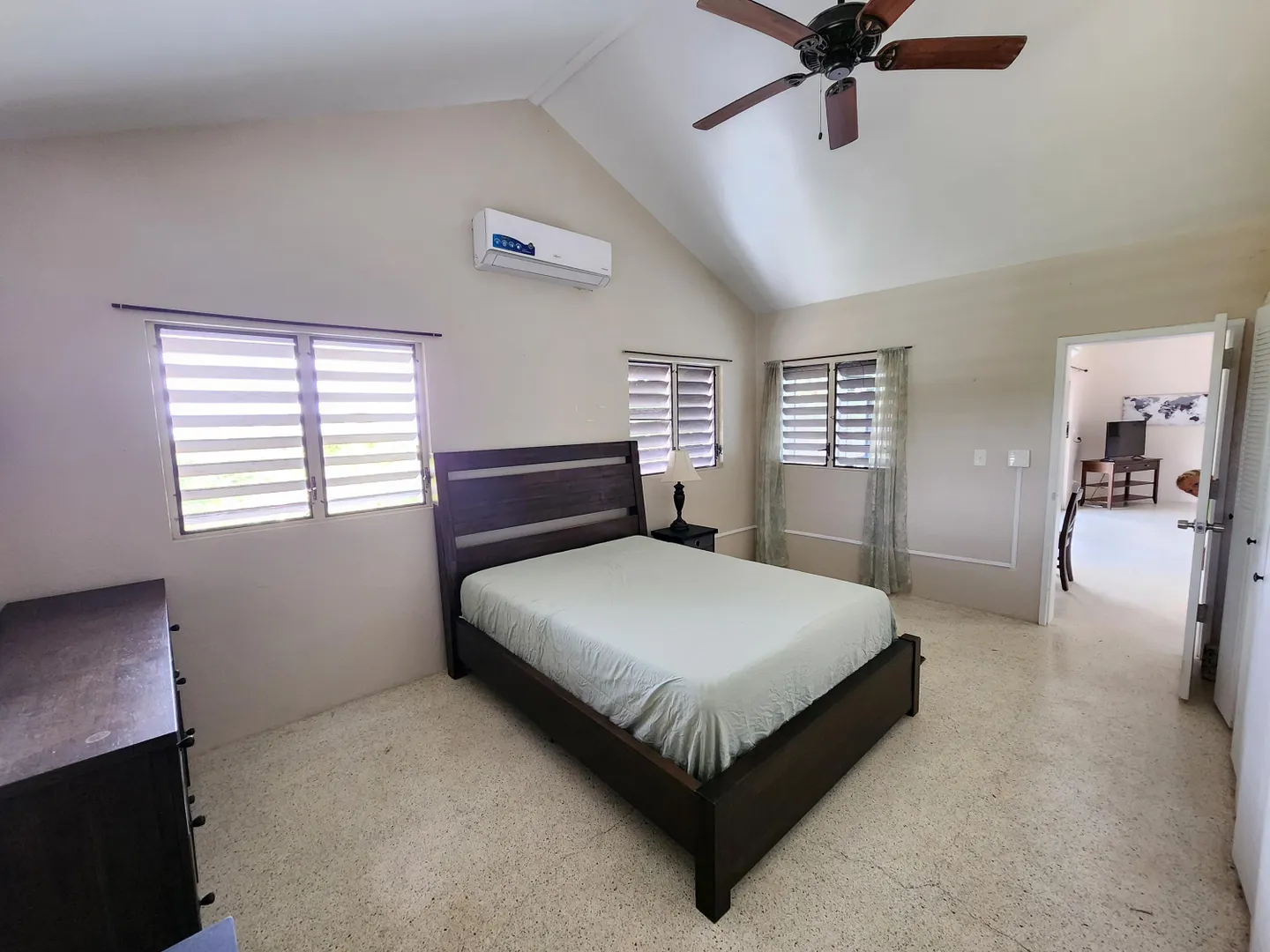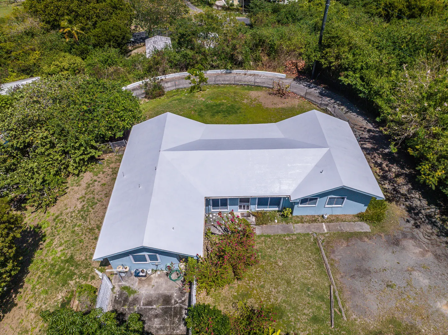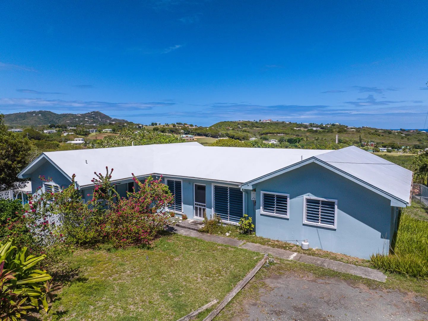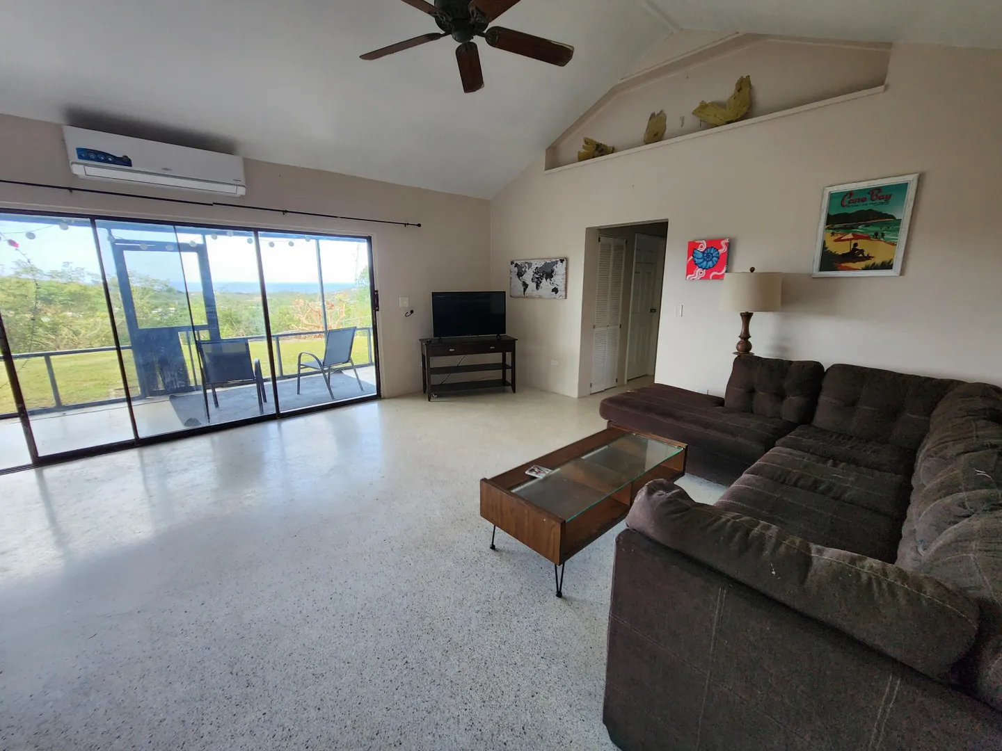 Pets allowed! Internet and lanscaping included. Nestled on a spacious 0.6-acre lot just a short drive from Christiansted, this delightful 3-bedroom, 2-bathroom home blends comfort and privacy. With a fully fenced backyard perfect for outdoor activities and pets, the screened-in patio invites relaxation amid tranquil surroundings. Inside, the layout offers natural light and an open flow ideal for living and entertaining. Split AC units ensure year-round comfort. Enjoy breathtaking views of the Caribbean and sister islands right from your backyard.House is also listed for sale MLS #25-565