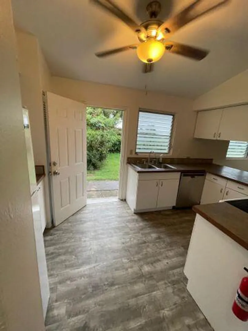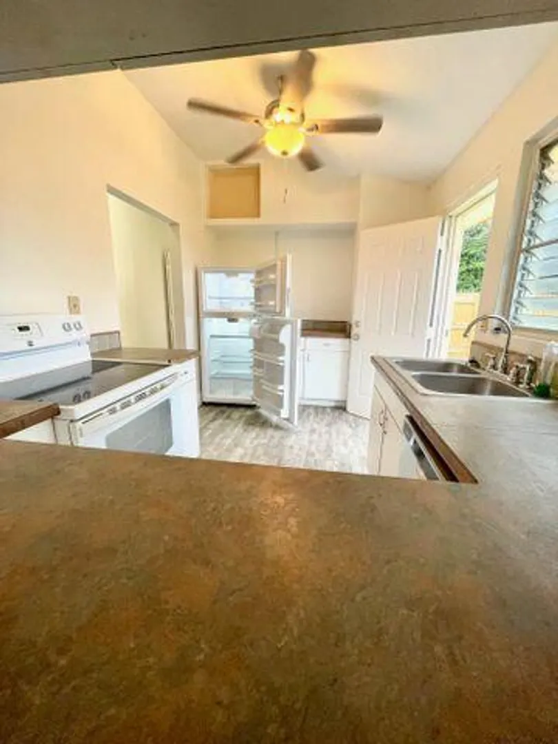 Pet friendly, 1 bedroom/1 Bath Christiansted rental includes dishwasher, A/C, fridge/freezer, & coin-operated washer/dryer on premises.