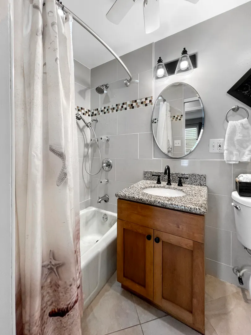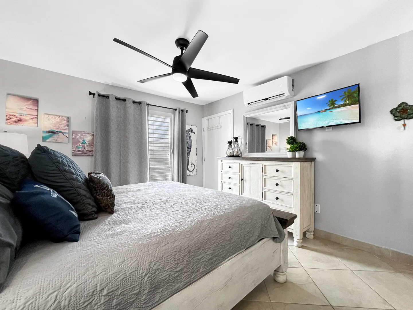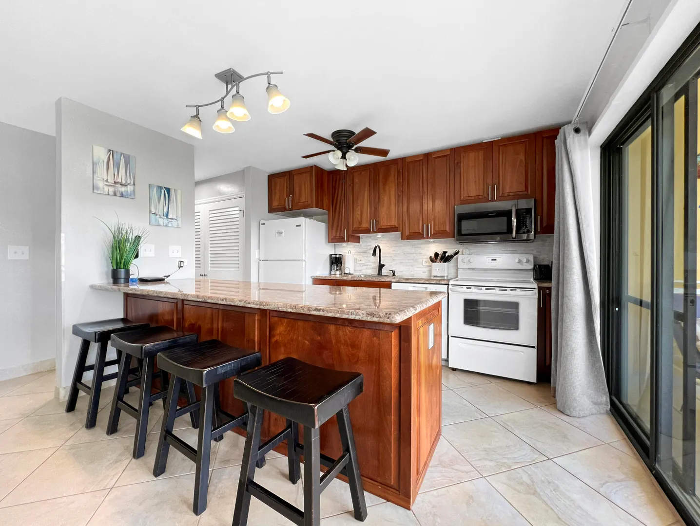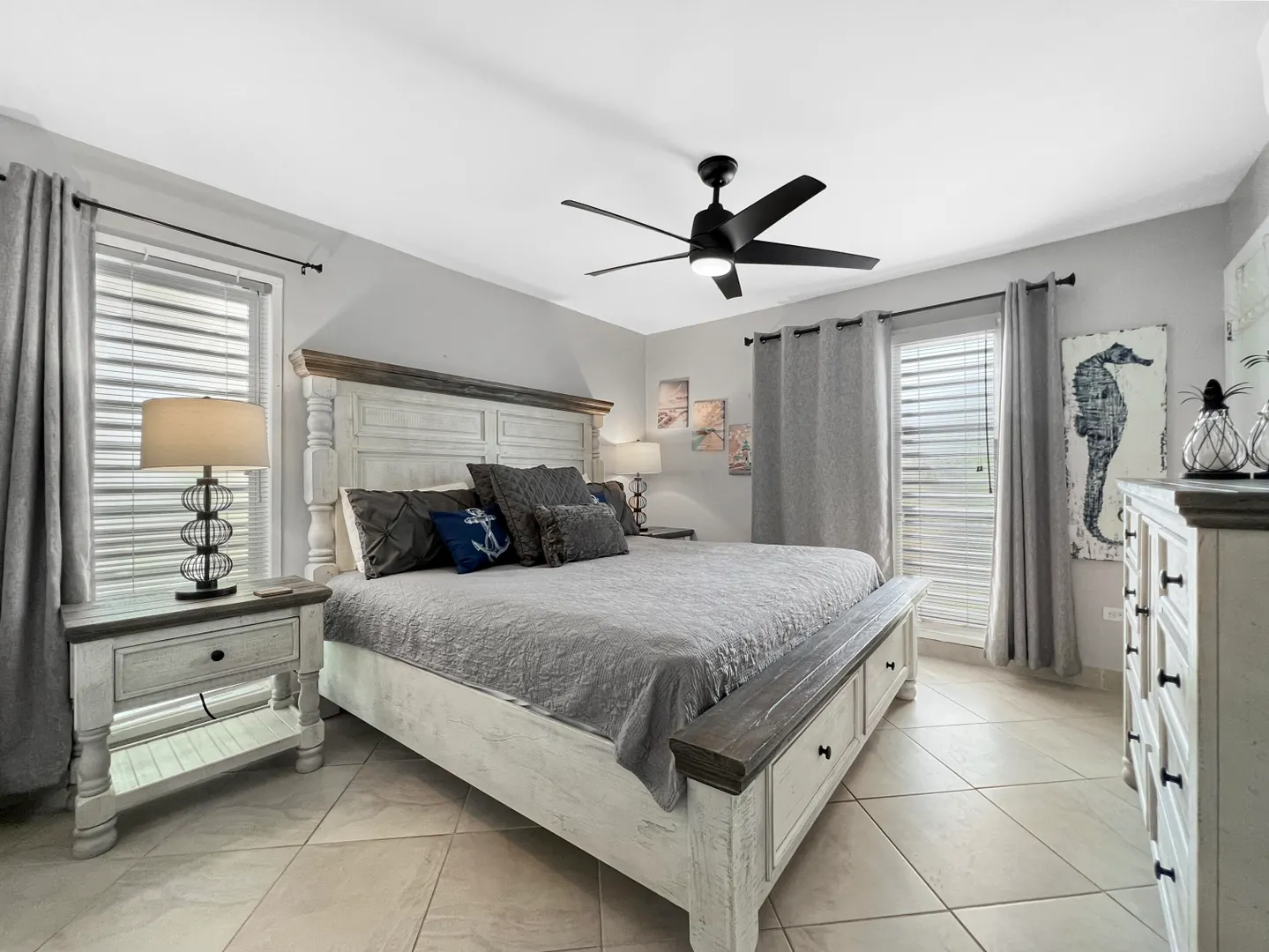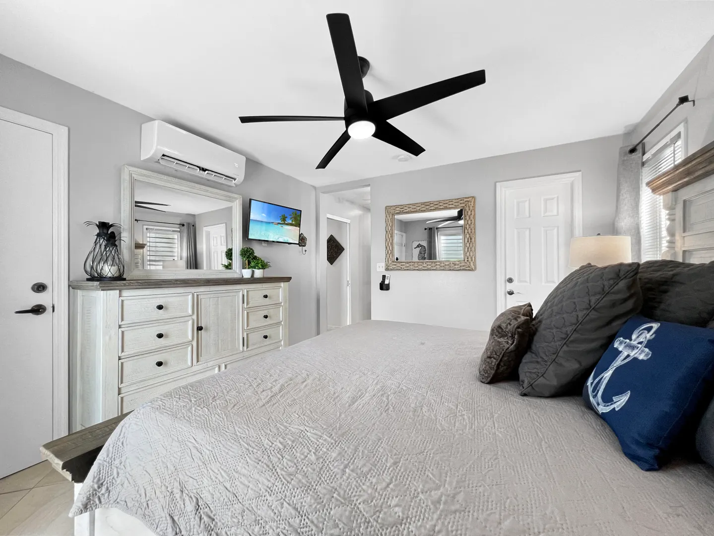 Fantastic breezes and sea views in this beautifully and tastefully remodeled 2nd floor 2 bed/2 bath condo in the beachside gated community of Colony Cove! Because it's an end unit, there are additional windows in the living room and main bedroom, plus a little more square footage than interior units! Remodeled in 2022, it features mahogany kitchen cabinets, pocket doors, Ashley furniture, new split AC units in bedrooms and living room, fresh paint, new light fixtures, ceiling fans, new faucets, some new appliances, new toilets, and new wall decorations (see list of improvements in Documents section). Colony Cove has a delightful pool, access to a sandy beach, and a lovely courtyard garden space to enjoy! This unit has been a successful vacation rental for people looking for an investment.