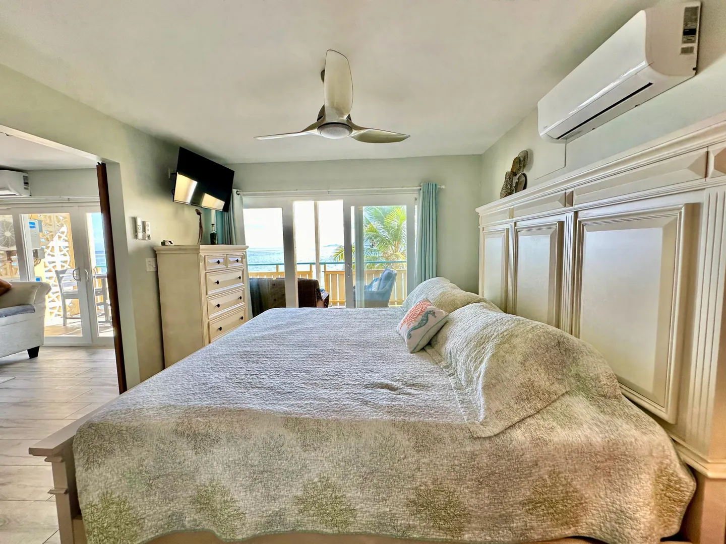 Experience breathtaking, unobstructed views of the ocean, Buck Island, and Christiansted Harbour from this beautifully renovated second-floor condo. Just steps from the beach, you'll have direct access to a swimmable ocean perfect for snorkeling the tire reef right off Colony Cove only known by a few.Nestled in a well-maintained gated community, this two-bedroom, two-bathroom Condo unit is fully furnished and move-in or rent-ready. It has been completely remodeled post-Hurricane Maria, boasting all-new wiring, plumbing, cabinets, countertops, tile floors, appliances, furniture, and energy-efficient A/C units, along with an instant hot water heater and a full-size washer and dryer. The hurricane-grade windows and sliders on the ocean-side provide additional peace of mind.Enjoy the convenience of being only five minutes from Christiansted town and adjacent to the Coral Sea Restaurant. Association fees cover common grounds maintenance, monthly pest control, a backup generator for common areas, insurance, internet, and cable. Don't miss this opportunity to own your slice of paradise!