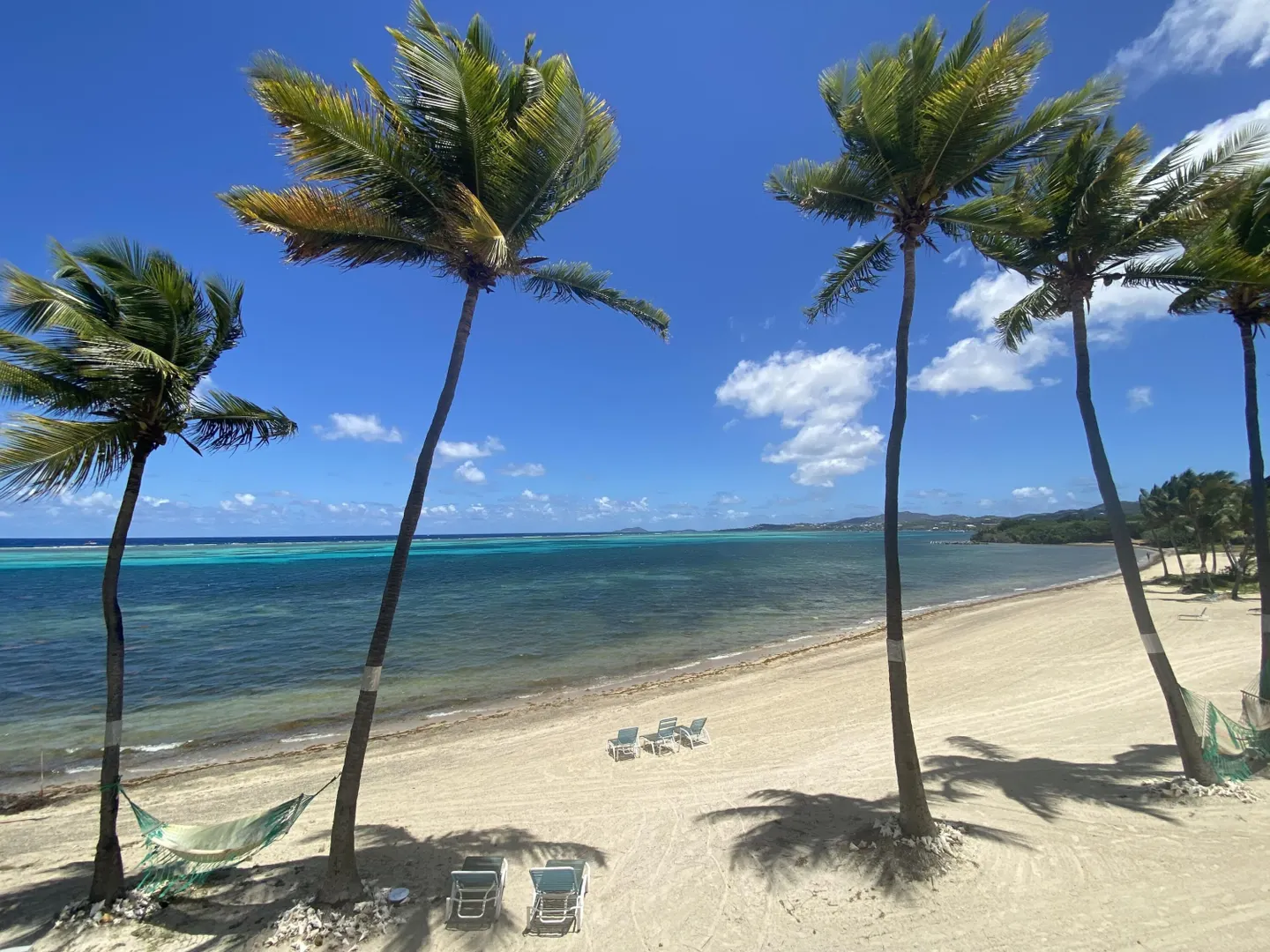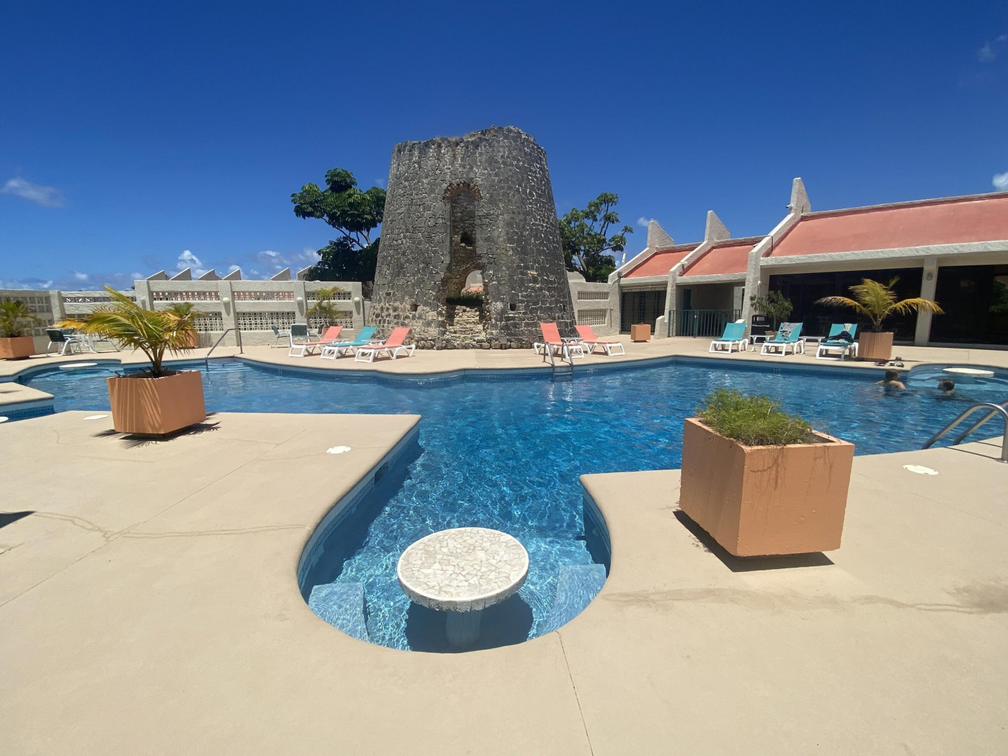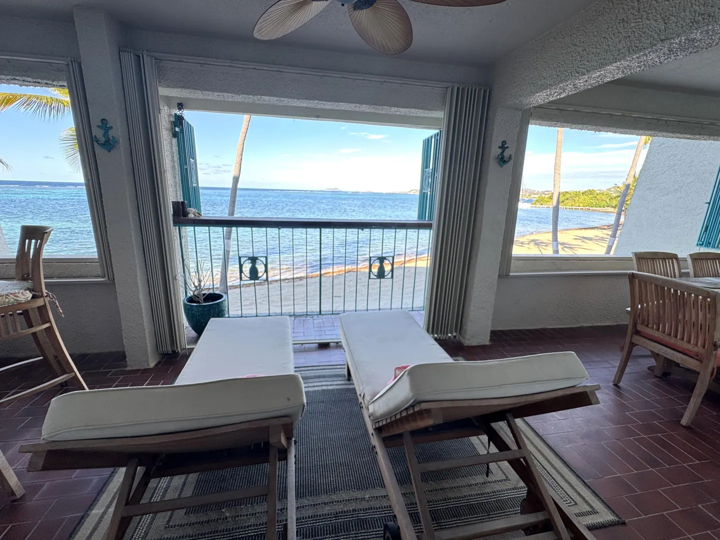 This beachfront condo is turnkey. It has direct ocean access, gorgeous views, and a fantastic rental history. The condo features central air (installed Nov 2023), updated flooring, solid wood doors and remodeled bathrooms. The primary bedroom suite opens onto an expansive gallery with teak furniture, overlooking the beach. The 2-bed, 2-bath condo offers amazing Buck Island and harbor views, a beautiful sandy beach, tennis courts, ruins, a large resort pool and a great recreation room if you want an extra area to lounge around.