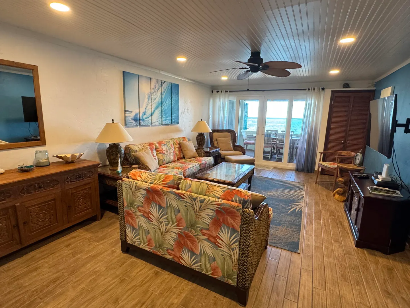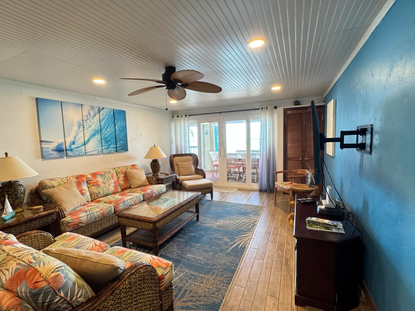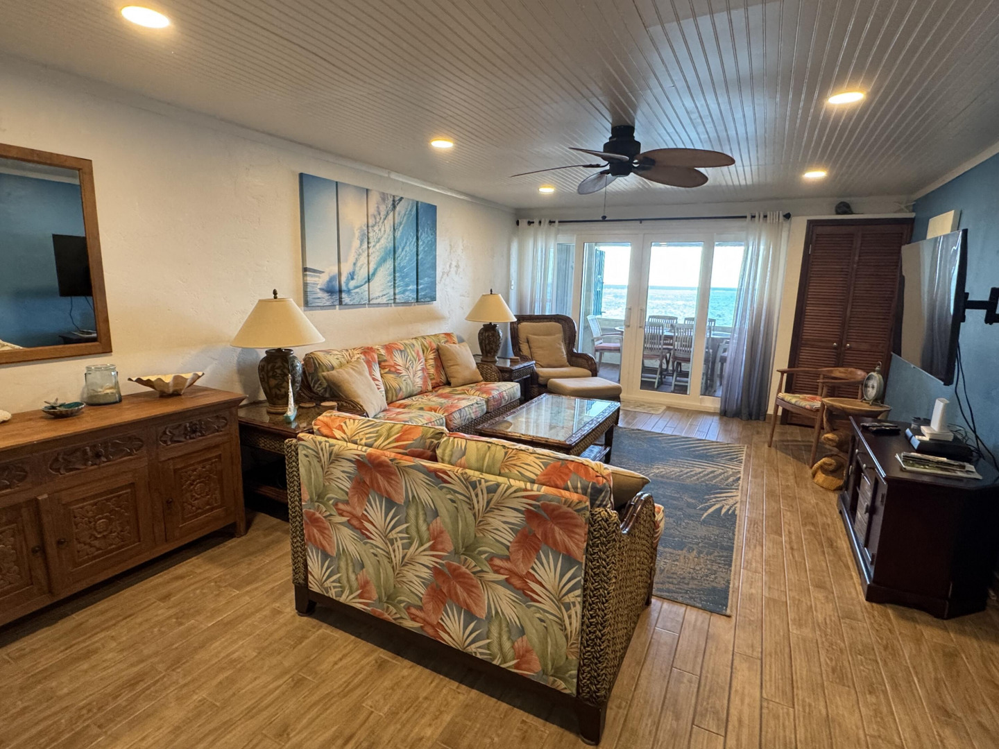 This beachfront condo is turnkey. It has direct ocean access, gorgeous views, and a fantastic rental history. The condo features central air (installed Nov 2023), updated flooring, solid wood doors and remodeled bathrooms. The primary bedroom suite opens onto an expansive gallery with teak furniture, overlooking the beach. The 2-bed, 2-bath condo offers amazing Buck Island and harbor views, a beautiful sandy beach, tennis courts, ruins, a large resort pool and a great recreation room if you want an extra area to lounge around.