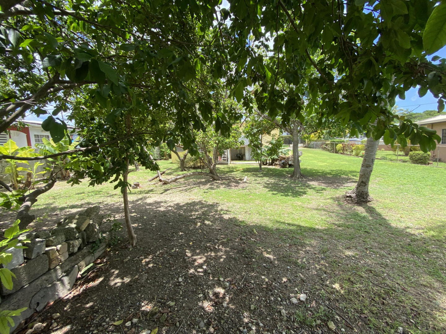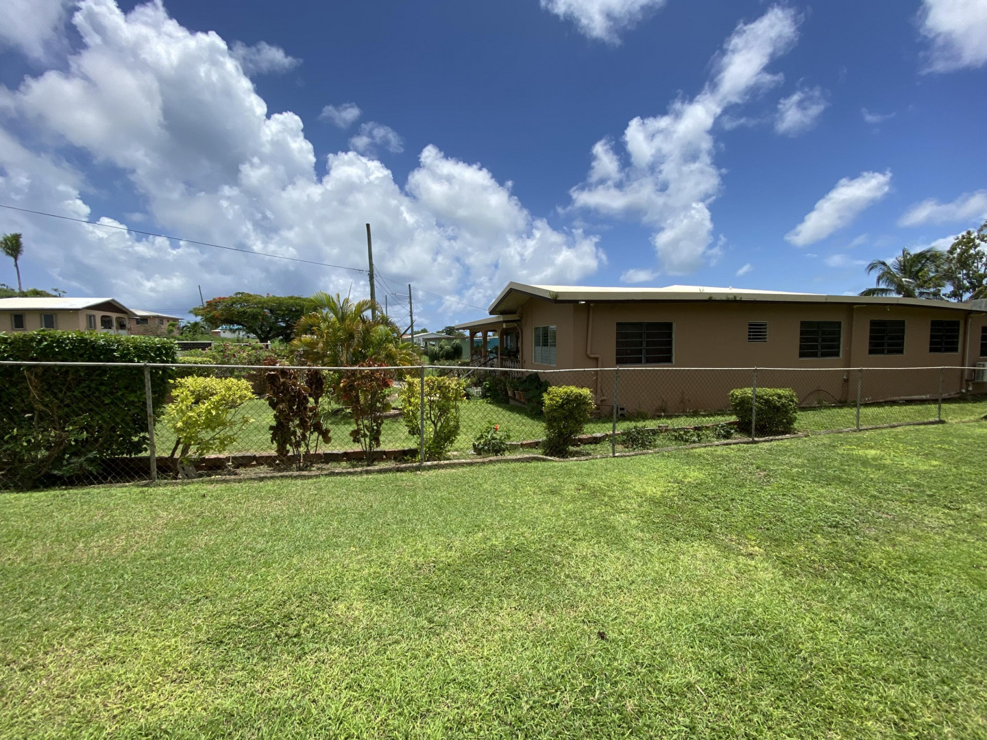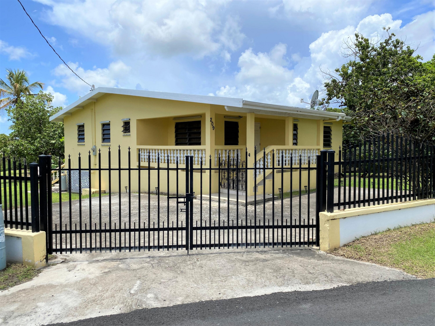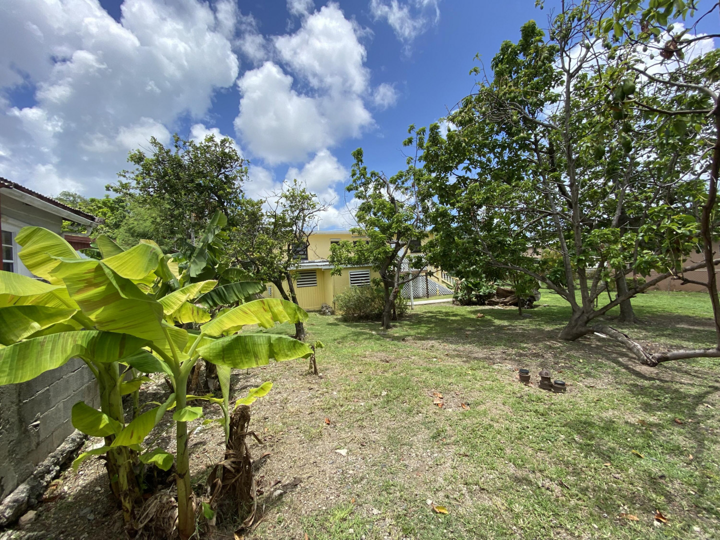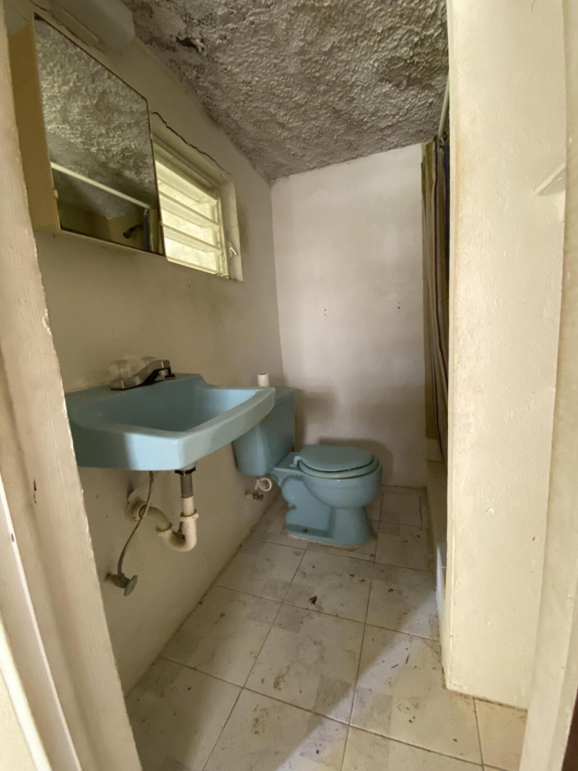 Sweet, solid 4- bedroom family home on a fenced lot with a variety of fruit-bearing trees. Completely fenced and gated on a newly paved road, this home is centrally located yet has a lovely country feel. Enter from the large welcoming porch that faces the eastern breezes, into the living room. There is a large main bedroom with bath, and three other bedrooms, two that adjoin one another. Hurricane panels for storms, galvanized roof was replaced in 2017 and has been recoated twice since. There is also a small attached space downstairs with a kitchen and bath that needs work. Home is dated, but wonderfully comfortable as a great starter home, looking for a new owner. The home will not qualify for FHA, so cash or conventional mortgage only.Easy to show.