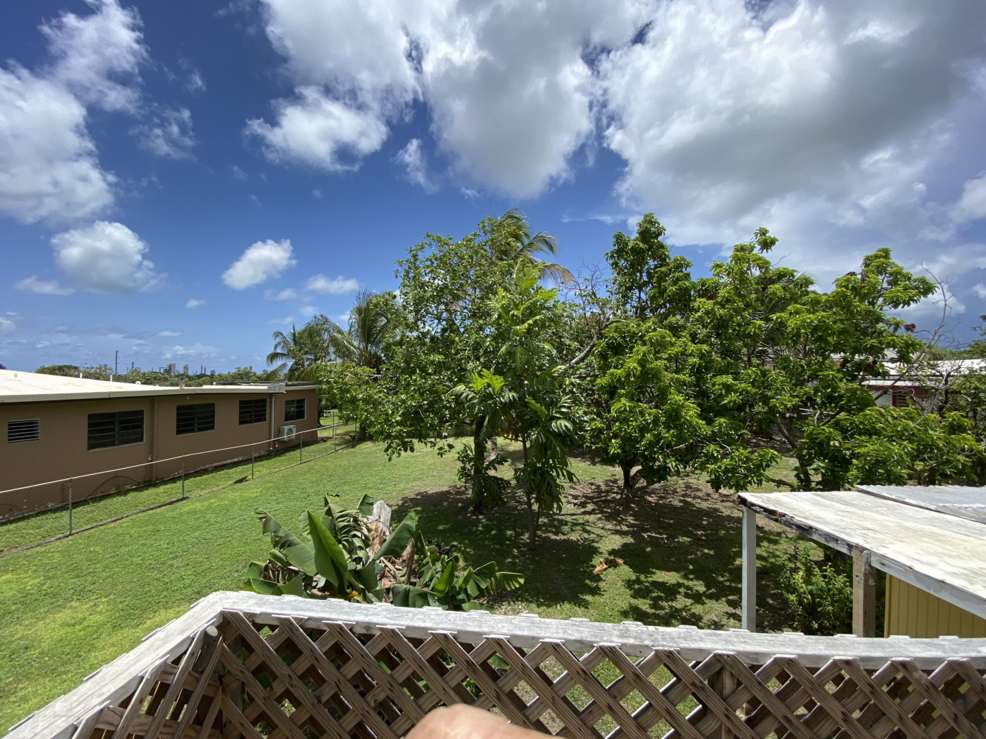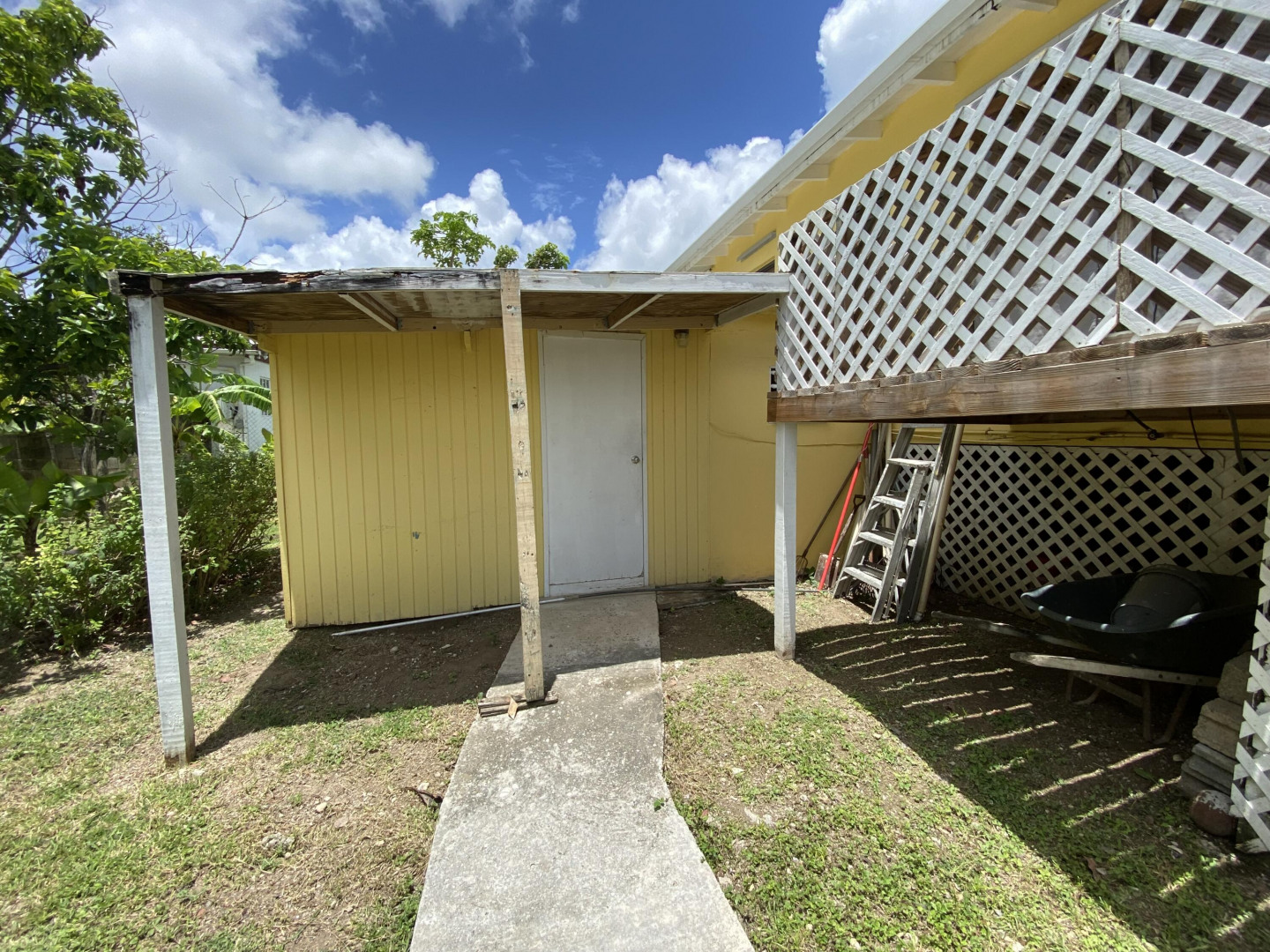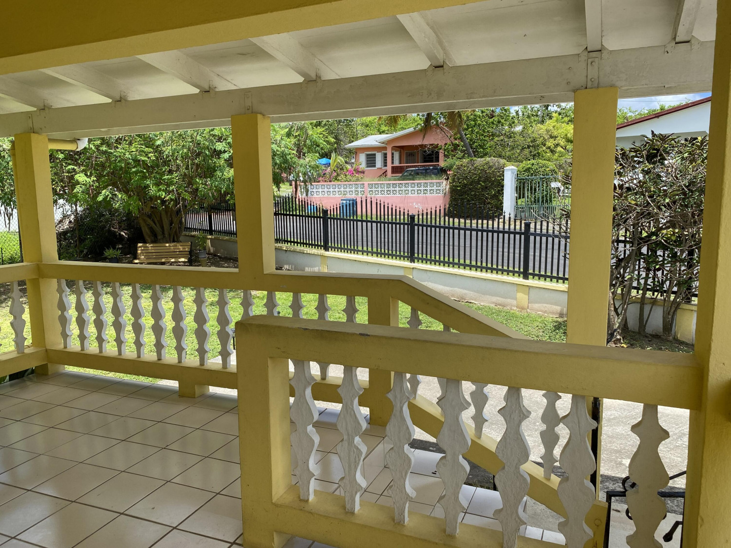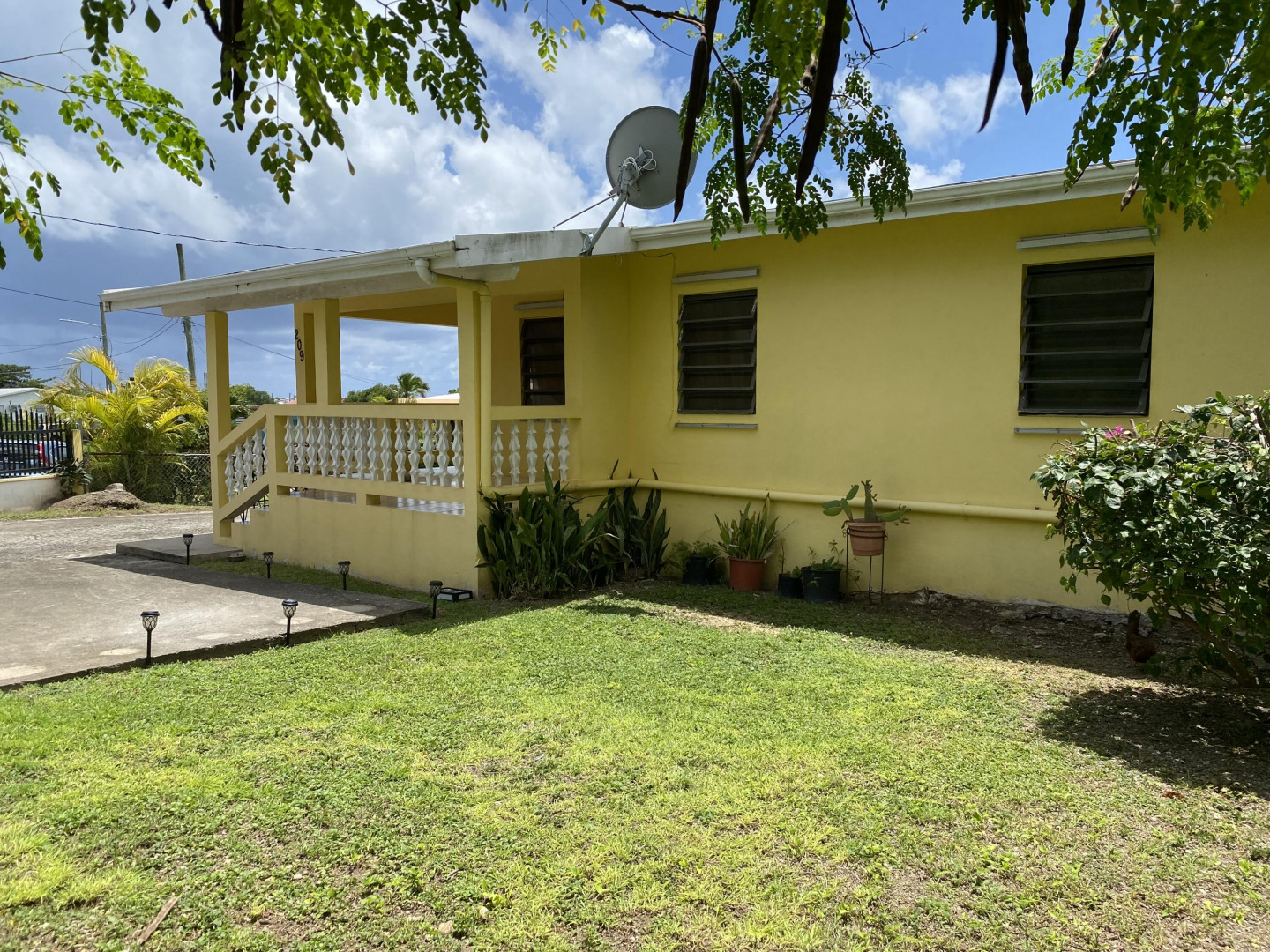 Sweet, solid 4- bedroom family home on a fenced lot with a variety of fruit-bearing trees. Completely fenced and gated on a newly paved road, this home is centrally located yet has a lovely country feel. Enter from the large welcoming porch that faces the eastern breezes, into the living room. There is a large main bedroom with bath, and three other bedrooms, two that adjoin one another. Hurricane panels for storms, galvanized roof was replaced in 2017 and has been recoated twice since. There is also a small attached space downstairs with a kitchen and bath that needs work. Home is dated, but wonderfully comfortable as a great starter home, looking for a new owner. The home will not qualify for FHA, so cash or conventional mortgage only.Easy to show.