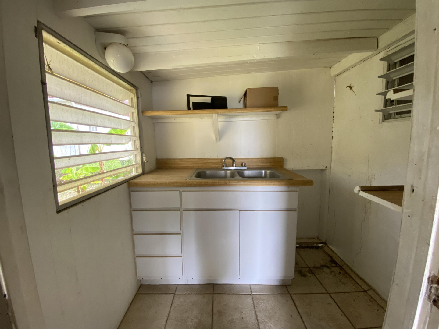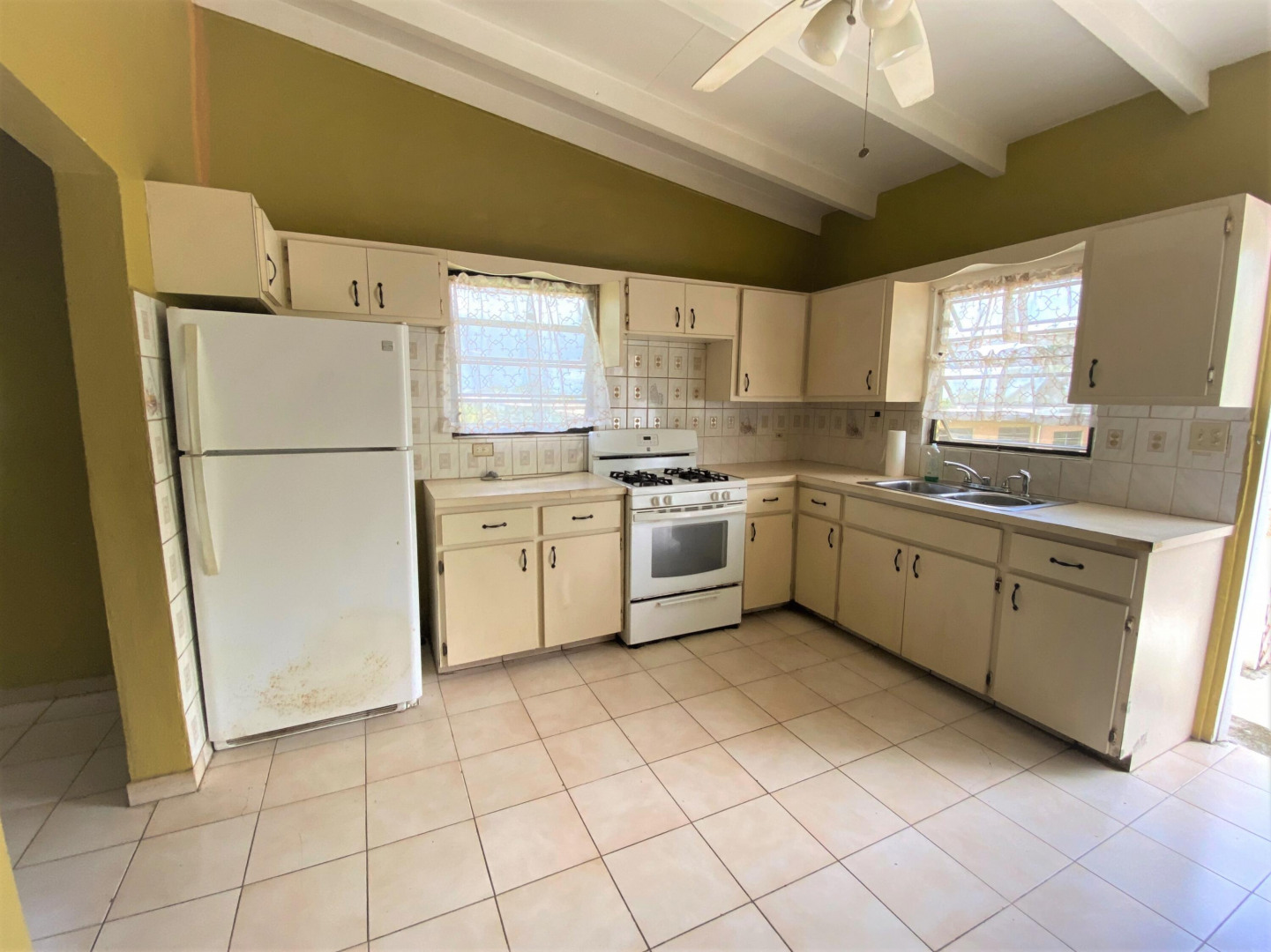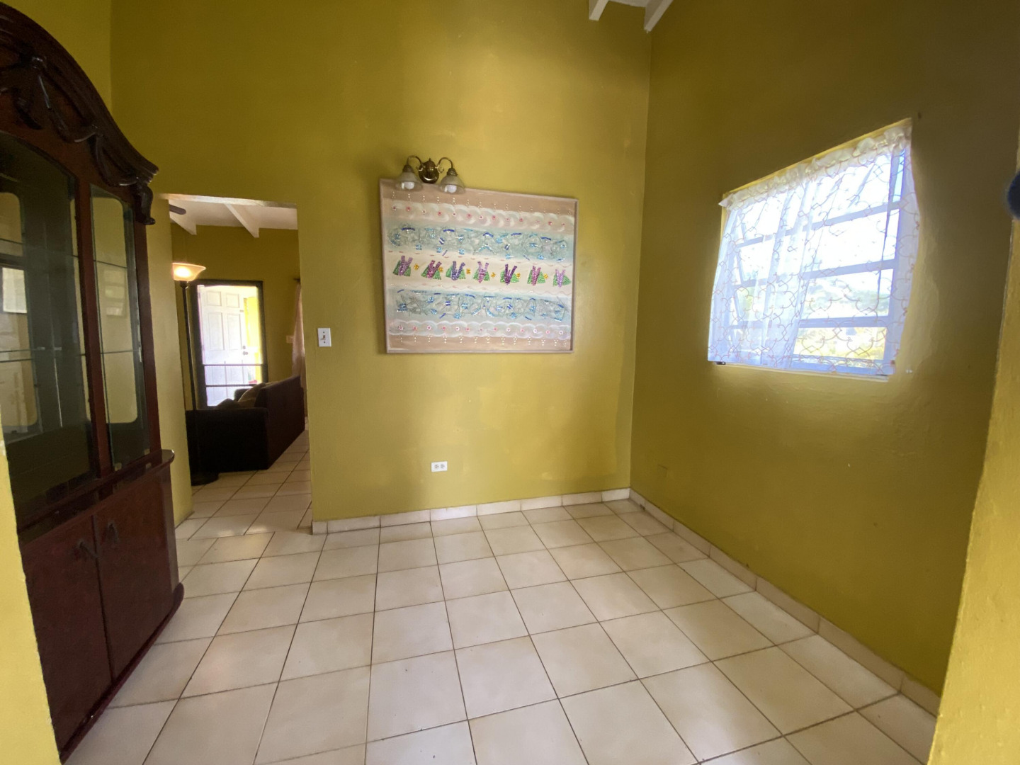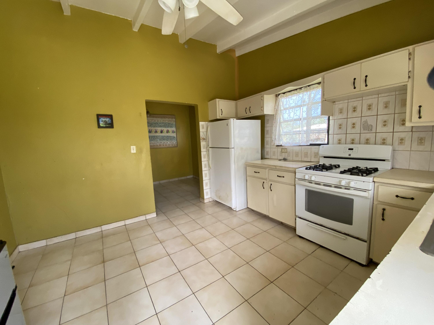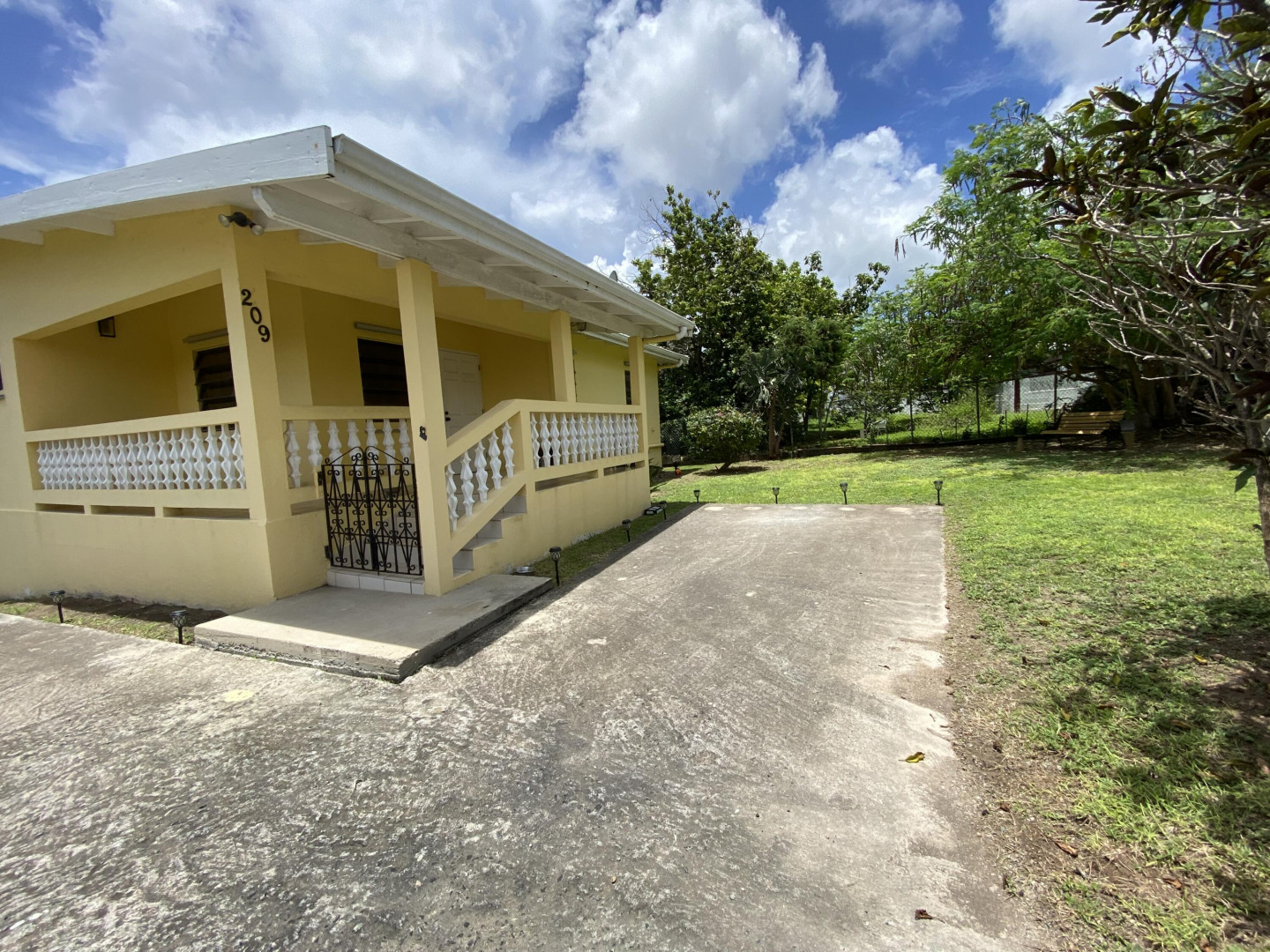 Sweet, solid 4- bedroom family home on a fenced lot with a variety of fruit-bearing trees. Completely fenced and gated on a newly paved road, this home is centrally located yet has a lovely country feel. Enter from the large welcoming porch that faces the eastern breezes, into the living room. There is a large main bedroom with bath, and three other bedrooms, two that adjoin one another. Hurricane panels for storms, galvanized roof was replaced in 2017 and has been recoated twice since. There is also a small attached space downstairs with a kitchen and bath that needs work. Home is dated, but wonderfully comfortable as a great starter home, looking for a new owner. The home will not qualify for FHA, so cash or conventional mortgage only.Easy to show.