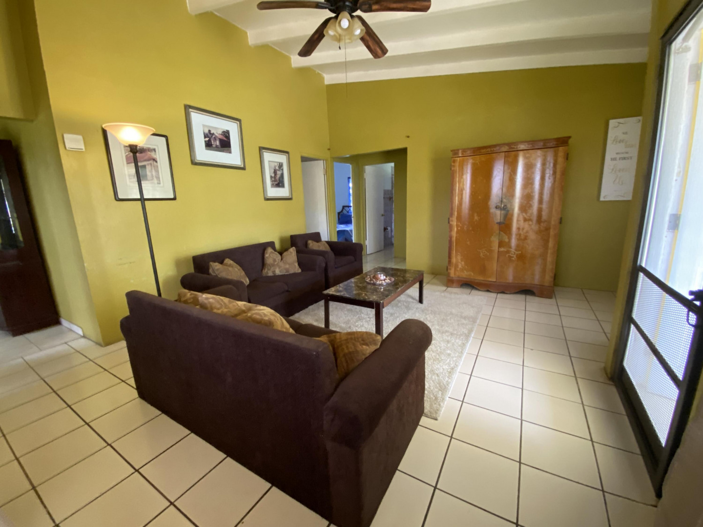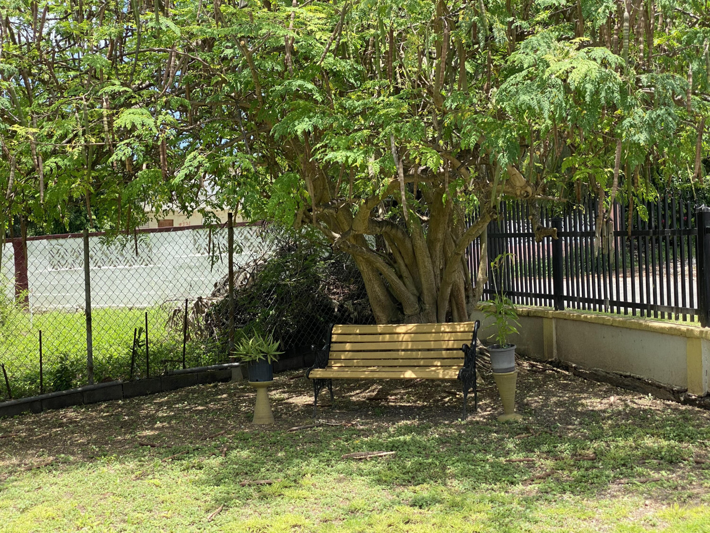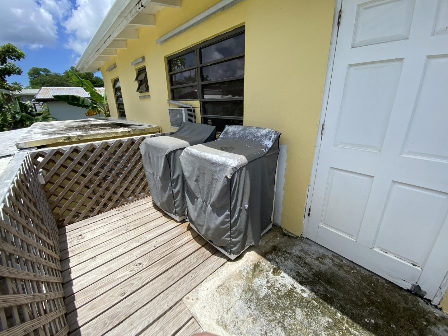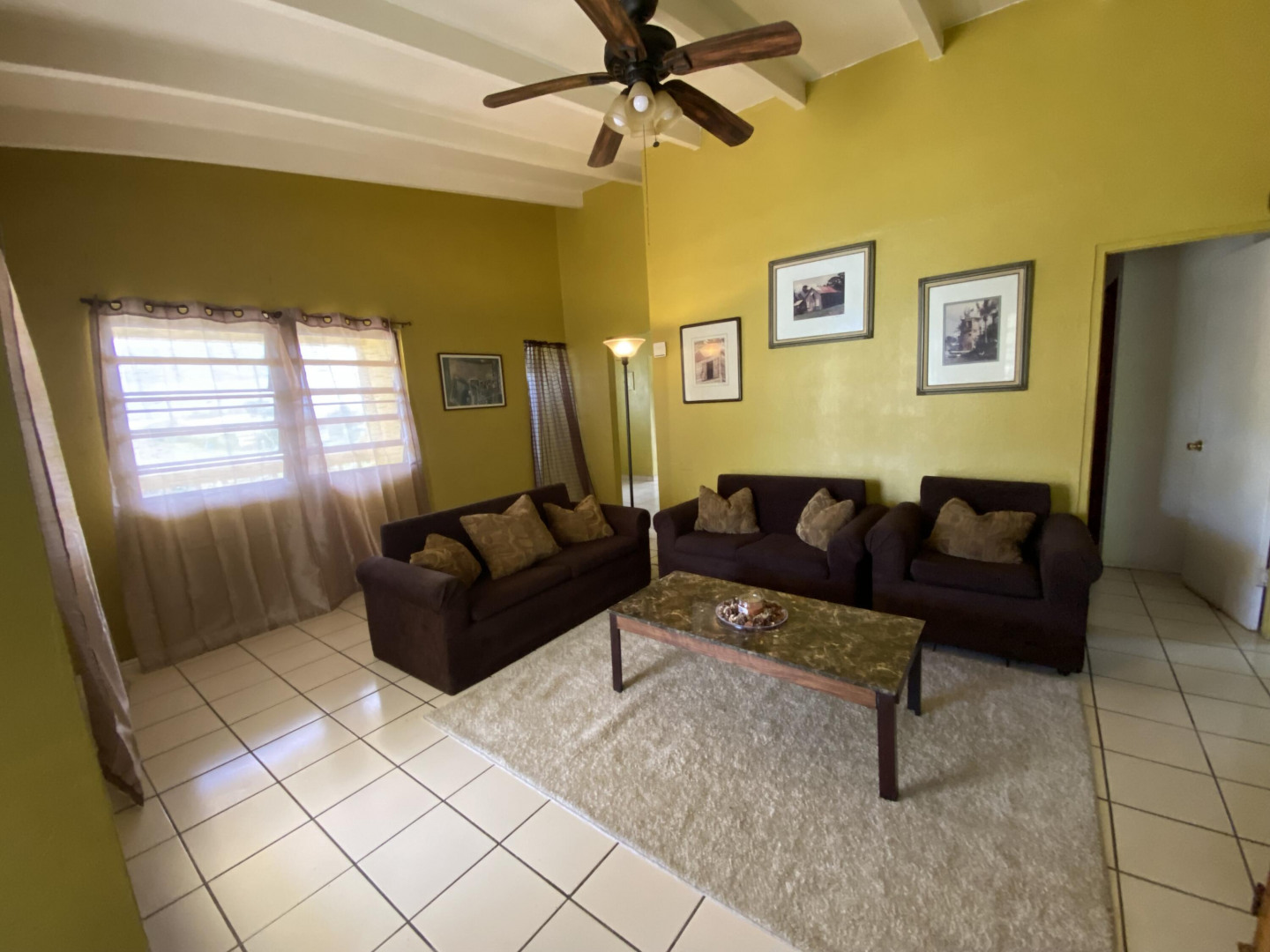 Sweet, solid 4- bedroom family home on a fenced lot with a variety of fruit-bearing trees. Completely fenced and gated on a newly paved road, this home is centrally located yet has a lovely country feel. Enter from the large welcoming porch that faces the eastern breezes, into the living room. There is a large main bedroom with bath, and three other bedrooms, two that adjoin one another. Hurricane panels for storms, galvanized roof was replaced in 2017 and has been recoated twice since. There is also a small attached space downstairs with a kitchen and bath that needs work. Home is dated, but wonderfully comfortable as a great starter home, looking for a new owner. The home will not qualify for FHA, so cash or conventional mortgage only.Easy to show.
