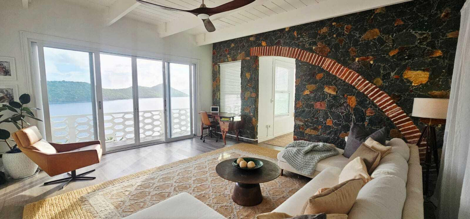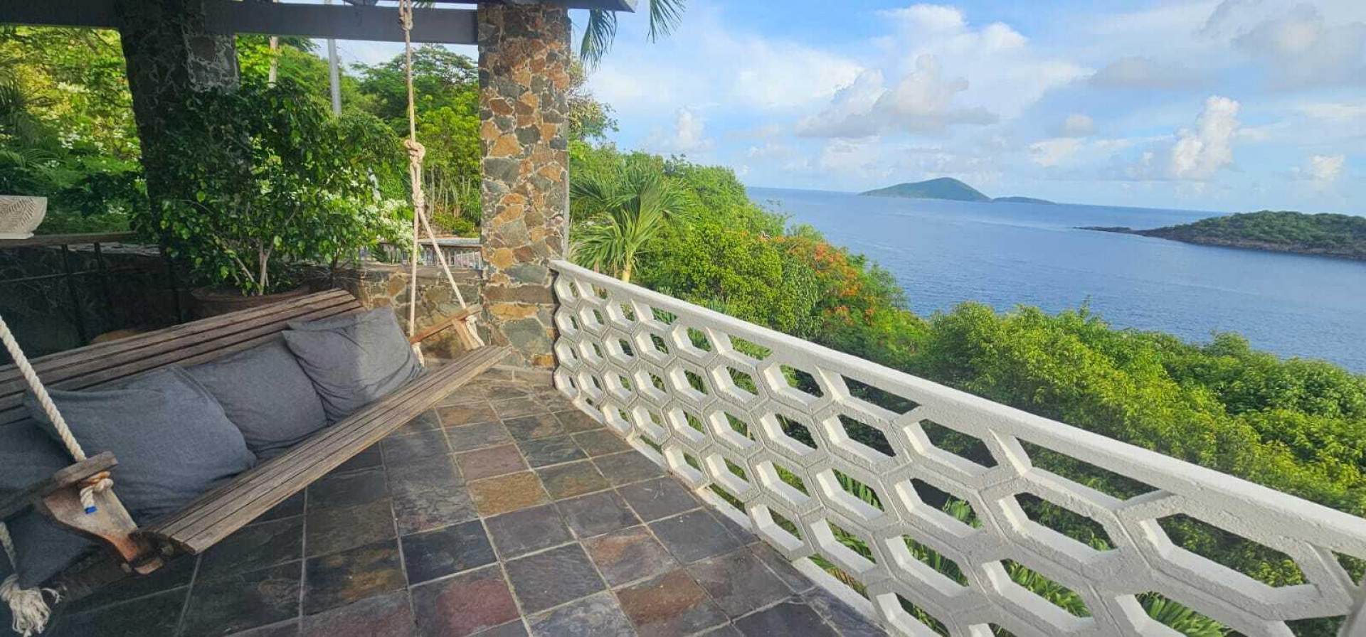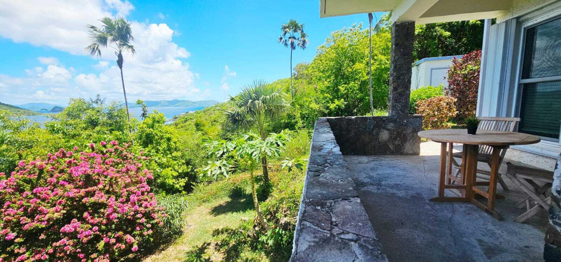 Set on three lush waterfront acres with direct sea access and refreshing trade winds, this classic West Indian home combines timeless stonework with modern comfort. Flexible in design, it can be a two-bedroom, two-bath retreat or a one-bedroom, one-bath plus large studio. Expansive terraces, a private pool, and manicured grounds create the perfect island escape. With two R1 lots, there's also potential for future expansion. Features include solar power, a 20 kW generator, storm-rated windows and shutters, reinforced roof, 42K gallon cistern, and ADT security. Private, breezy, and self-sustaining--ideal for tranquil Caribbean living with room to grow.