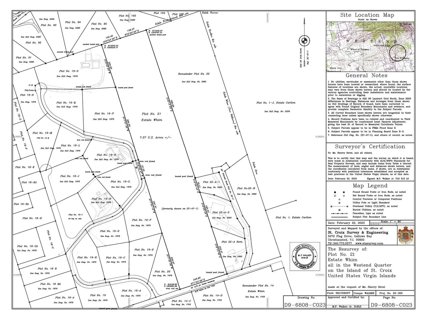Large 7+ acre hilltop parcel zoned R2 on the west end with sea views to the west and south! Located in a residential neighborhood with paved roads, close to shopping and a quick drive to downtown Frederiksted's many restaurants, shops and gorgeous beaches. Recently surveyed with boundposts flagged - see new map under documents/photos