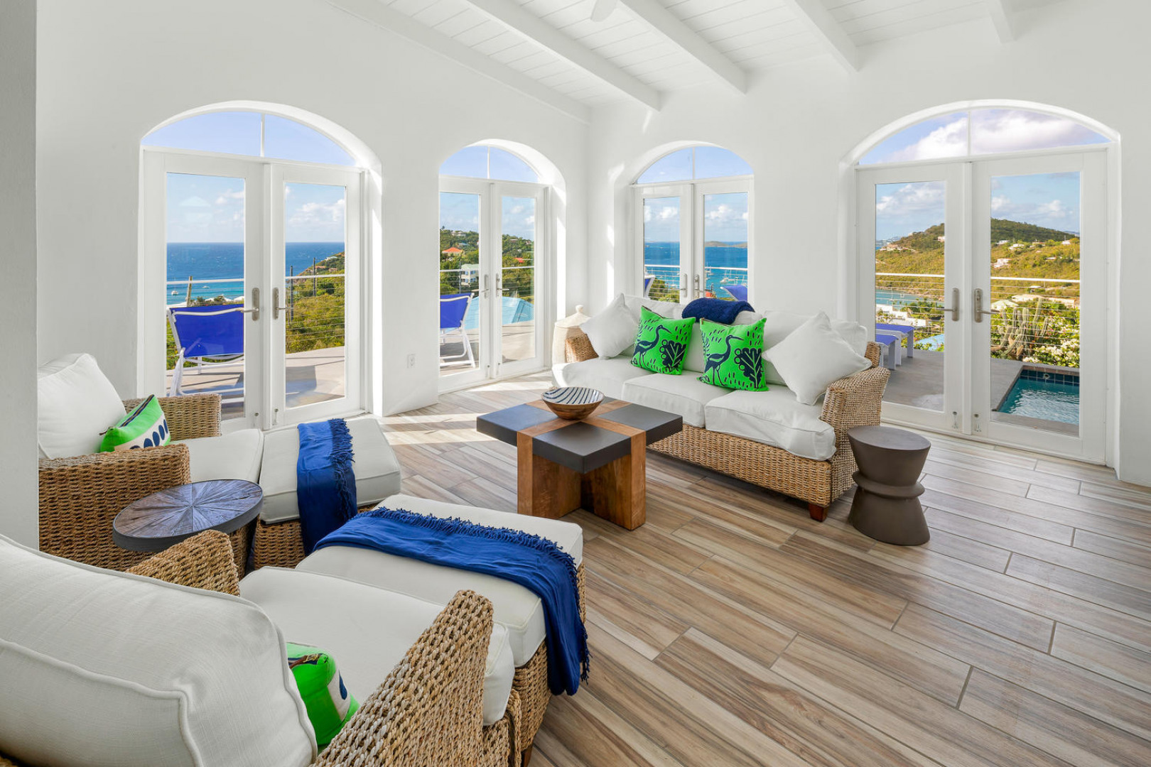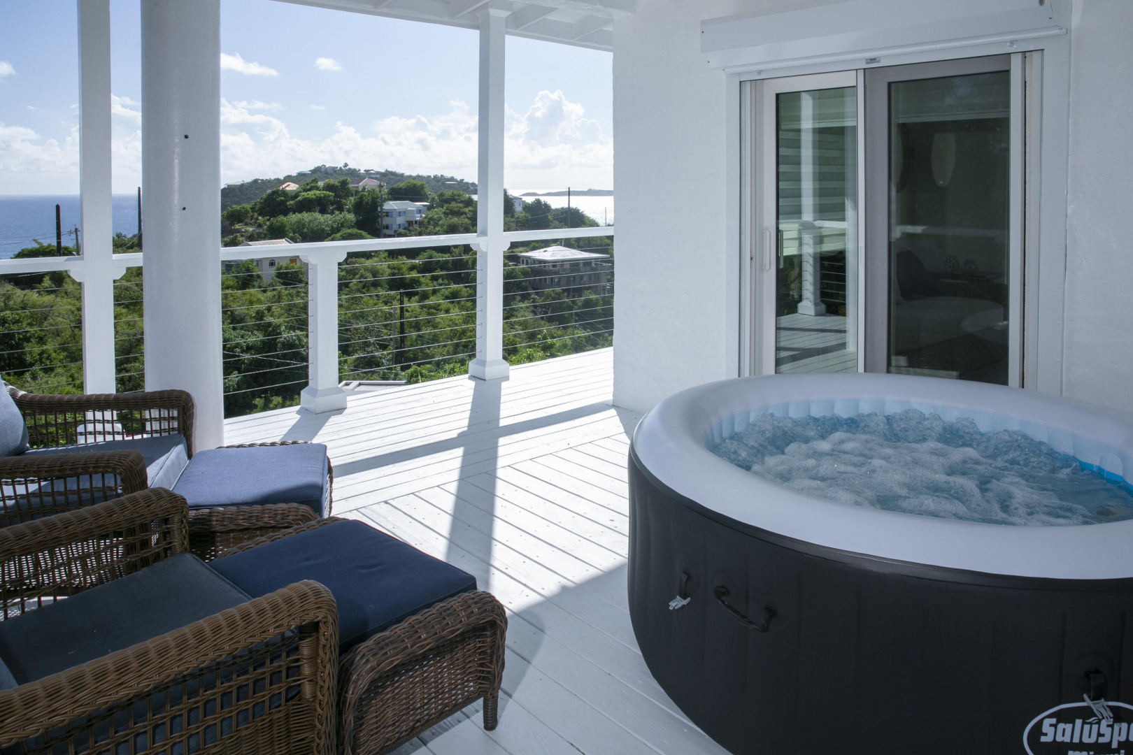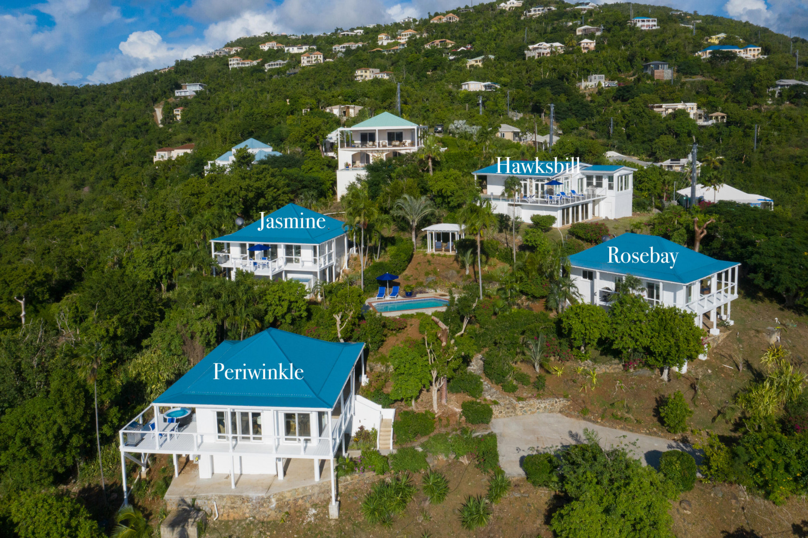 Las Flores is the example of St. John luxury living with incredible sunsets, gorgeous landscaping, and stunning ocean views! This 1 acre parcel in desirable Chocolate Hole boasts four separate Villas each exquisitely designed with Serena and Lily furnishings and high end finishes. Featuring a common pool, gorgeous lush landscaping, private driveways and panoramic views from every angle! Take in the sunset nightly on one of the four private decks, the pergola overlooking the pool or even in the pool itself and wake up to water views from every angle.
