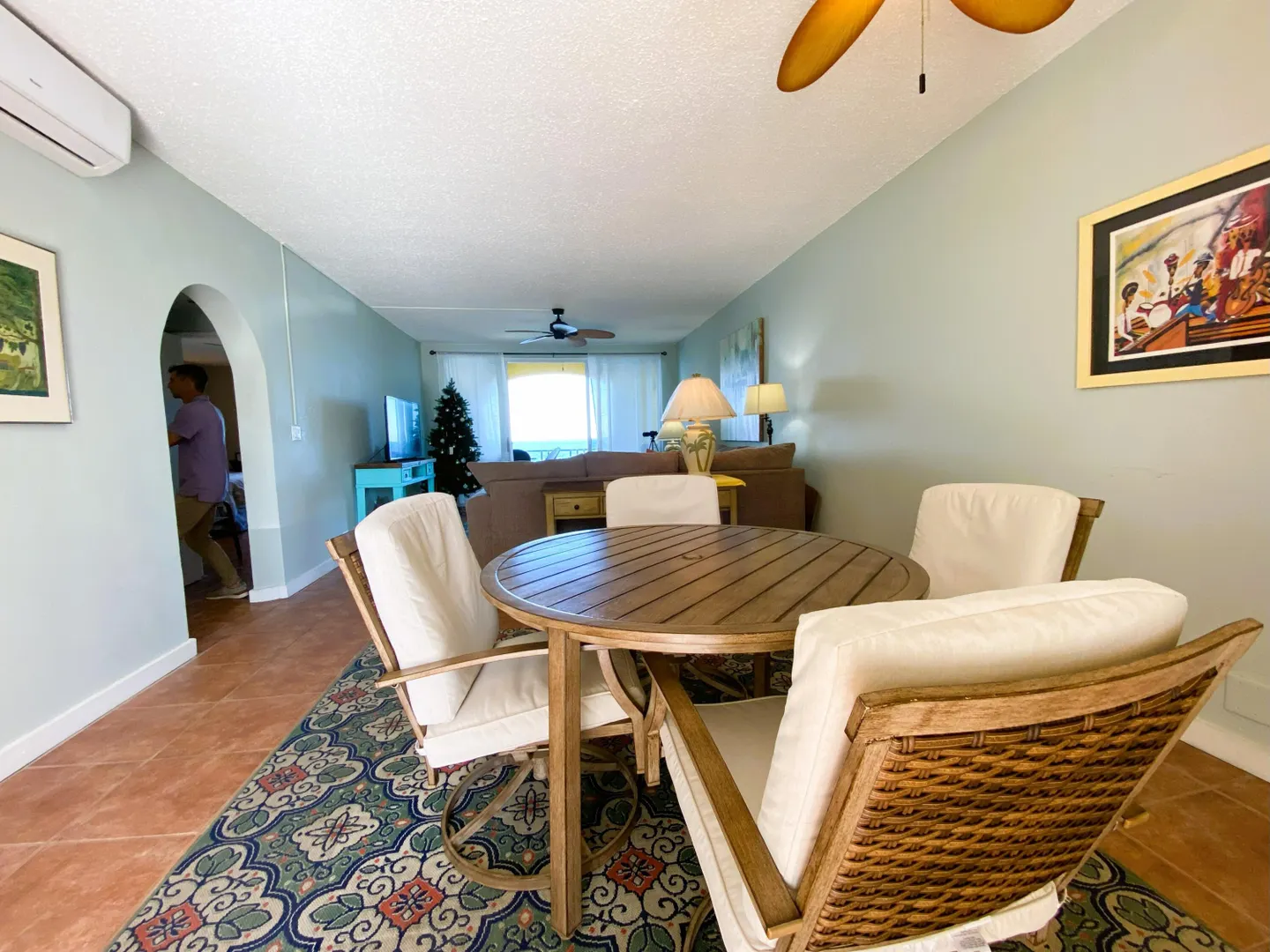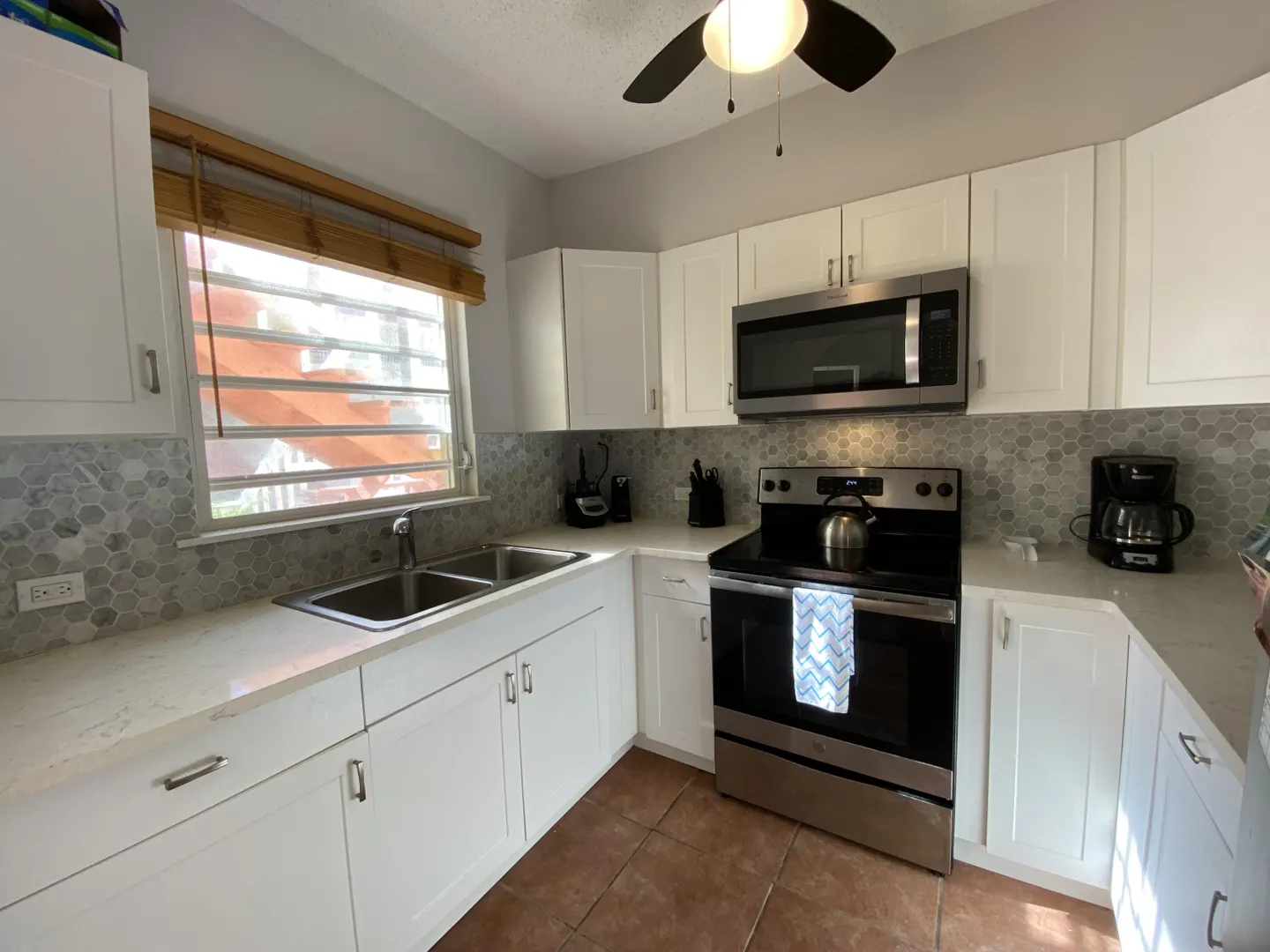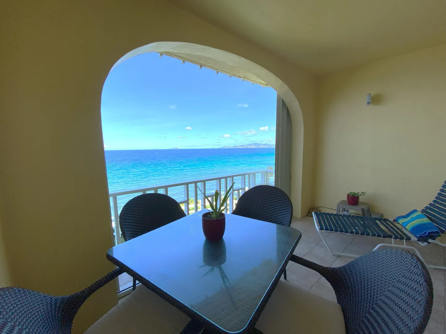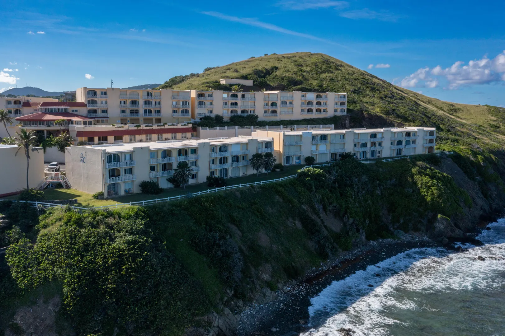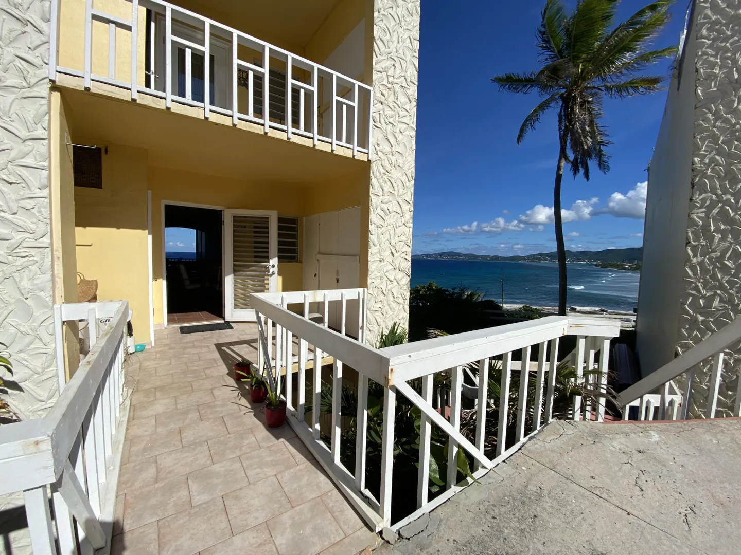 Easy island living in this beautiful walk-in level end unit with outstanding views of the Caribbean Sea and charming coastline view too. This bright 1,200 square foot, one-bedroom unit has been updated including the kitchen with quartz counter tops, tiled backsplash, and stainless-steel appliances. The bedroom with the sea view is very large, easily holding 2 king size beds. A walk-in glass shower and bath match the beauty of this unit. Storage? Not a problem with abundant closets. St. C has a gated entry with guard and a gorgeous pool overlooking the sea. Fees include gated security, water, & catastrophic windstorm insurance and more. Wonderfully situated 4 miles from Christiansted, grocery stores and the hospital are all close by. This unit is the perfect home in the sun on St. Croix