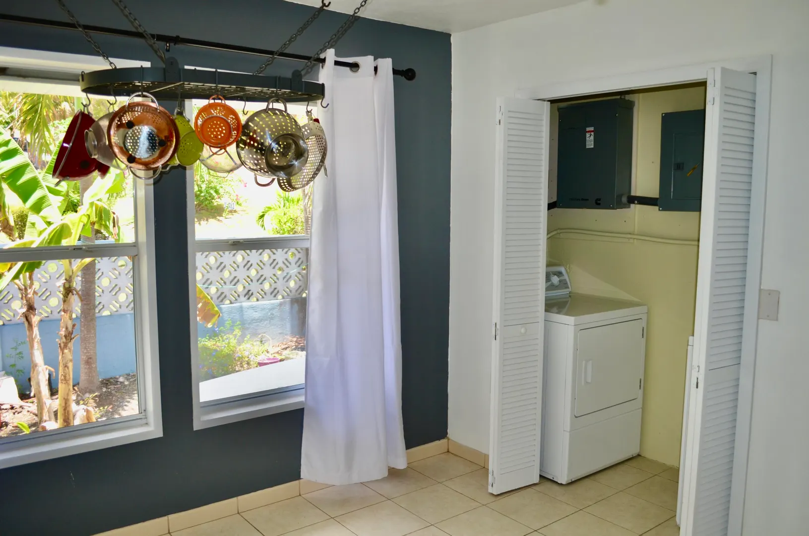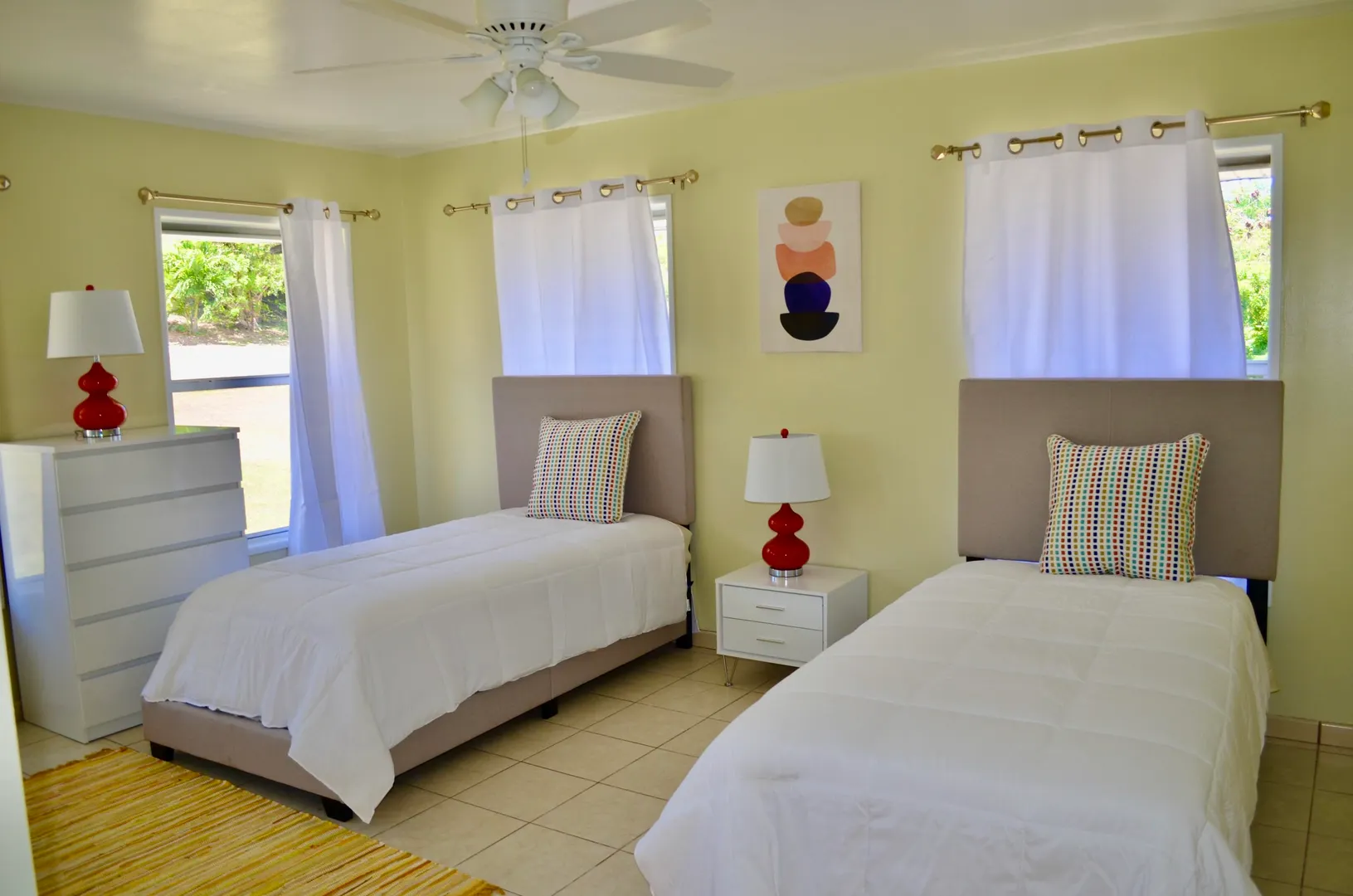 Spacious and cheerful 3/2 home located in one of the island's preferred gated communities. With large windows all around, the bedrooms are bright and all have mini-split A/C units to stay cool on balmy, Caribbean nights. The guest bath has been completely upgraded with dual vanities - no fighting for sink space! - and a gorgeous clawfoot tub w/shower. Large kitchen has stainless steel appliances, laundry & loads of storage. Formal dining room opens to substantial living room. Additional amenities include new propane generator & solar net metering - bills average $100/mo!!. Set on a large, flat lot with fruit trees and great outdoor space.