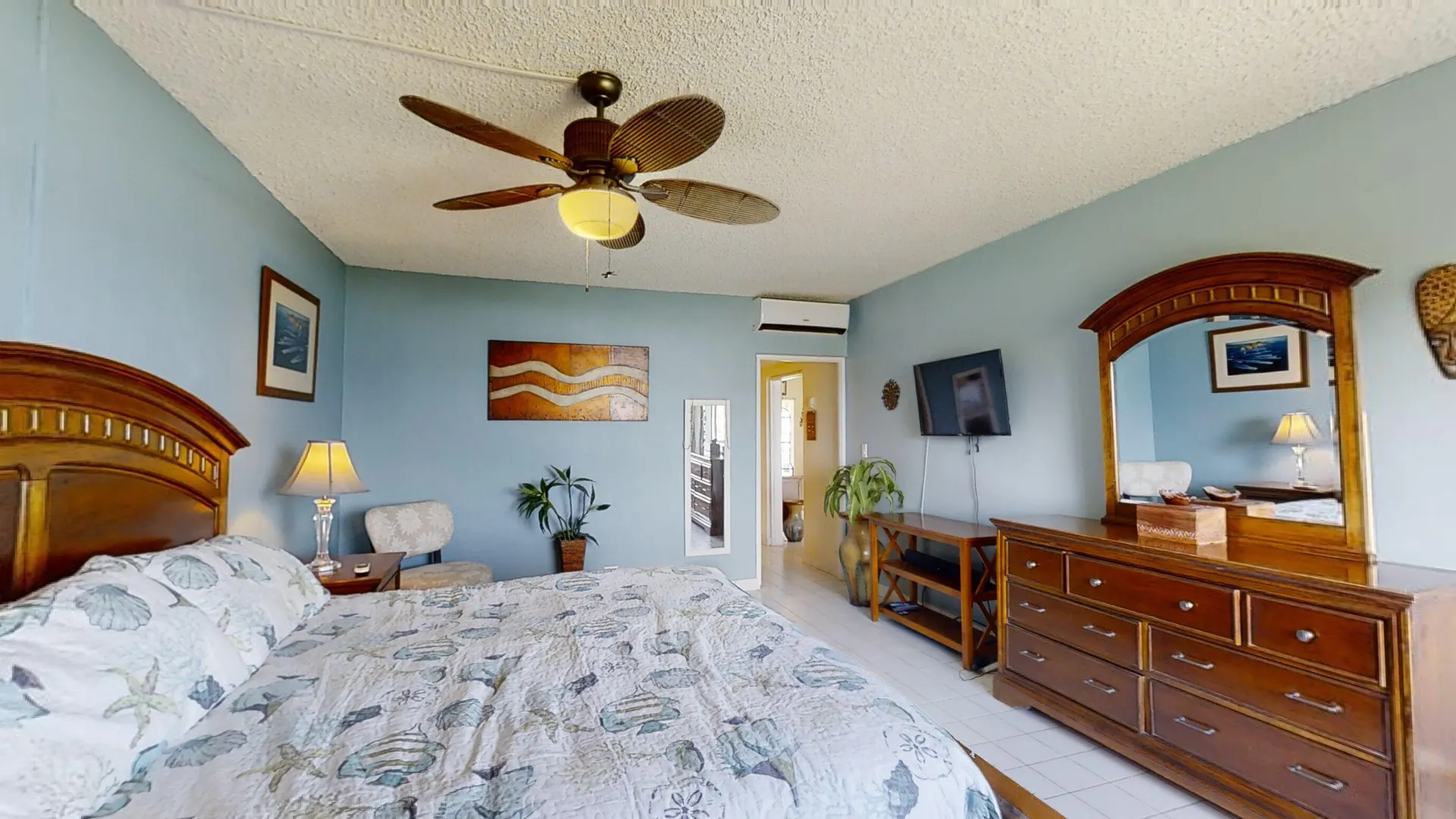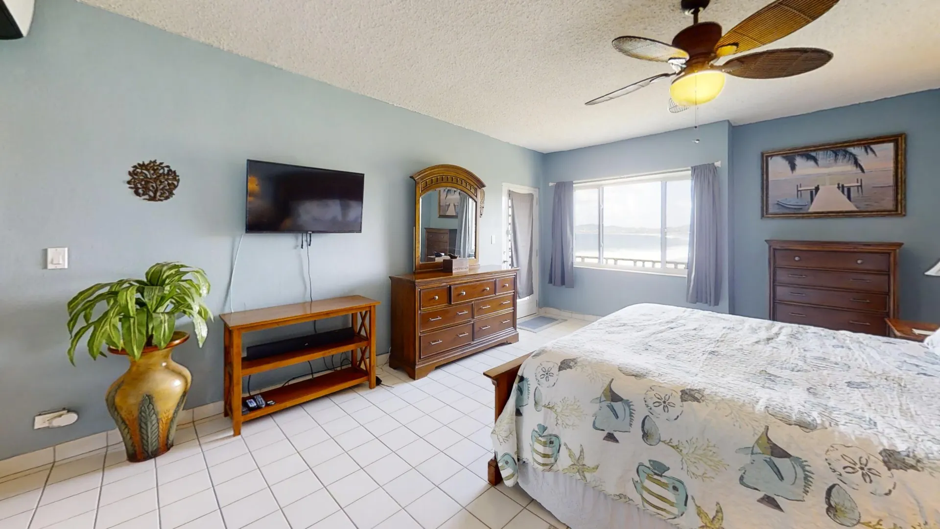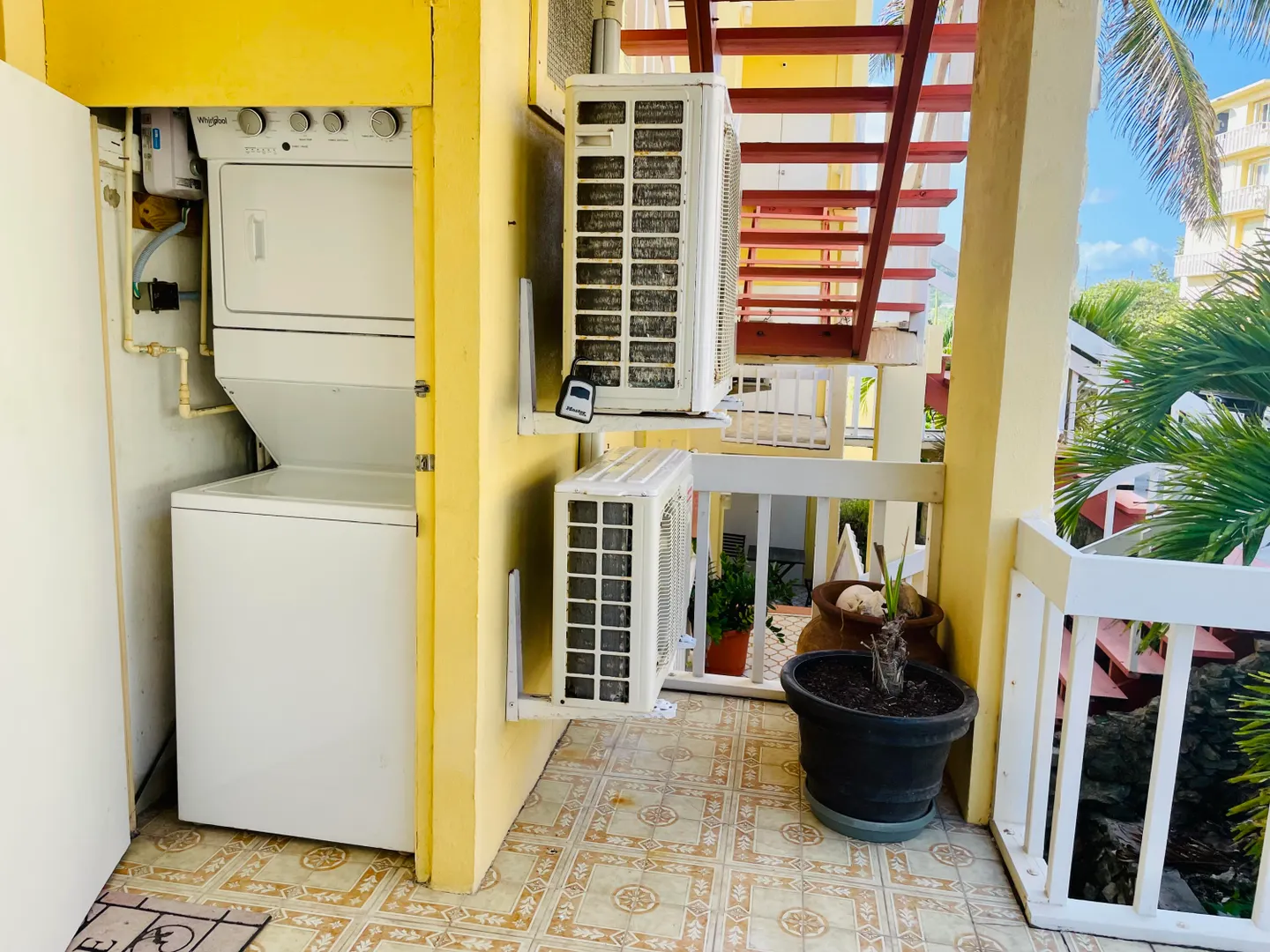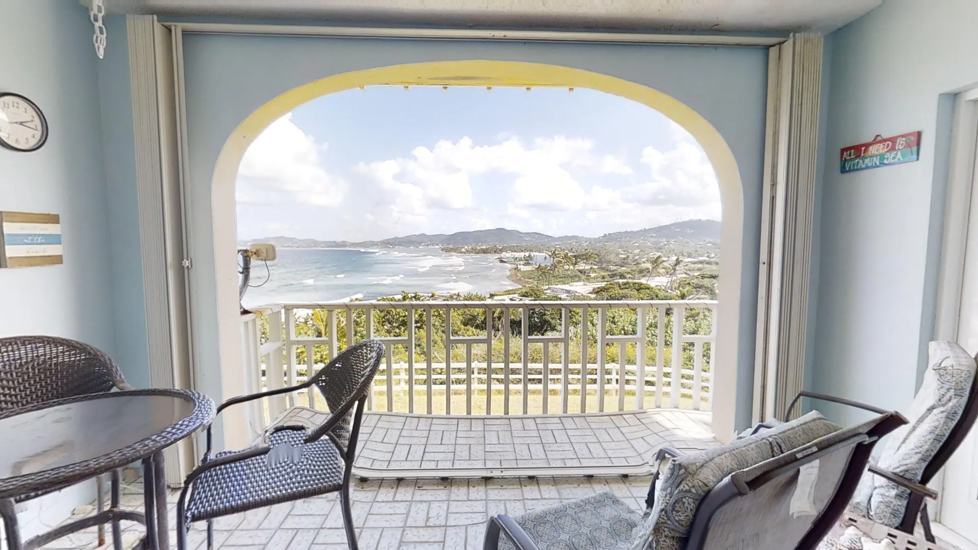 What a beautiful walk-in unit with unobstructed views of the ocean, Buck Island and Christiansted town.This unit comes fully furnished with washer and dryer and even most decorations and beach chairs will stay. So just bring your bag and start enjoying your view and the ocean breeze. Alternatively, use the split A/C units in both living room and bedroom. Want to share your island life with guests? No problem either. There is a Queen size pull-out sleeper sofa in the living room.St. C offers a large pool, a big indoor meeting area, on ground office and maintenance staff, multiple coin-operated washers/dryers, on site post boxes as well as 24/7 security. Association fees include insurance, monthly pest control, ext. maintenance and water.It is conveniently located only about 10minutes from Christiansted, 5 minutes from the closest sandy beach, restaurant and hotel.