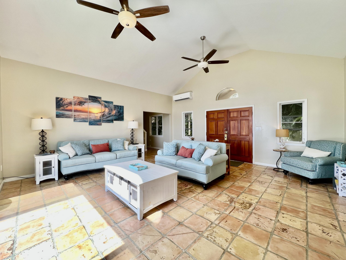 Peace and tranquility await you at this beautiful 3 bedroom, 2 bathroom home. Solidly built by a well known builder, take in the views and enjoy the Caribbean trade winds. Enter into the ''Great Room'' and enjoy entertaining in the open concept living room, dining room and kitchen, with deck space that goes the length of the home. This home features custom kitchen cabinetry and bathroom vanities; Mexican Saltillo tile throughout adds to the home's charm and character. Large bedrooms each offer their own balcony. The panoramic views of the British Virgin Islands from every room top it all off!