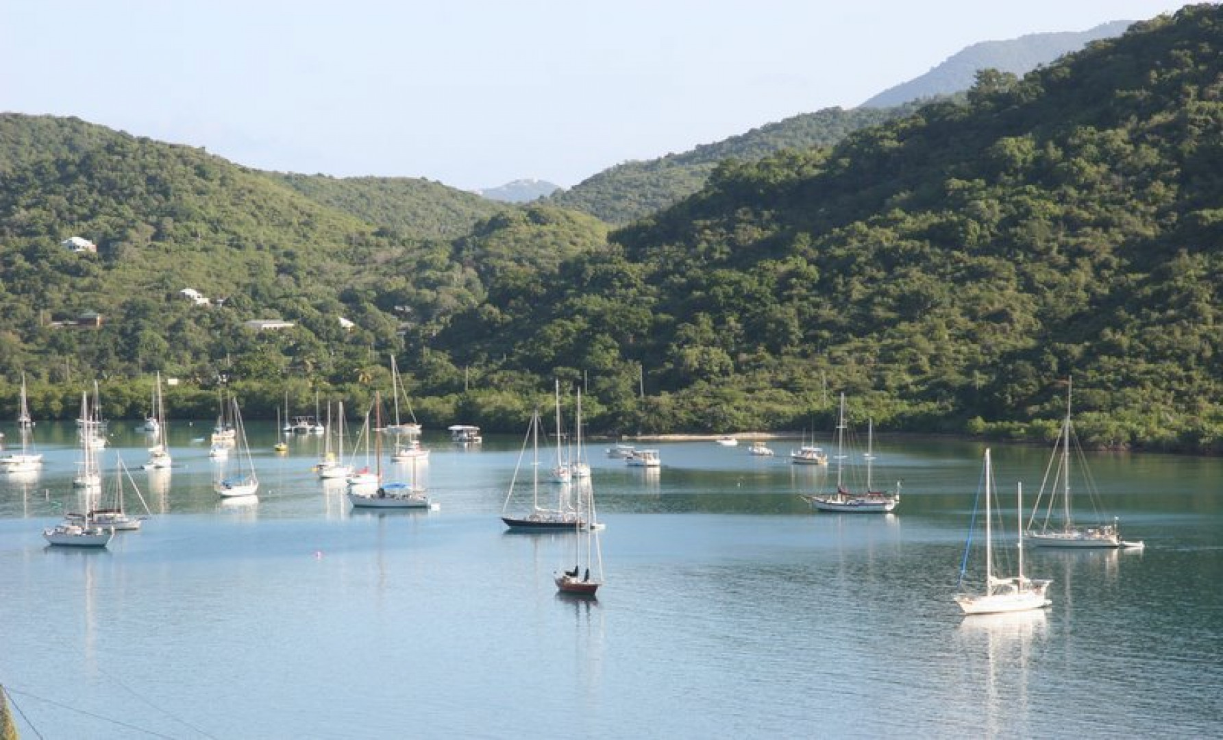 - View: British Virgin Islands, Caribbean, Down Island, East/sunrise, Harbor, Panoramic