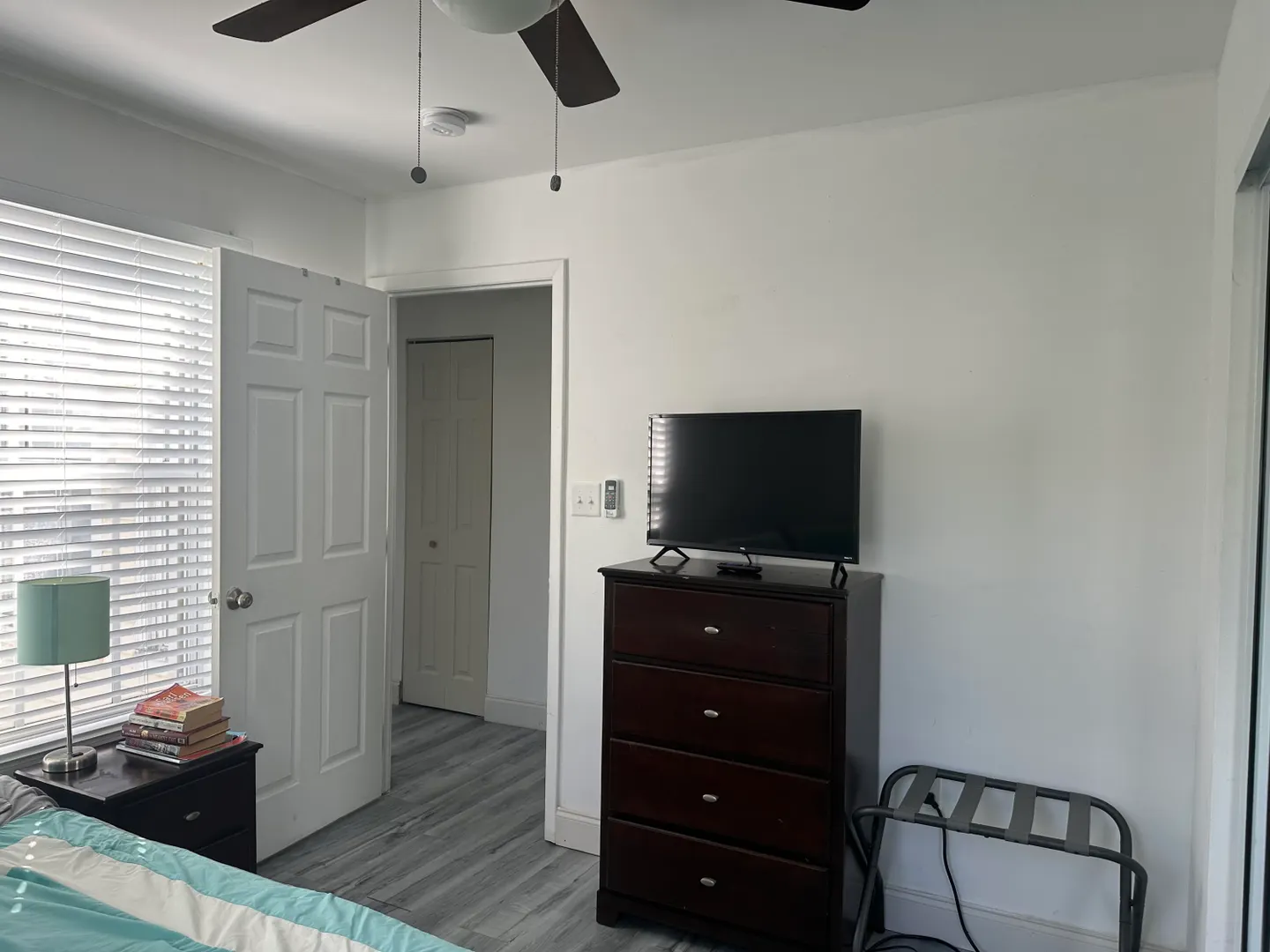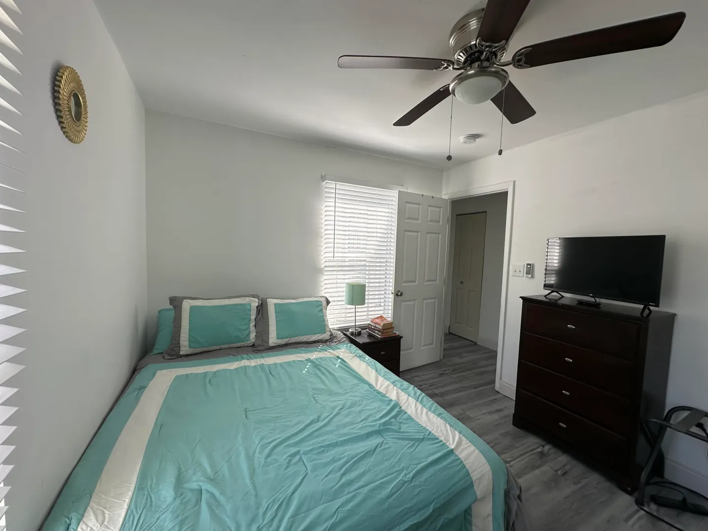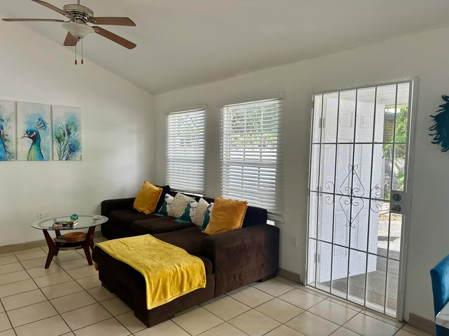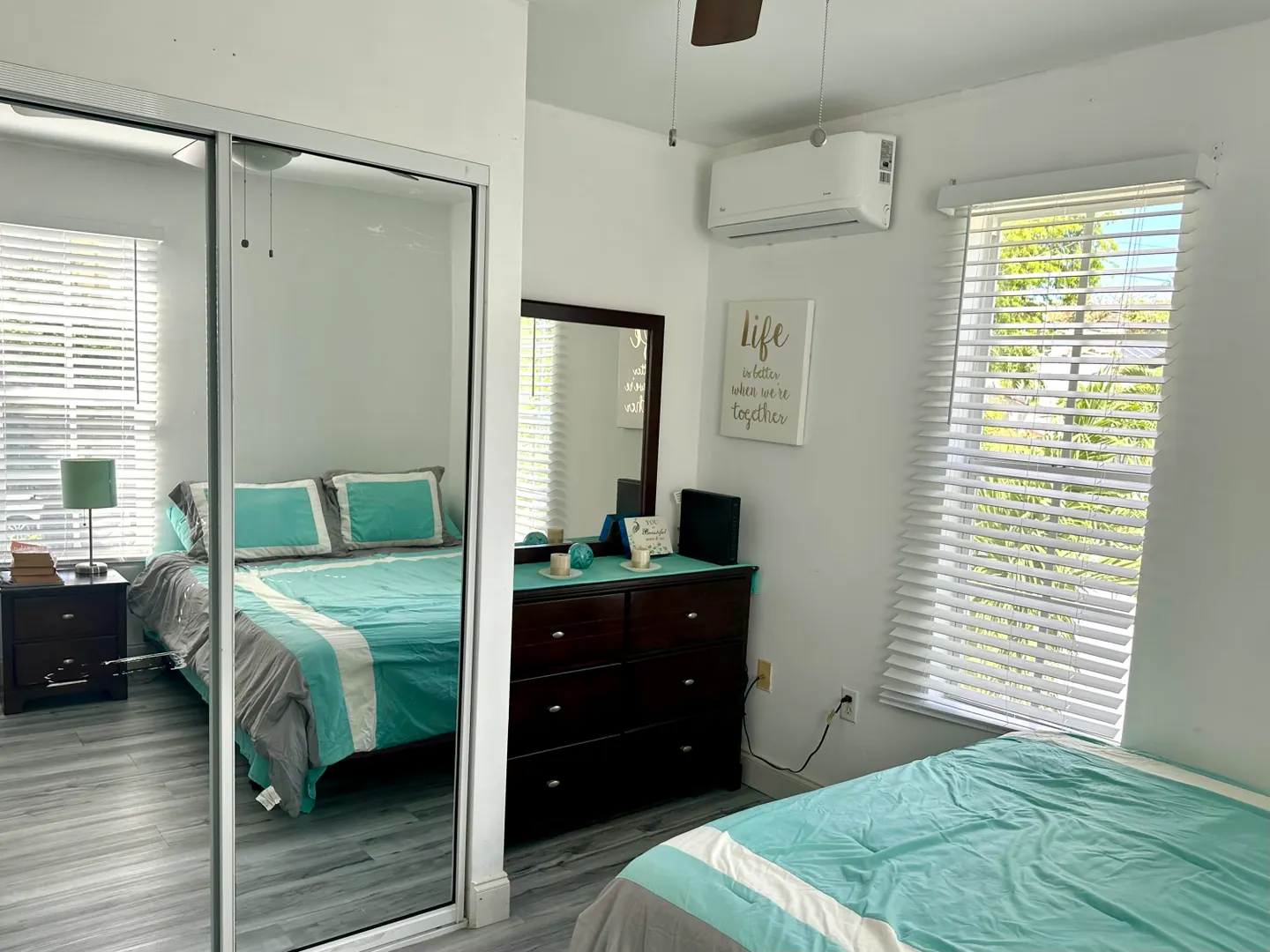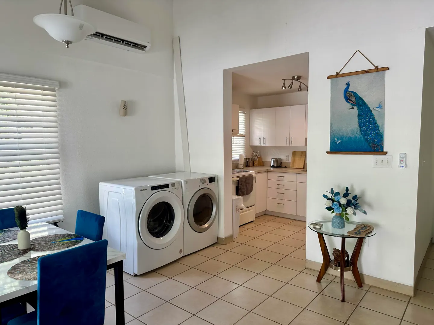 Beautifully furnished 2 BR / 1 BA apartment in the heart of downtown Christiansted. First floor features outdoor space, large and bright living room, W/D, very well appointed kitchen. Second floor features 2 bedrooms and a bathroom, each room has split AC. Ideal location, close to restaurants, boardwalk, seaplane, businesses and more. WAPA is split 75/25 with studio unit- apartment Tenant pays 75% of WAPA bill for property. Similar split for cistern water refill if needed.