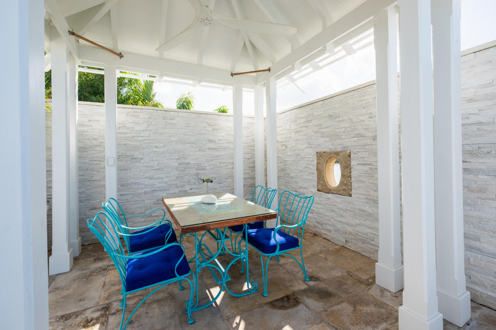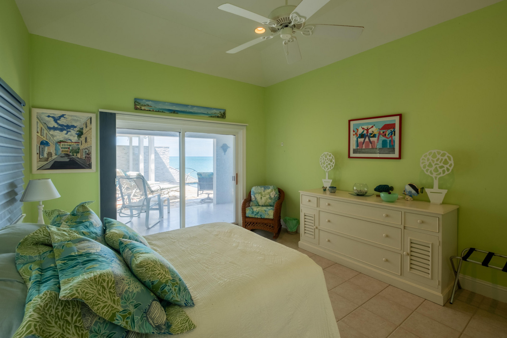 Discover this stunning Caribbean-inspired oceanfront home, a true masterpiece with breathtaking sea, sunset, and distant island views. Nestled in the exclusive, gated Carden Beach community, this immaculate 3-bedroom, 3-bath residence offers luxury, privacy, and unparalleled beauty.The home is equipped with solar power and features a heated lap pool adorned with custom glass tiles and burgundy limestone sourced directly from Provence, France. The spacious great room boasts a tray ceiling accented with custom glass tiles and soffit lighting. Expansive hurricane-resistant doors on the seaside open fully, inviting ocean breezes and framing stunning views of colorful flora and the shimmering sea.Enjoy outdoor living at its finest with a covered gallery and dining area with seating for eight, perfect for savoring the waves and sunsets. A poolside pergola with a unique custom stone porthole offers an alfresco dining experience enhanced by the soothing sounds of the ocean.