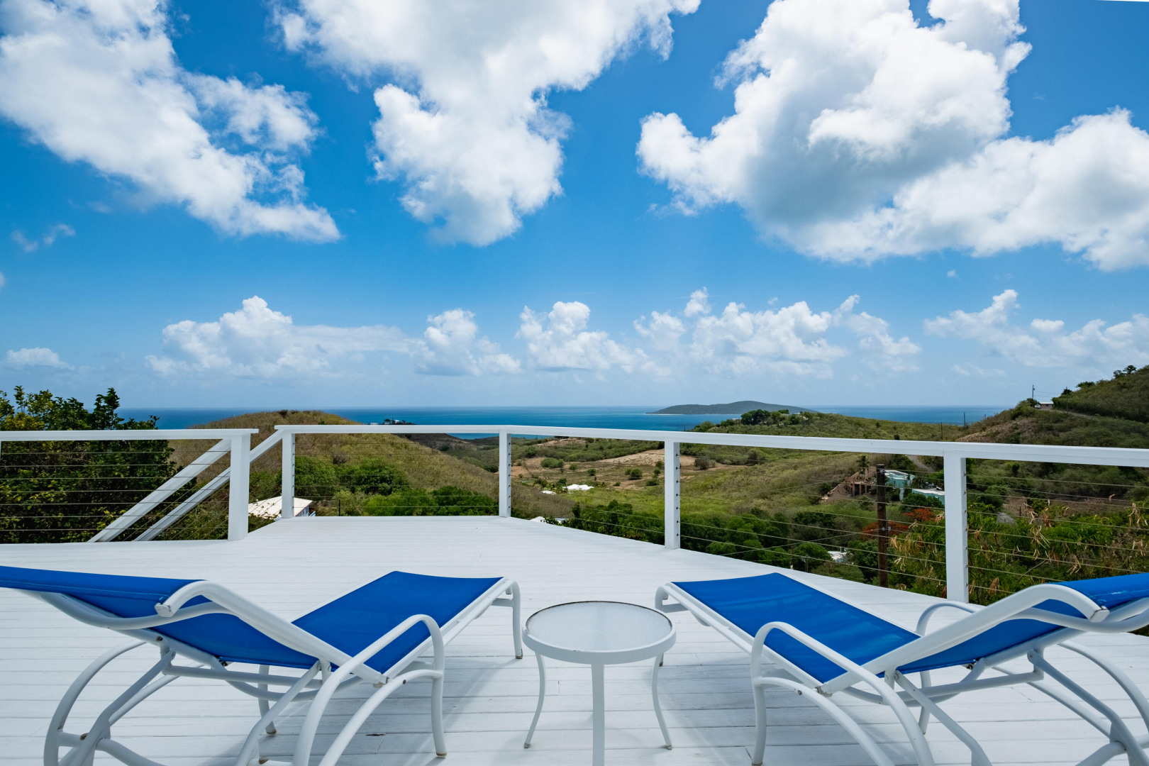 LIFE IS BETTER IN ALL FOR THE BETTER! This spacious and charming home is nestled in the hills of a desirable East End neighborhood, with an automatic gated entry. The setting on 1.7 lushly landscaped acres offer stupendous views from Christiansted to Buck Island, and the distant islands plus a glistening 'lights at night' panorama too! This immaculate home features 3 BRs and 3 baths upstairs w/ split AC in MBR and central in main, & a 2nd AC in 2nd BR, a1 BR apt. w/ AC below w/ its own private pkg. Enjoy the breezes on the new enclosed porch off the great room, which was specifically tied into the ground below for added reinforcement. Wander out to the pool on the wrap-around deck and sunning areas, and enjoy a refresher on the built-in pool seat & table under the umbrella!