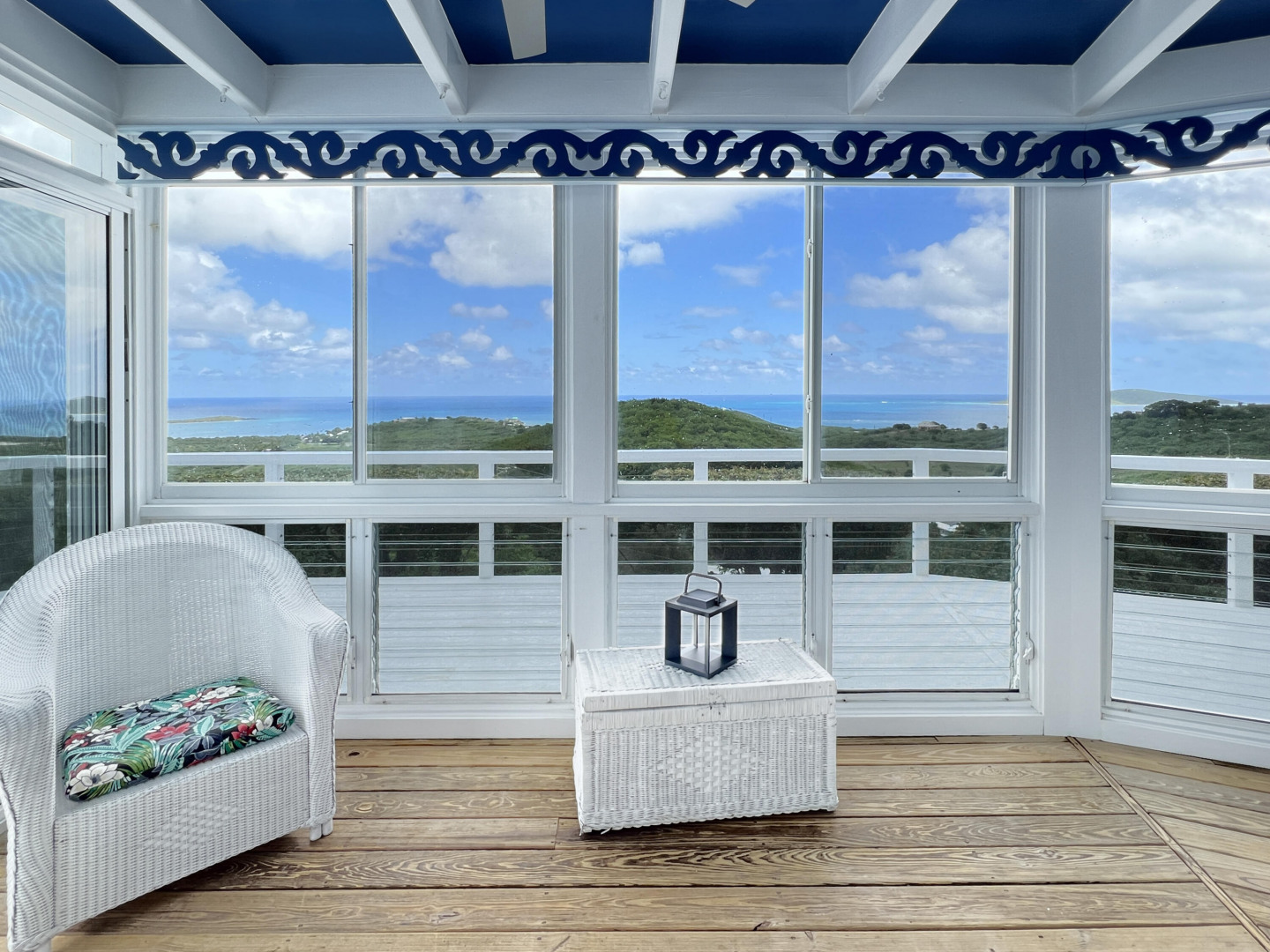 100% SOLAR ALL FOR THE BETTER BEAUTY! This spacious and delightful home on a large lot is nestled in the hills, and situated to take full advantage of the breezes and amazing sweeping views from Christiansted to Green Cay to Buck Island! Enjoy the views from the numerous windows and impact glass doors, the large deck, or from the pool, where there is built-in seating and a table for relaxing with a cool drink. Upstairs there are 3 bedrooms with ensuite bathrooms. There is a 1/1 apartment downstairs with its own private parking. The sun room was built with ties into the ground for added reinforcement, and is the perfect place to relax out of the direct sun. Trex decking surrounds the pool. The entire house was recently painted. See details of the many improvements in Documents section.