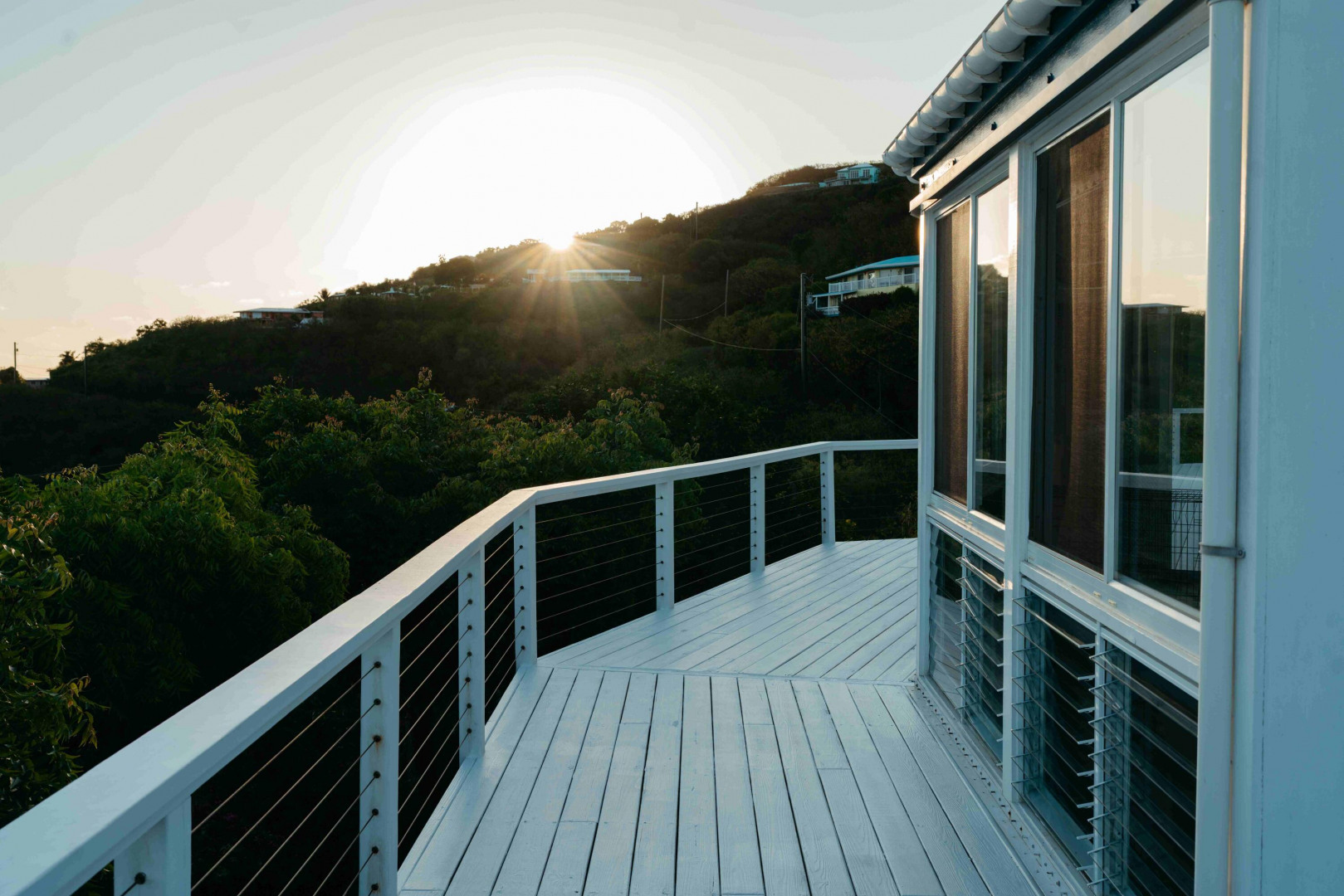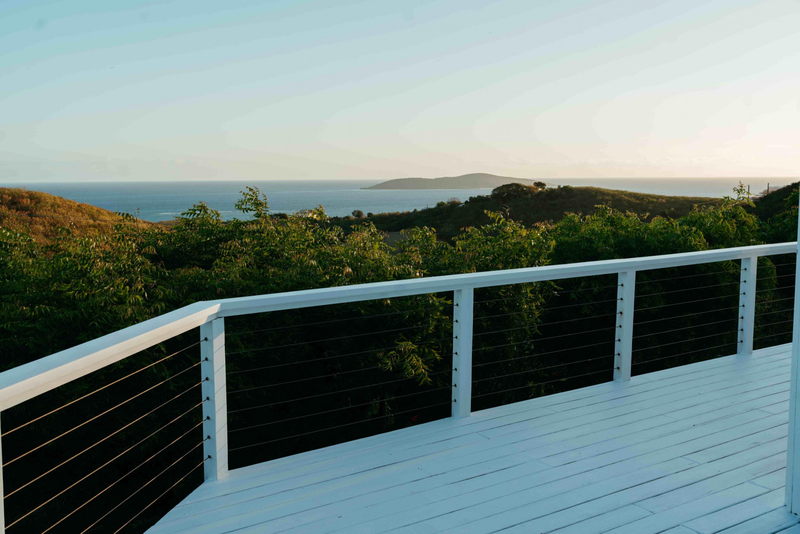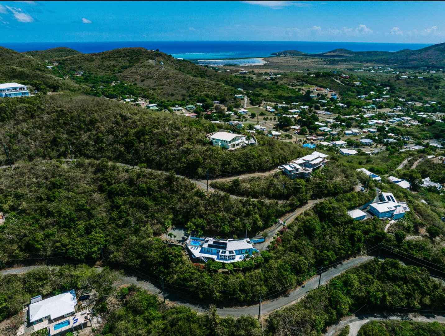 Unrivaled Caribbean Views from Buck Island to Judith's Fancy Point - Set on 1.2 acres of lushly landscaped grounds, this solidly built 3 BR/3 bath home with 1BR/1bath apt, pool, and solar w/ net metering & Tesla battery system is located high in the hills in the Seven Hills/AFTB mid-east end neighborhood behind an automatic gated entry. The home is immaculately maintained and offers expansive vistas stretching from Buck Island to Green Cay, all the way west across Christiansted to Judith's Fancy Point. Whether by day with the endless turquoise waters and offshore islands or by night with a shimmering canvas of twinkling lights in C'sted, the views are simply unforgettable. The open-concept kitchen is designed for entertaining with quartz countertops, a custom mahogany island and bar,and flows seamlessly into the great room and dining area. An enclosed porch - engineered for structural reinforcement - invites you to relax and soak in the sweeping views of the Caribbean Sea and distant islands. Step out onto the wrap-around deck to bask in the sun or cool off in the pool, complete with a built-in seat and umbrella-shaded table.