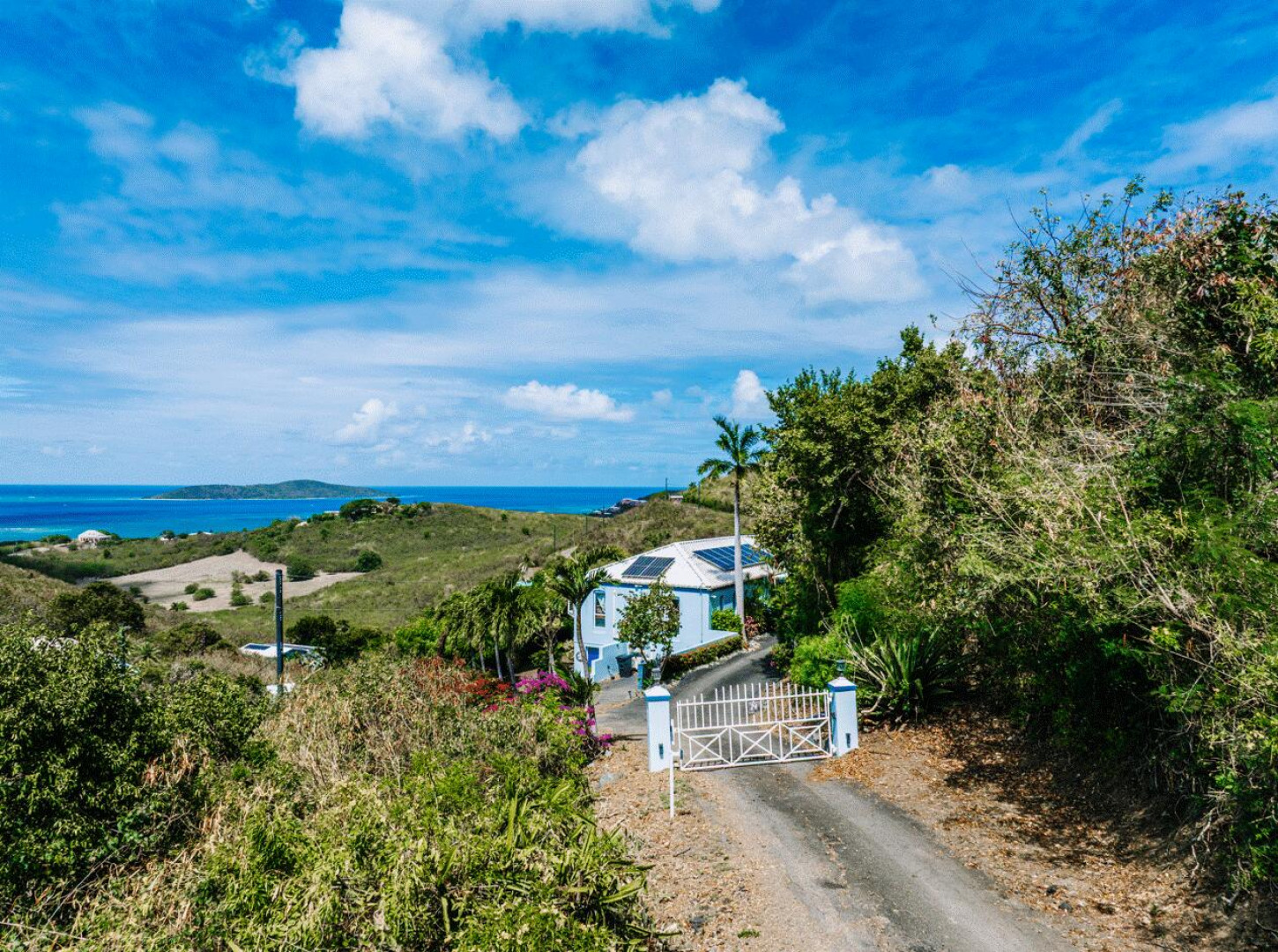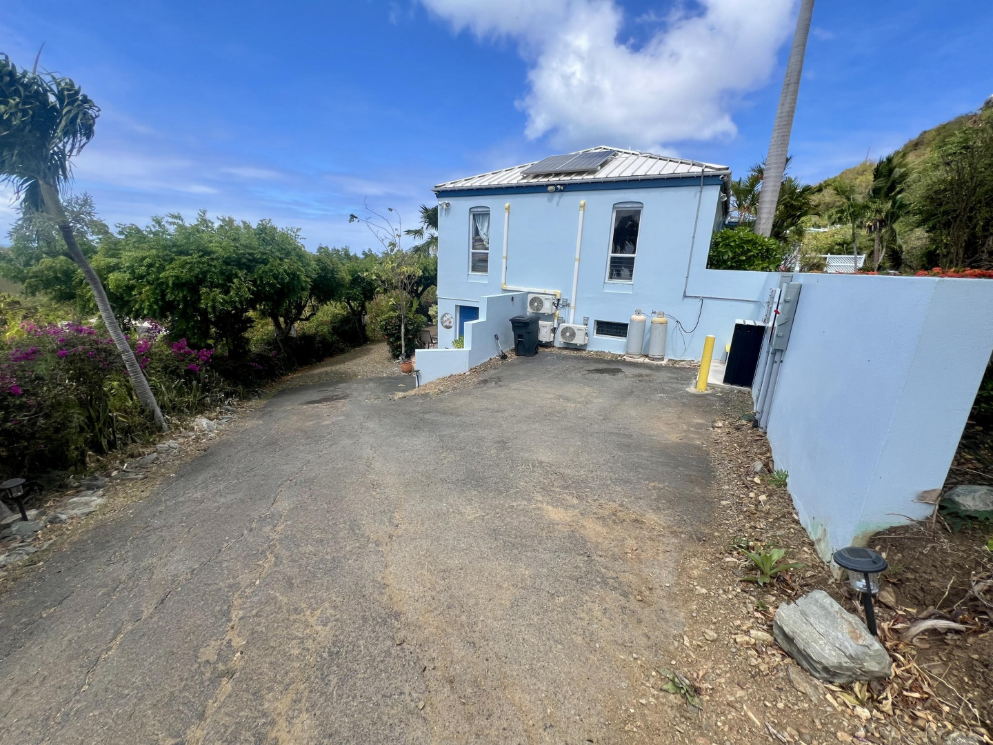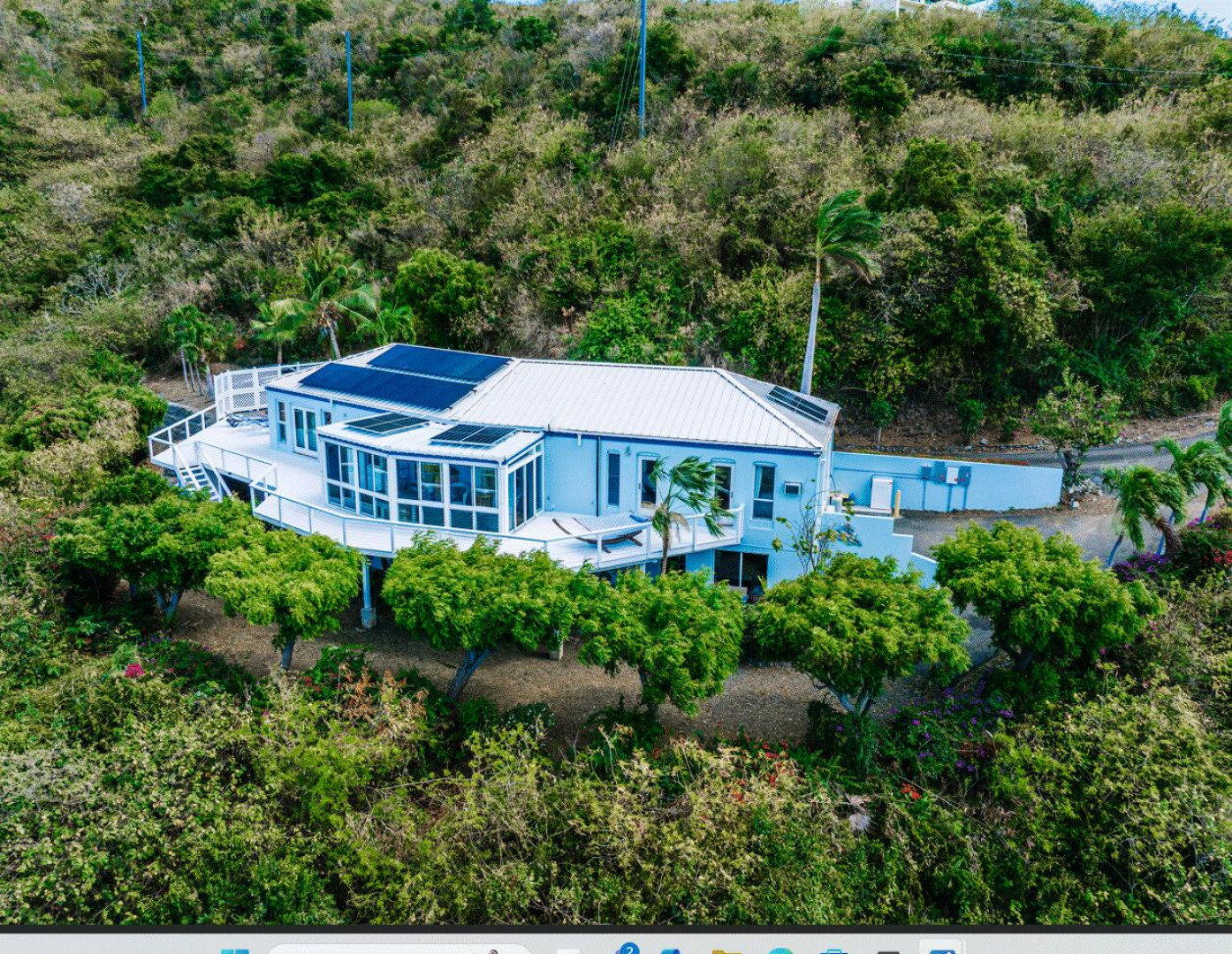 Unrivaled Caribbean Views from Buck Island to Judith's Fancy Point - Set on 1.2 acres of lushly landscaped grounds, this solidly built 3 BR/3 bath home with 1BR/1bath apt, pool, and solar w/ net metering & Tesla battery system is located high in the hills in the Seven Hills/AFTB mid-east end neighborhood behind an automatic gated entry. The home is immaculately maintained and offers expansive vistas stretching from Buck Island to Green Cay, all the way west across Christiansted to Judith's Fancy Point. Whether by day with the endless turquoise waters and offshore islands or by night with a shimmering canvas of twinkling lights in C'sted, the views are simply unforgettable. The open-concept kitchen is designed for entertaining with quartz countertops, a custom mahogany island and bar,and flows seamlessly into the great room and dining area. An enclosed porch - engineered for structural reinforcement - invites you to relax and soak in the sweeping views of the Caribbean Sea and distant islands. Step out onto the wrap-around deck to bask in the sun or cool off in the pool, complete with a built-in seat and umbrella-shaded table.