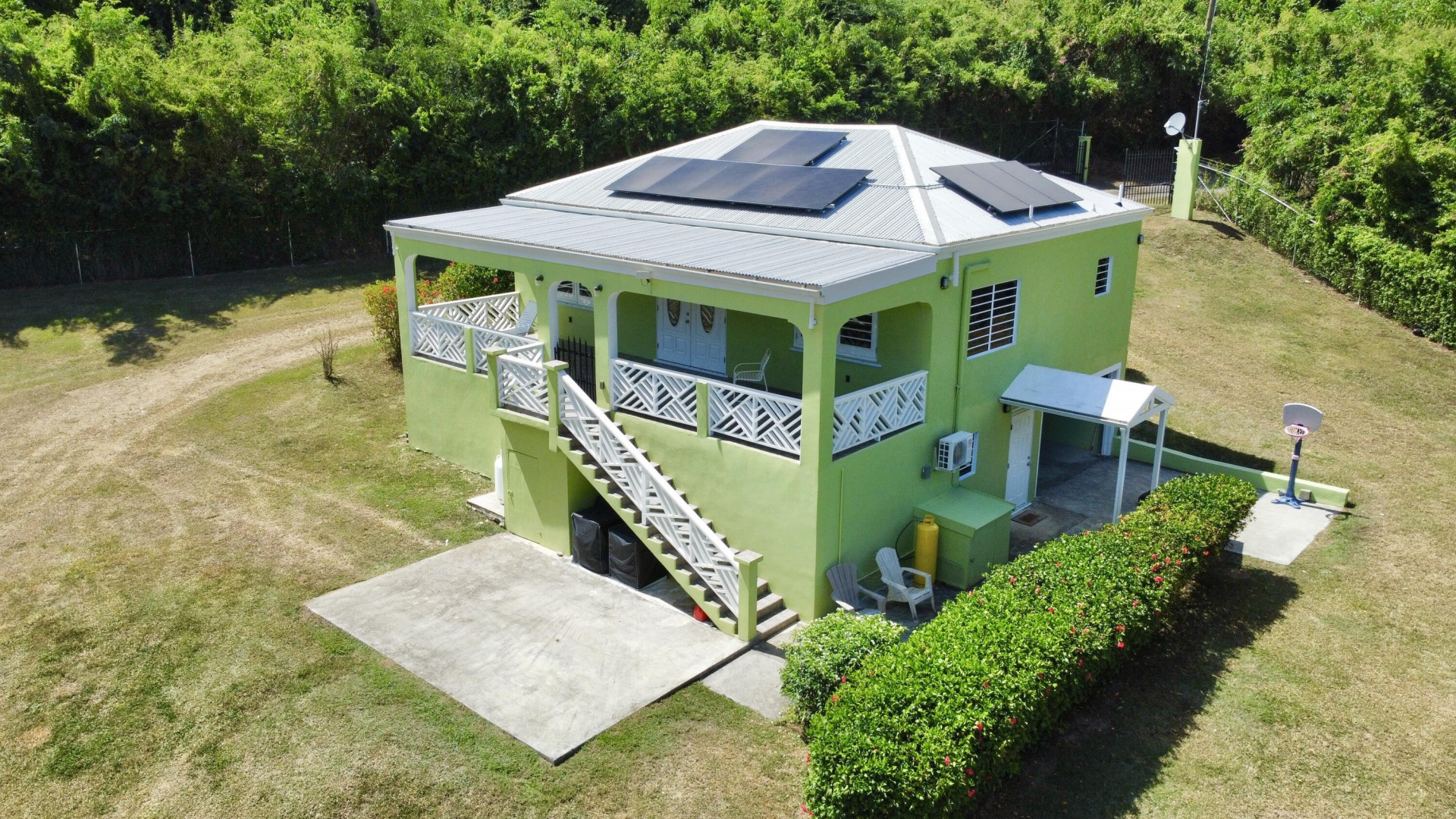 Welcome to the Garden of Eden - A Serene Slice of Paradise in St. Croix.Discover true tranquility on this stunning 2.07 acre estate. Tucked away in the cool, quiet, and peaceful setting of our famous rainforest, this property is a rare gem offering both sustainable living and natural beauty. This lush retreat is equipped with solar panels, a Tesla battery, and a freshwater well--providing self-sufficiency and eco-conscious comfort. Enter through your electric gate and enjoy the security and privacy of your own personal haven. The property features a 2-bedroom, 2-bathroom main house and a charming 1-bedroom, 1-bathroom apartment with a 1-car garage. Ideal as a private residence, guest quarters or income-producing rental.Explore the land and you'll find an abundance of fruit trees, vibrant greenery and a soothing breeze that enhances the sense of calm and connection with nature. Whether you're sipping morning coffee on the patio or walking through your very own edible landscape, The Garden of Eden invites you to breathe, relax, and feel at home.