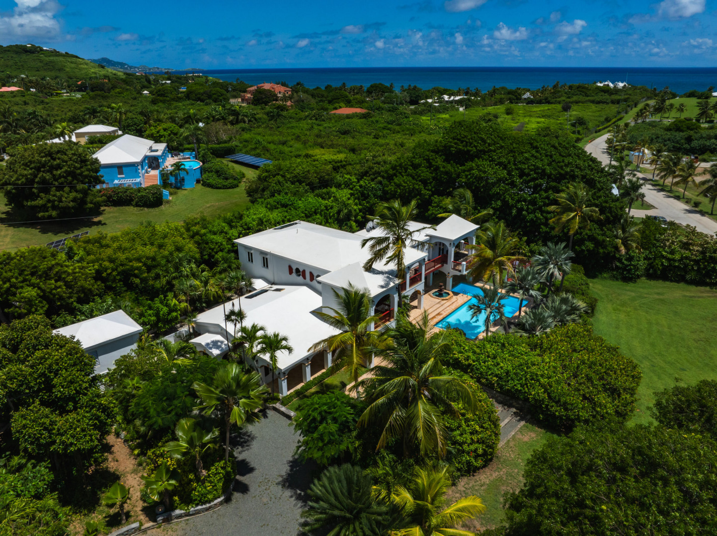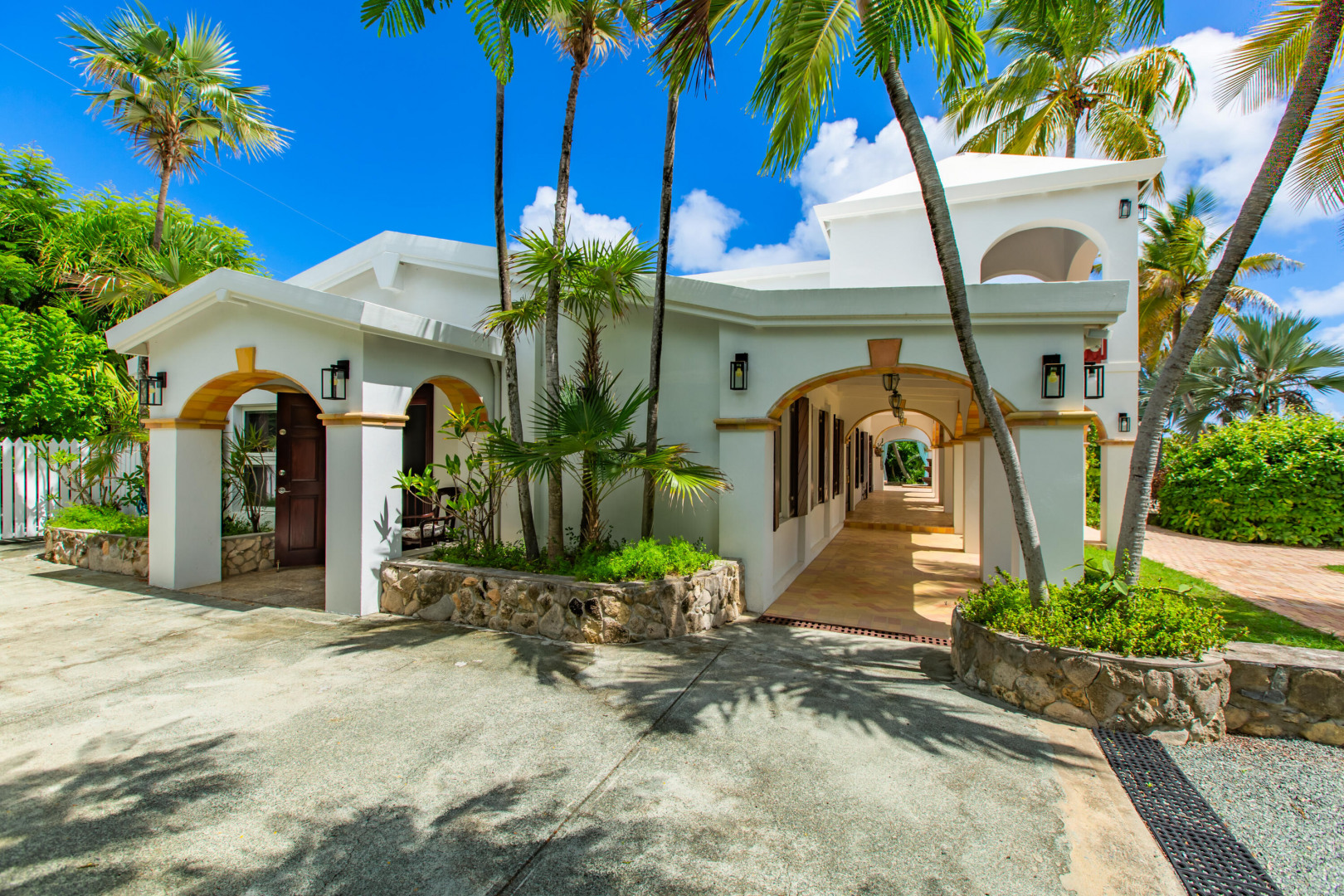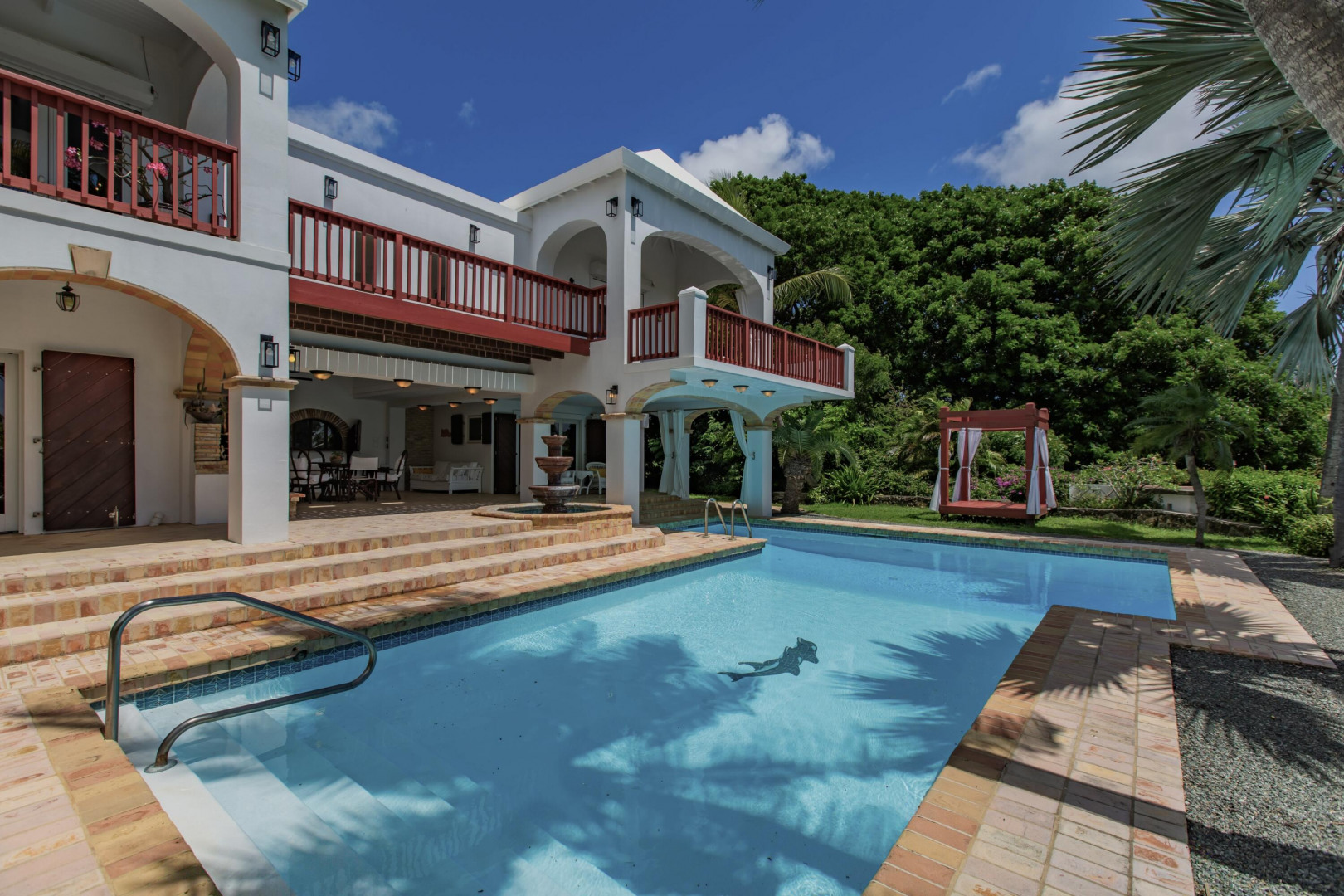 Discover the epitome of Caribbean luxury with this stunning two-story villa on St. Croix's East End. This 5-bedroom, 6.5-bath masterpiece offers an unparalleled living experience, blending opulent comfort with the island's natural beauty. Its spacious accommodations include: Five bedrooms (including a 2/2 apt with separate entrance), each with its own en-suite bathroom, provide comfort and privacy for all guests. Half-bath just off living /dining room, full bath poolside. Main bedroom suite on upper level features a private living area and covered gallery. The gourmet chef's kitchen is fully equipped and designed for culinary enthusiasts, perfect for hosting and entertaining with triple sinks, range, granite countertops, large pantry, custom cabinetry, pass-through window & eat-in