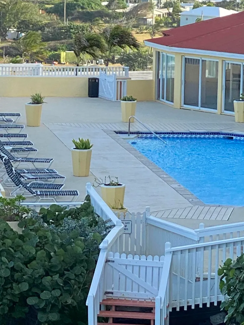Get in while the going is hot! St. C is in big demand and greatly sought after. Take advantage of this opportunity to own a large 1,100 sq. ft. condo boasting some of the best views on St. Croix. This is a walk in unit on the upper level. Enjoy views spanning from historic Christiansted town to Buck Island and our sister islands on clear days, without stepping out of the comfort of your home! Property offers a pool, gated 24/7 security and is located within close proximity to everything you need from groceries to diving.