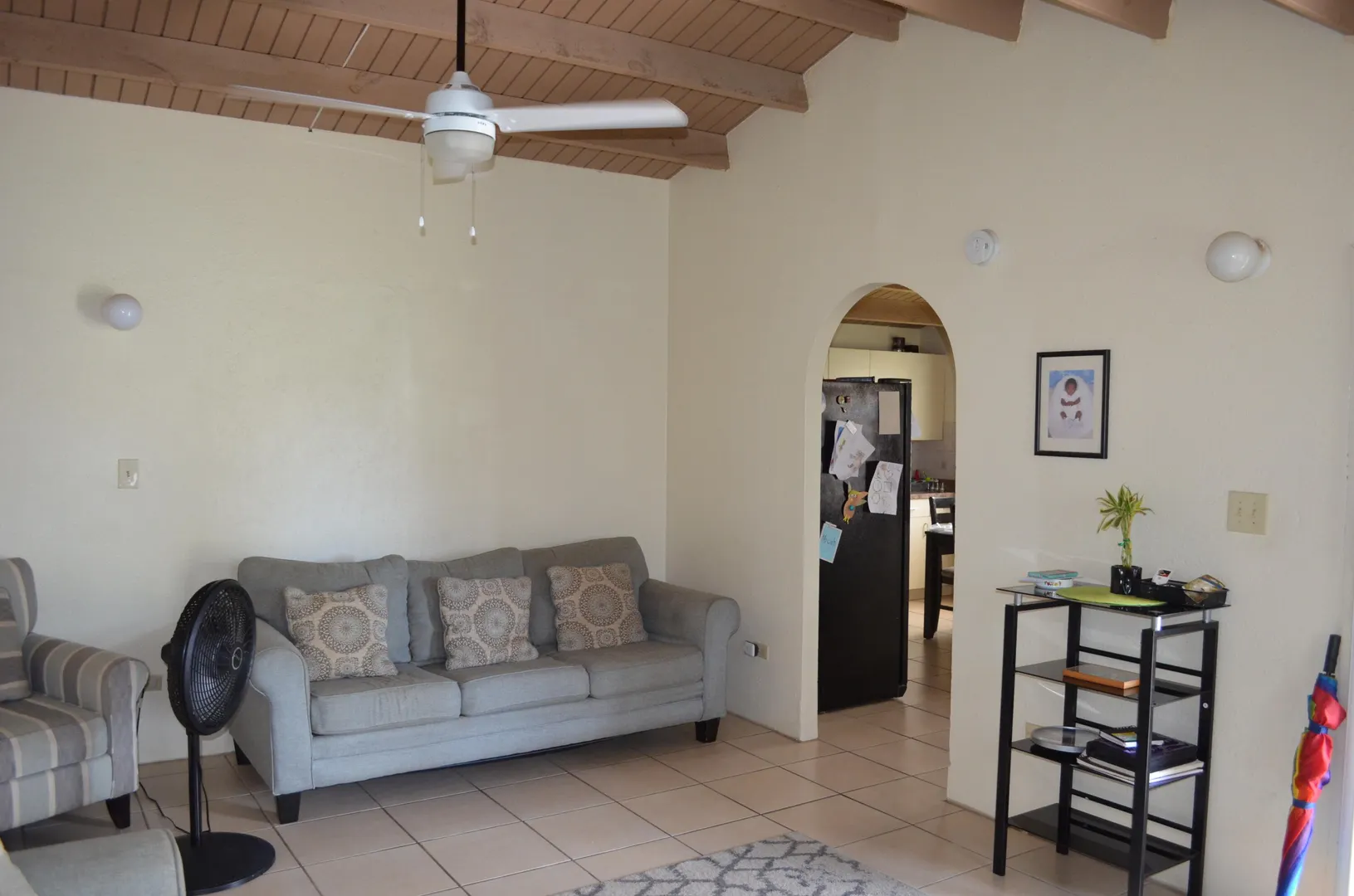 Gated, 3/2 home in centrally located neighborhood comes fully furnished including washer & dryer. Nice yard, AC in 2 bedrooms, internet & ADT alarm system included. Close to The Market, public transportation and Frederiksted.