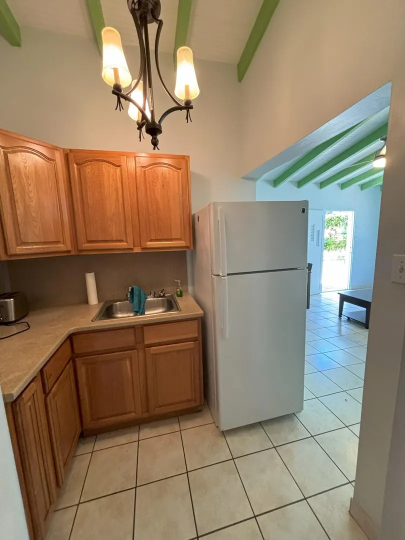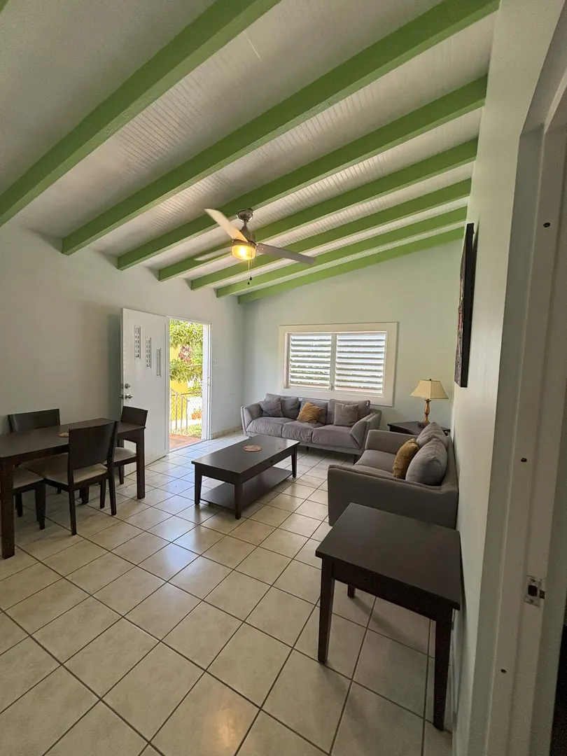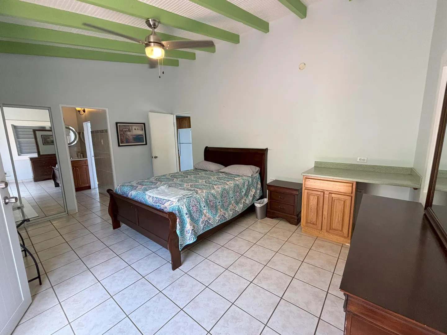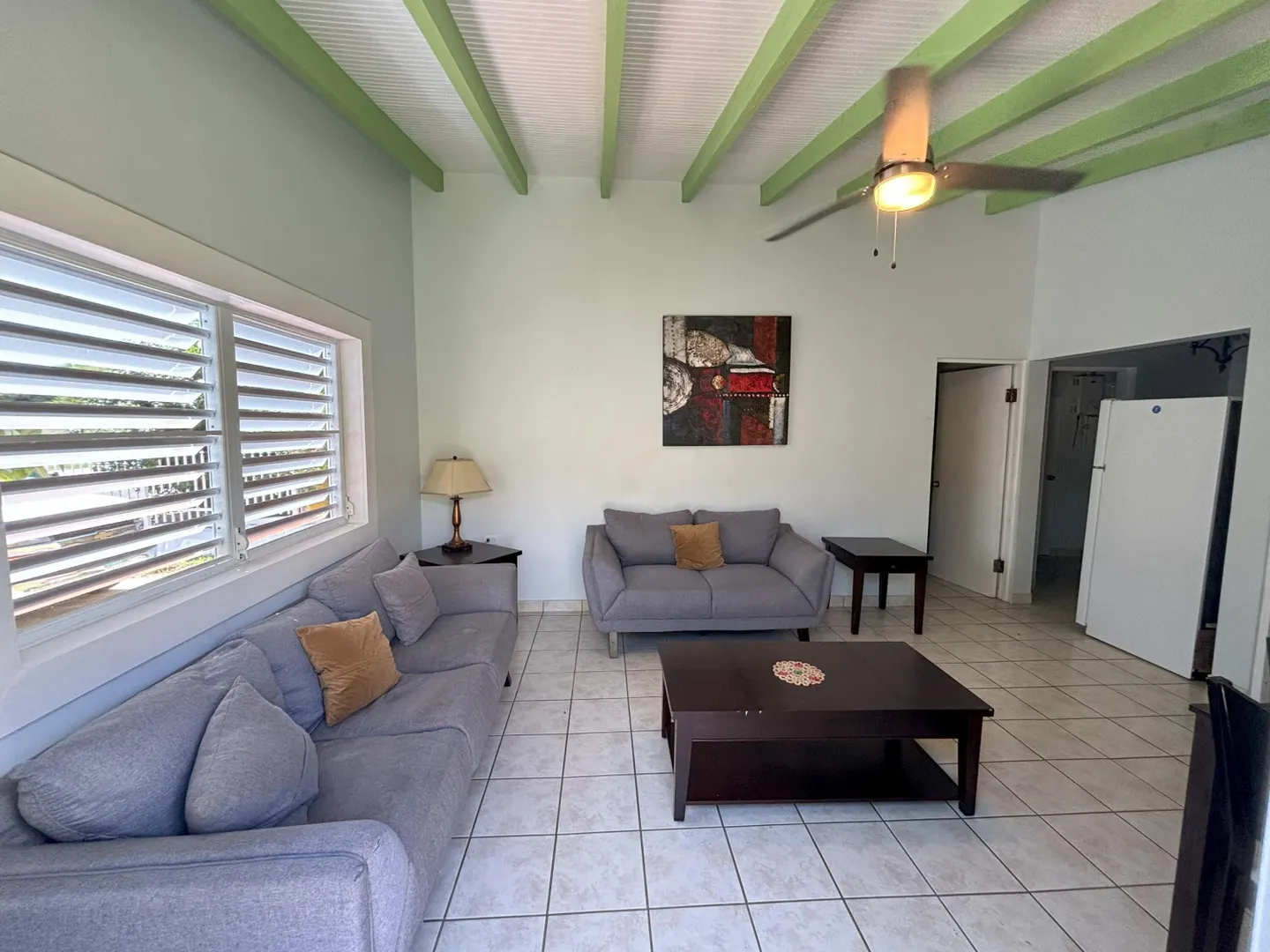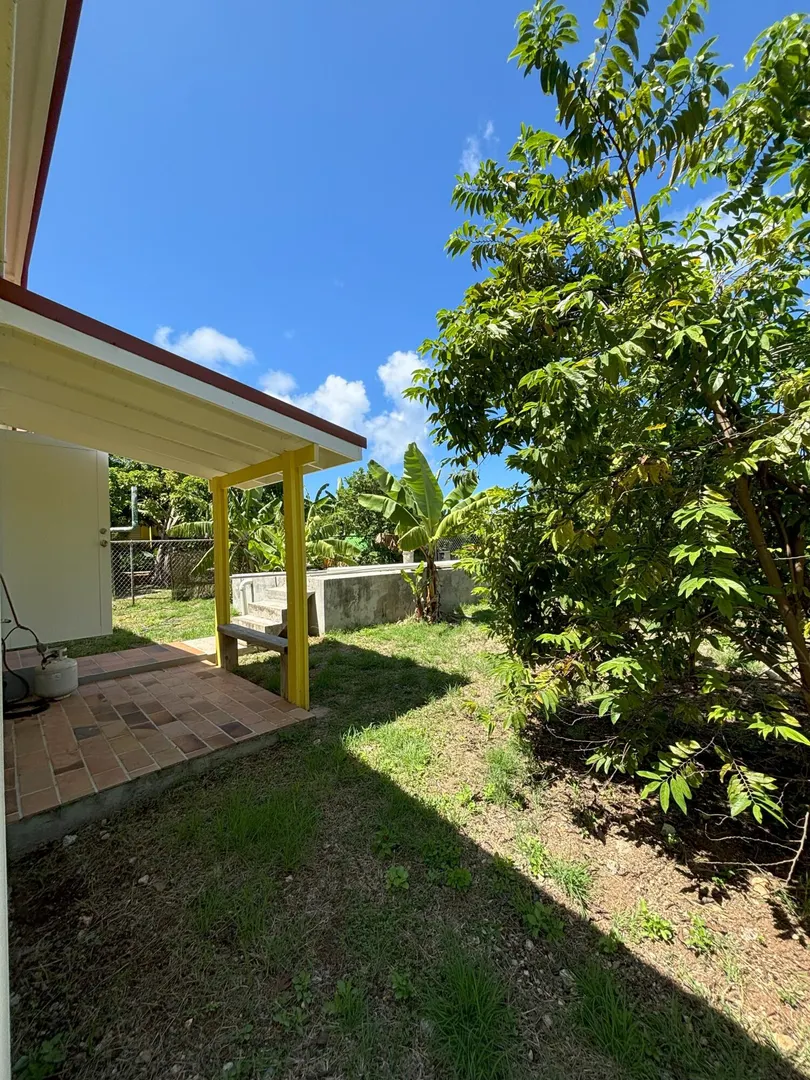 Adoreable, private furnished one bedroom, 2 bathroom cottage on a cul-de-sac. Mini split in bedroom. Fans in bedroom and living/dining room. Private gated driveway with parking for two cars. Two entrances. Small covered patio in back yard large enough for a dining table and area on raised cistern for lounge chairs. Beautiful tiled entryway with benches to sit on. 2 full mirrored closets. Close to F'sted beaches and the highway! Fruit trees and meticulous maintenance.