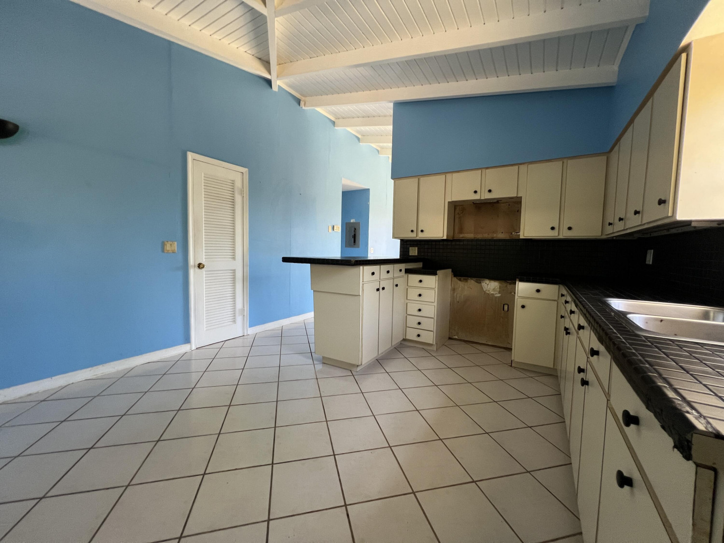 Hillside 2-Bedroom Home with Room to Grow! Perched on a .81-acre hillside lot just 10 minutes from downtown Christiansted, this 2-bedroom, 1-bath home offers a peaceful setting with a slight sea view to the north. Inside, you'll find vaulted ceilings that create an airy feel, and outside, a back patio and deck for relaxing or entertaining. The fenced yard is perfect for pets or gardening. A separate 45,000-gallon cistern sits on the upper portion of the property--a great opportunity to build a second home with a great sea view. While the home could use a little TLC, the location, space, and potential make it a great find.