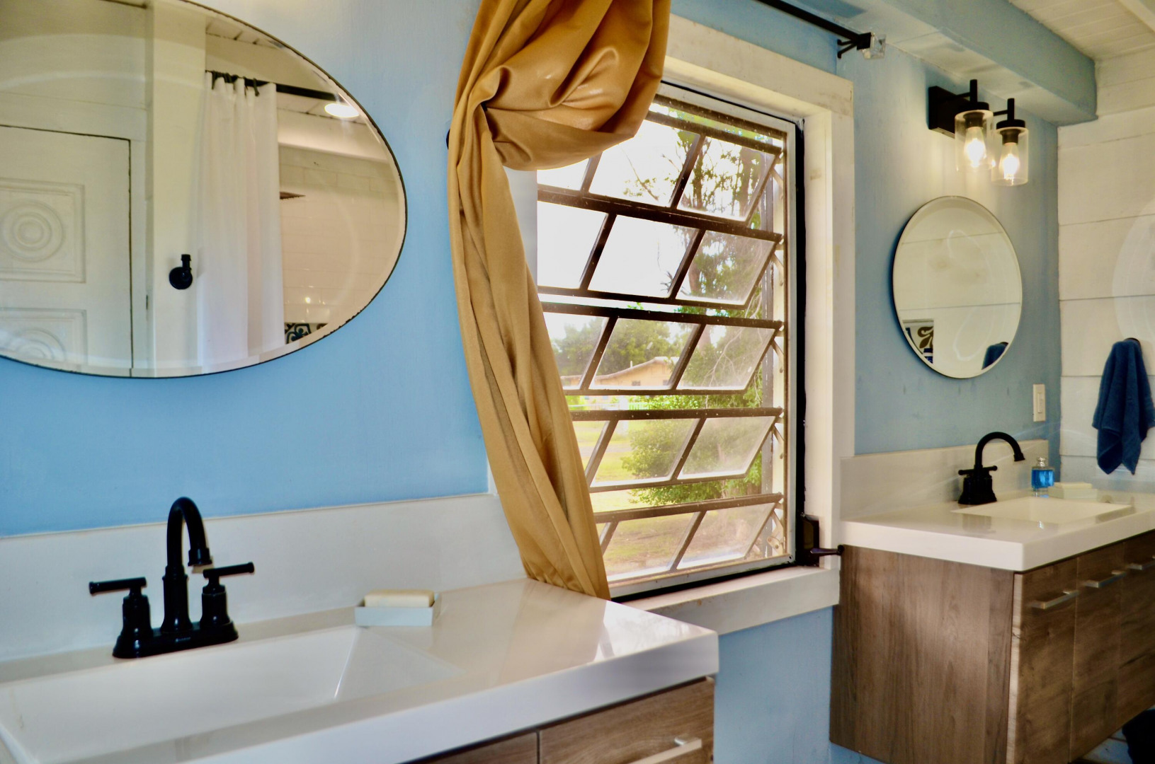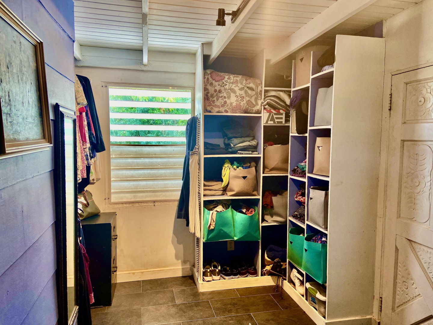 This STYLISHLY RENOVATED 3 bed/2 bath home is located in a cute Frederiksted cul-de-sac. Cooking is a pleasure w/the kitchen's crisp white cabinetry topped w/ gorgeous dark grey granite & deep double sink. High ceilings & fans open the combined living/dining/kitchen to wonderful breezes or from the cute front porch. The primary bedroom suite offers a separate dressing area loaded w/built-in closets & shelving & roomy enough for a desk. Totally modern spa baths include the chic en suite primary featuring a double shower, 2 free-standing vanities & built-in shelving. The guest bath is another elegant space. The 3rd bedroom can be a lovely in-law suite as it has direct access to the fabulous covered back patio. Mature mango, carambola, bay & soursop trees dot the fenced back yard. A must see
