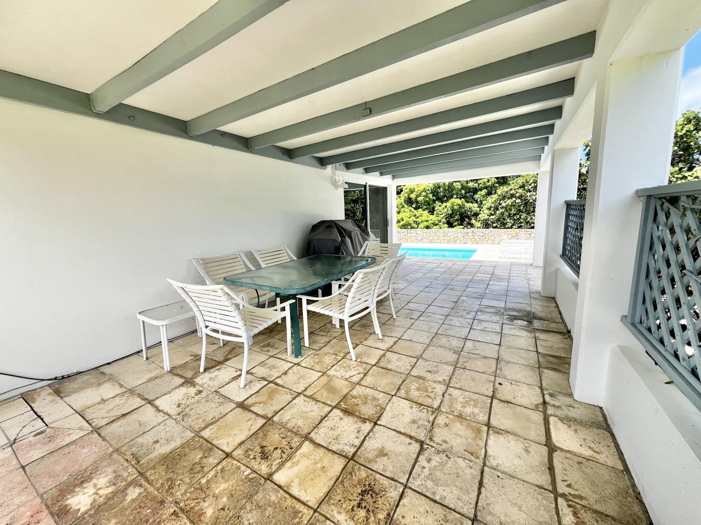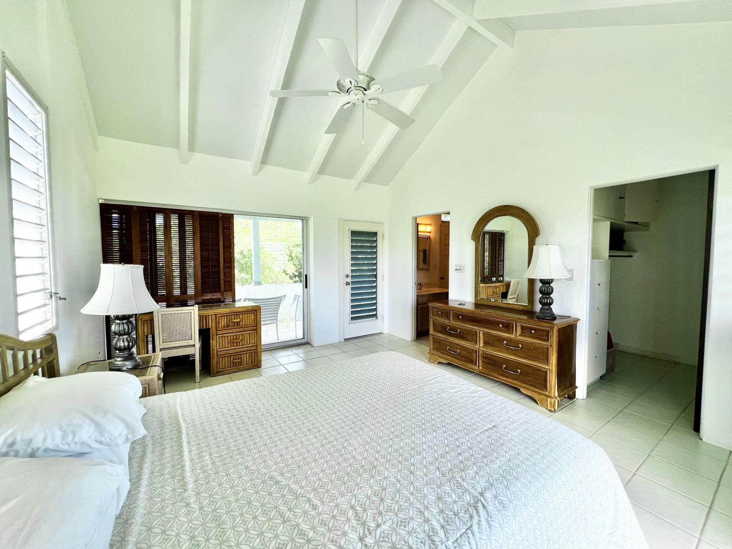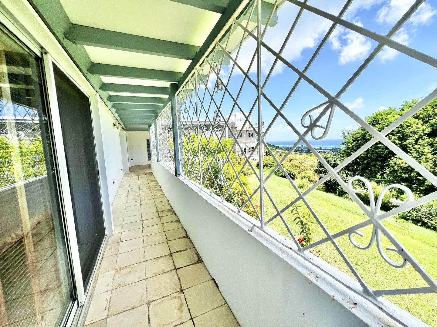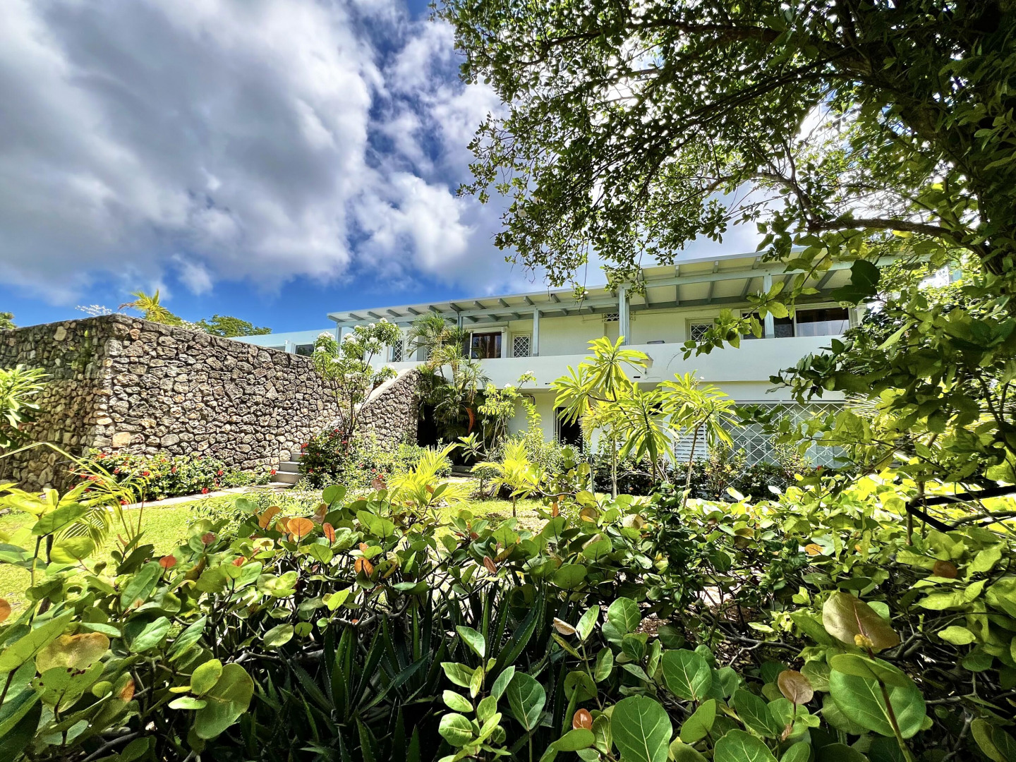 Experience island living at its finest in this three-bedroom villa with a spacious apartment featuring a large swimming pool and a sunlit deck. Nestled amid tranquil outdoor alcoves and shaded seating areas throughout, the property, set back from the Hermon Hill neighborhood road, offers privacy and serenity. The villa, set on a large yard, is surrounded by majestic old trees and lush landscaping adding to its tranquil vibe. The home has a large great room that is flanked by sea views and galleries to the north and the swimming pool to the south, with potential sea views in that direction. Two primary bedrooms, each with a private entrance via a covered exterior walkway, open to a sea-facing gallery and a shaded outdoor living area. The third bedroom, which can also serve as an officeis located off the large living room, making it versatile for guests or hybrid use.