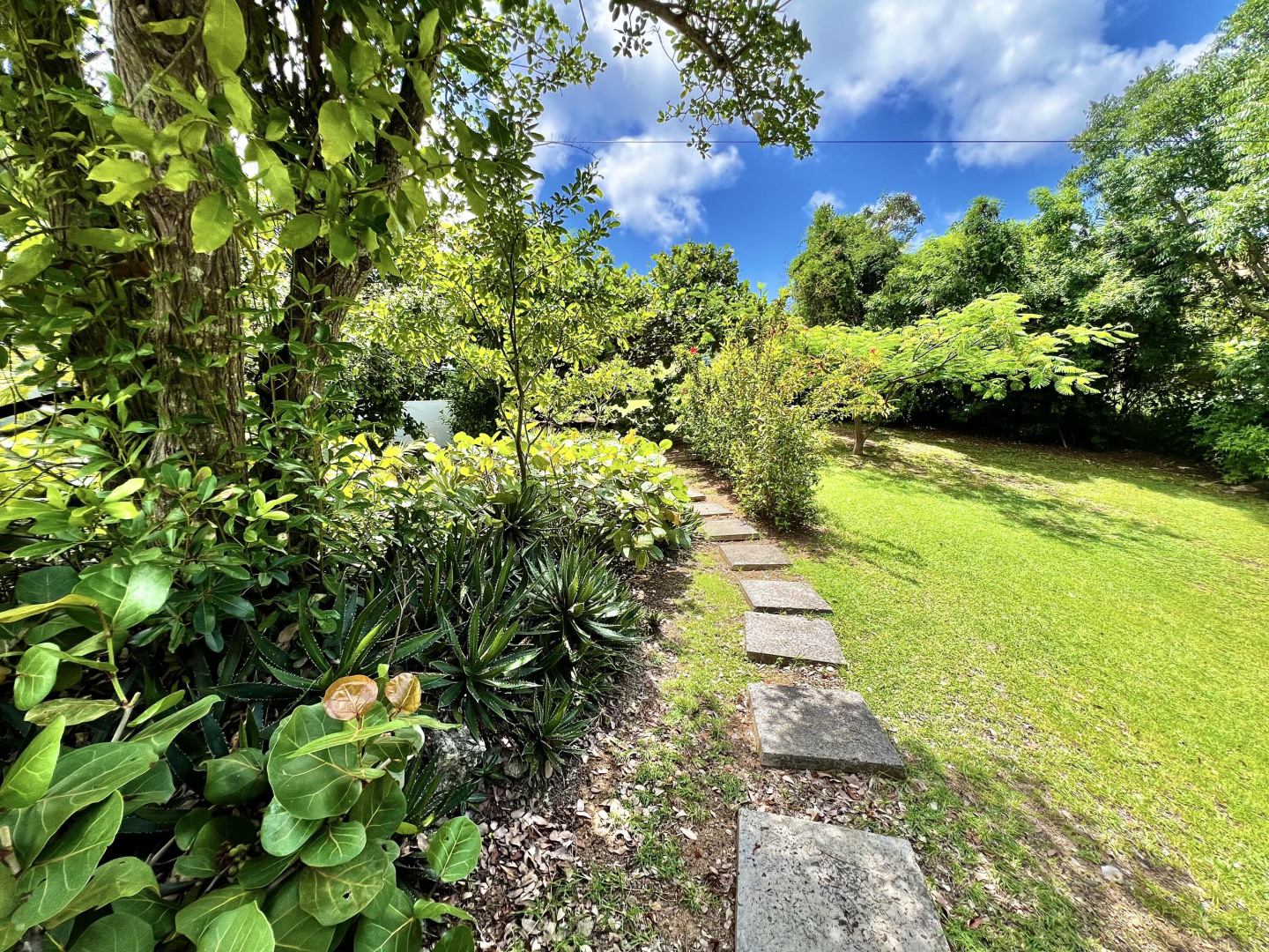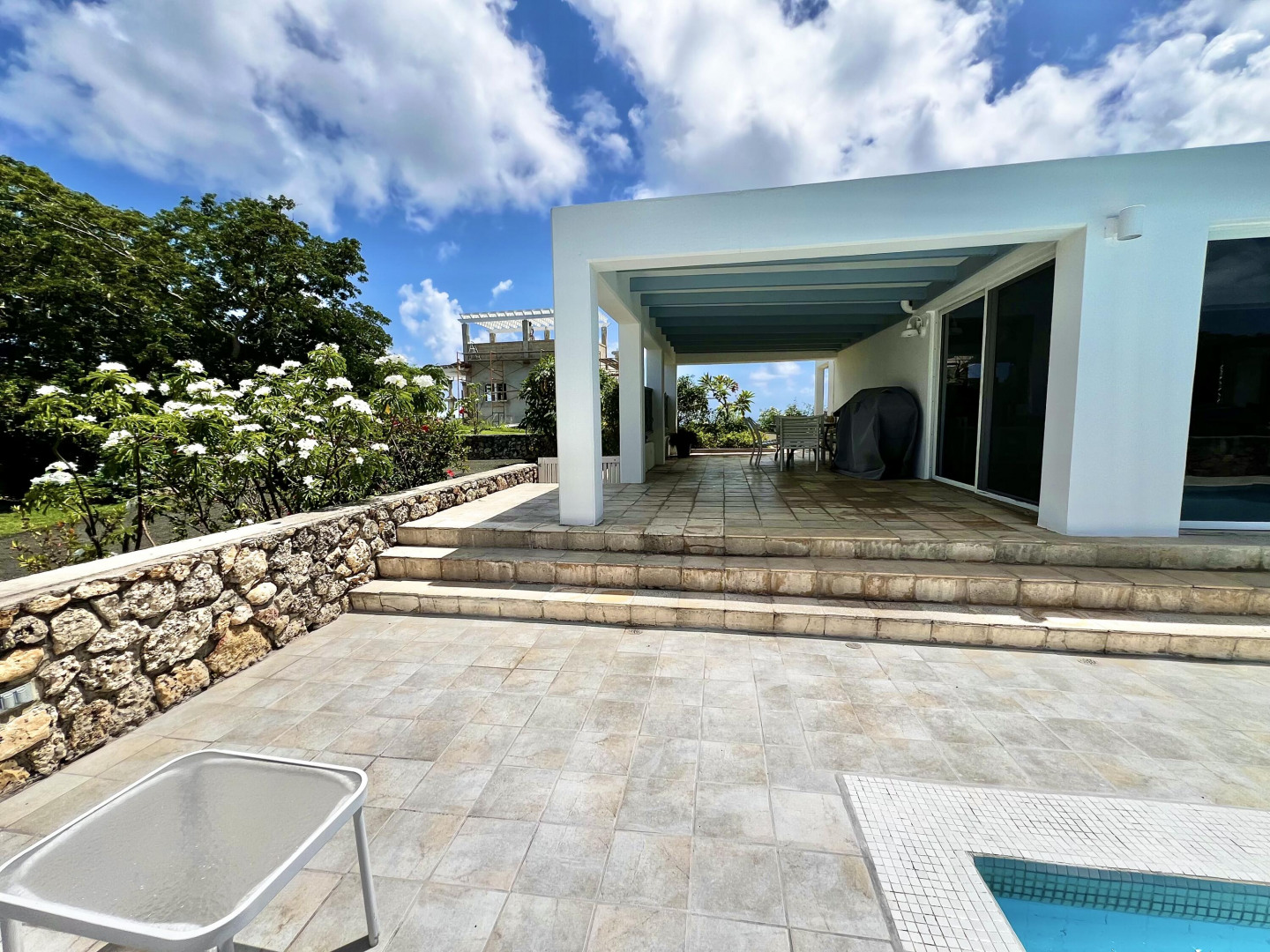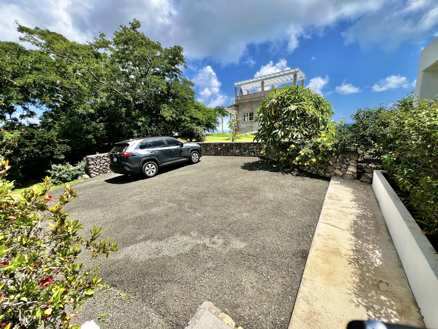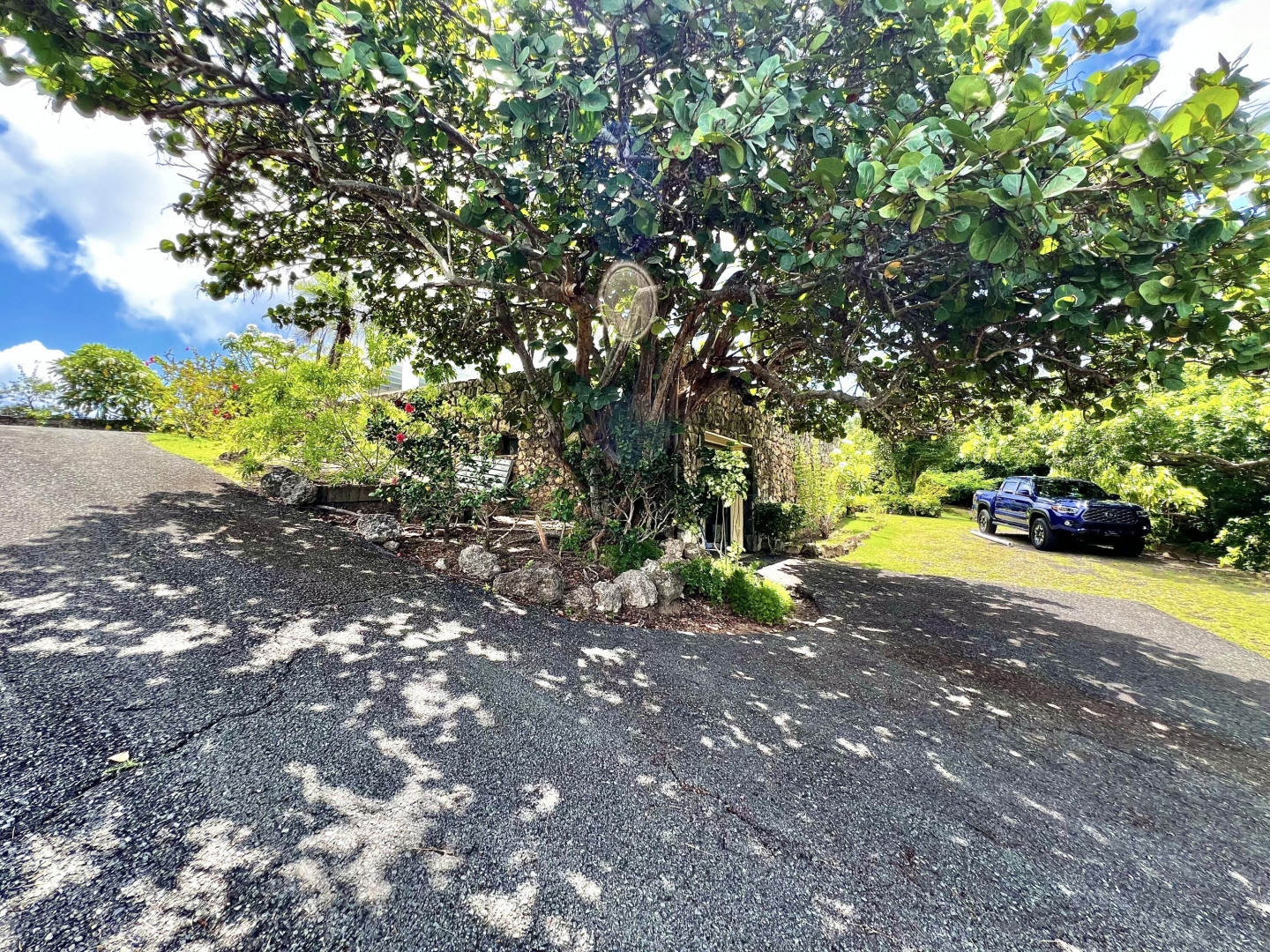 Experience island living at its finest in this three-bedroom villa with a spacious apartment featuring a large swimming pool and a sunlit deck. Nestled amid tranquil outdoor alcoves and shaded seating areas throughout, the property, set back from the Hermon Hill neighborhood road, offers privacy and serenity. The villa, set on a large yard, is surrounded by majestic old trees and lush landscaping adding to its tranquil vibe. The home has a large great room that is flanked by sea views and galleries to the north and the swimming pool to the south, with potential sea views in that direction. Two primary bedrooms, each with a private entrance via a covered exterior walkway, open to a sea-facing gallery and a shaded outdoor living area. The third bedroom, which can also serve as an officeis located off the large living room, making it versatile for guests or hybrid use.