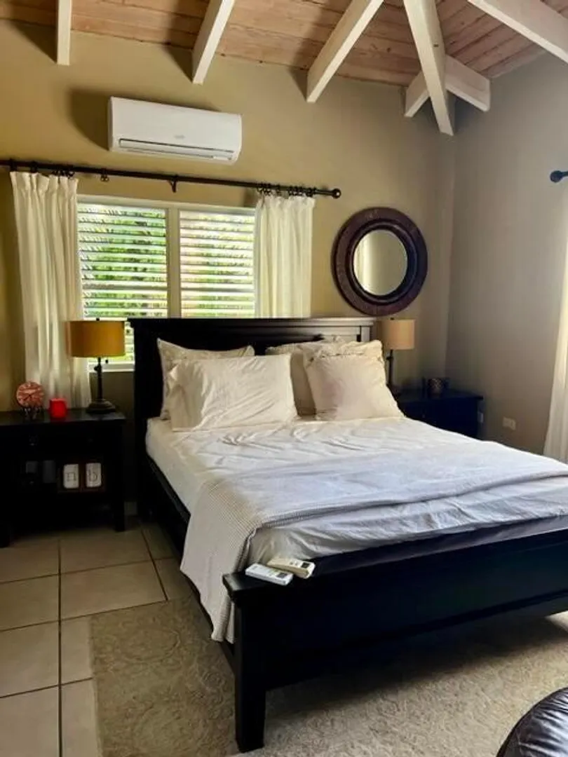 Fully furnished, 3/2 home in La Grande Princesse up Rattan Road. Bedrooms have AC, tenant to pay utilities, washer/dryer on site. Third bedroom is currently set up as a guest/family room. Great location, only a few minutes from Sunny Isles, Christiansted and amenities. Wooden deck and yard access off carport.