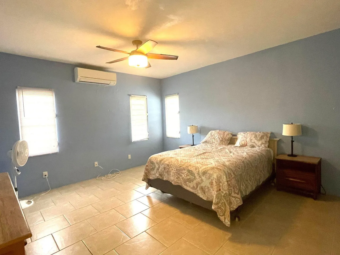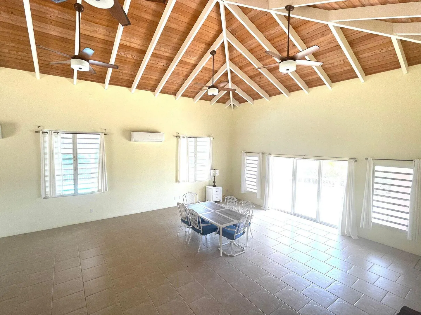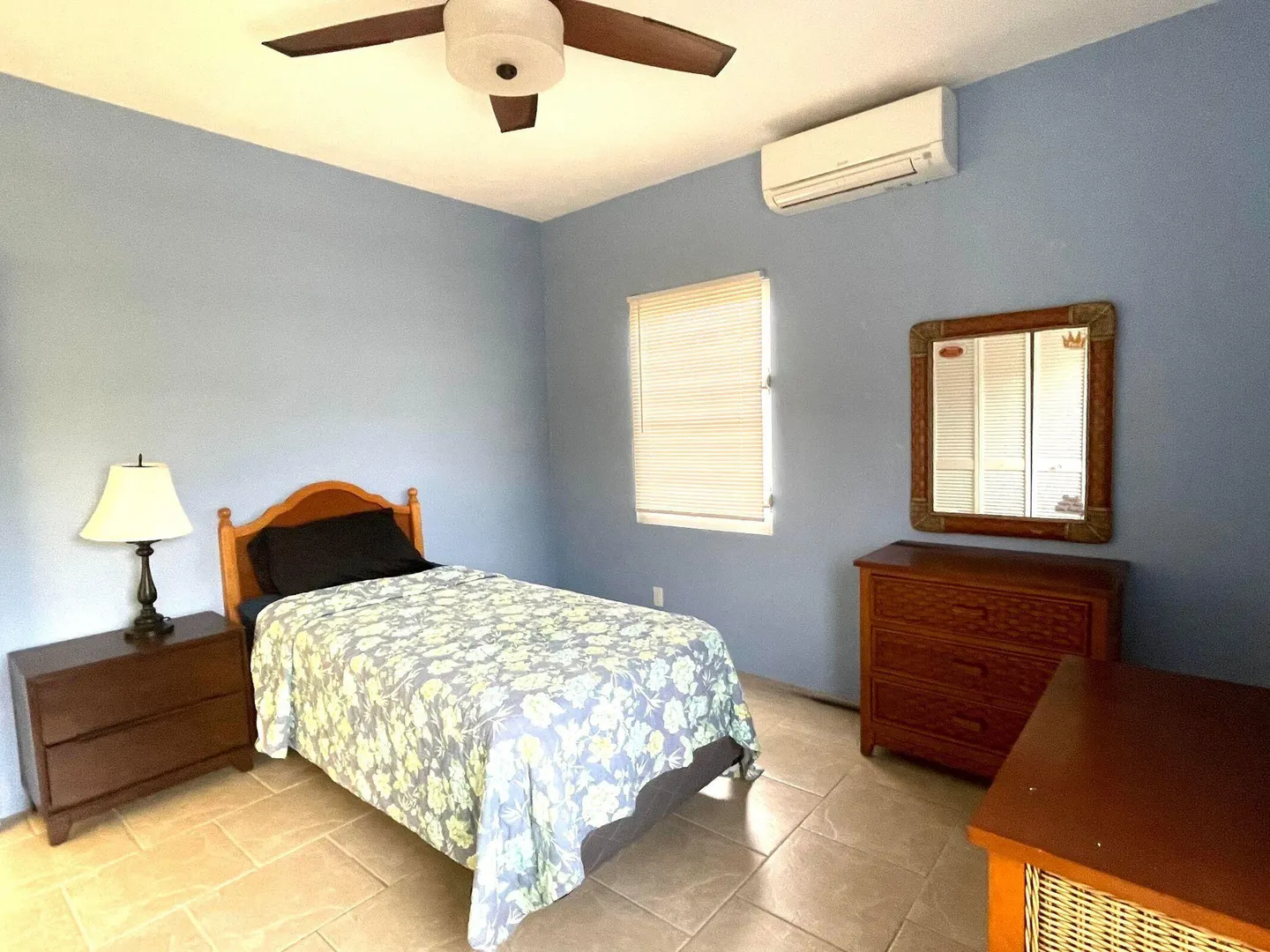 Spacious three bedroom three bath unit on upper level of duplex features a large bright bonus space perfect for use as a den or game room. The home features a roomy deck and refreshing swimming pool, and has a bonus rooftop terrace where you can take in the Buck Island view. Beautiful finishes throughout the home, fans and split AC units in every room. Tenant responsible for electric, internet and cable. Landlord provides landscaping and pest control.