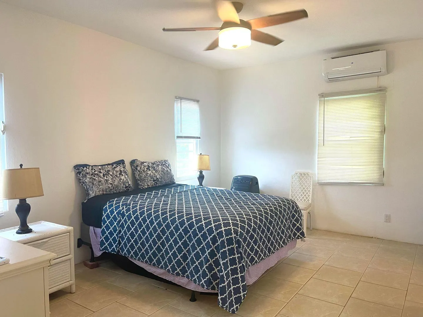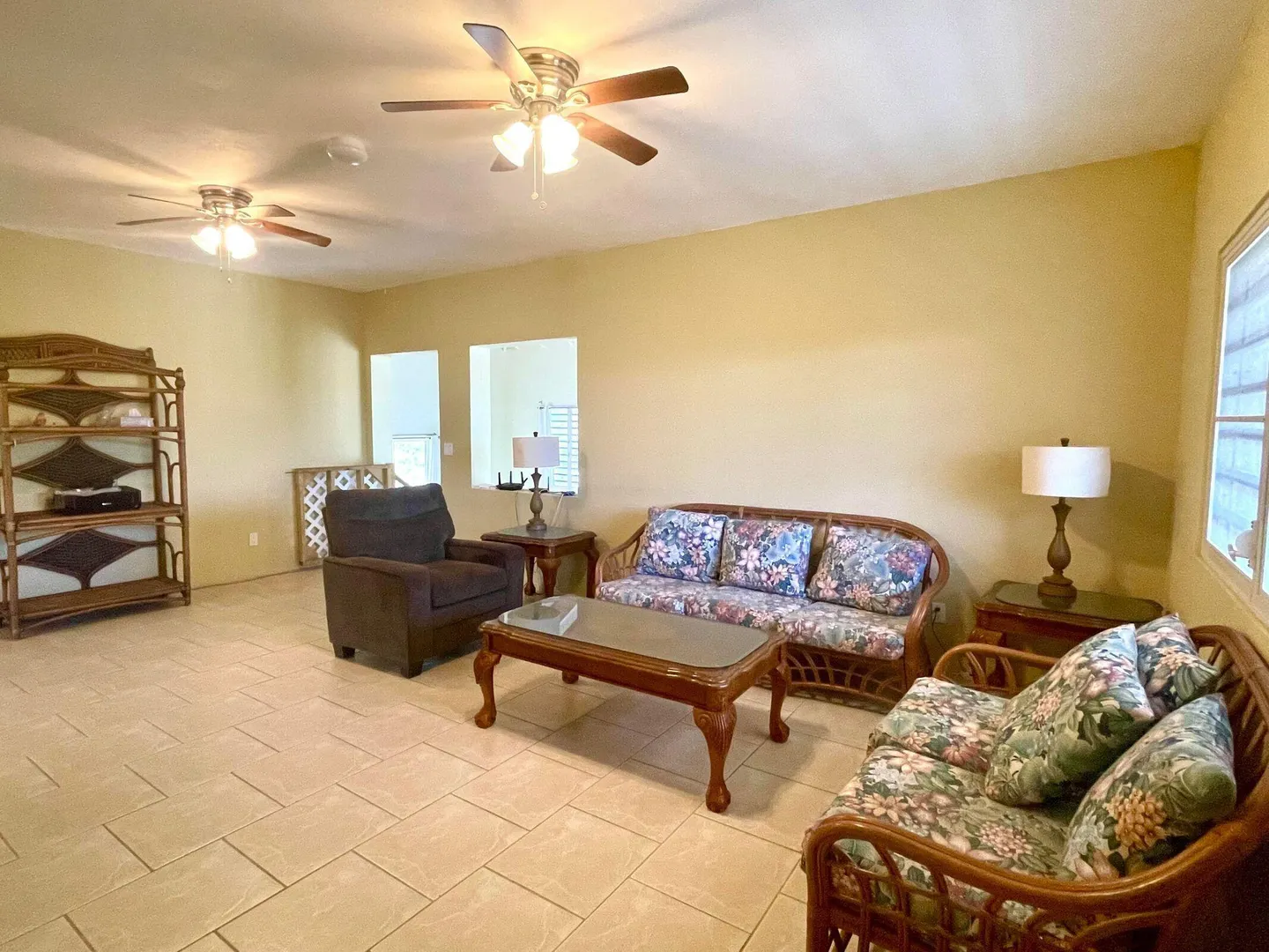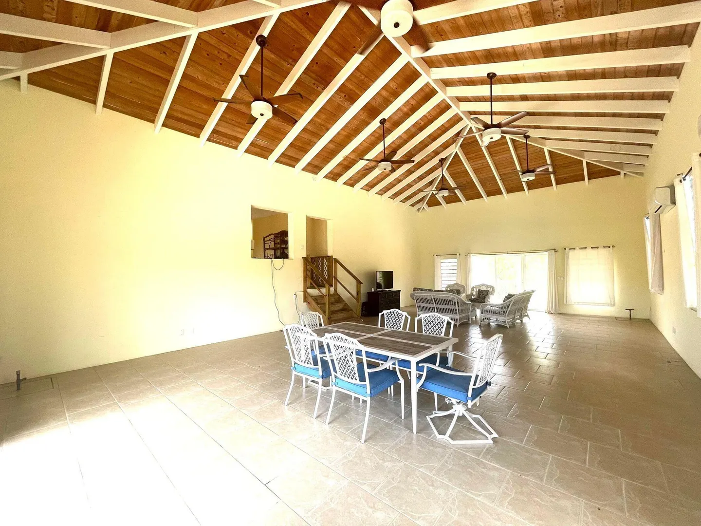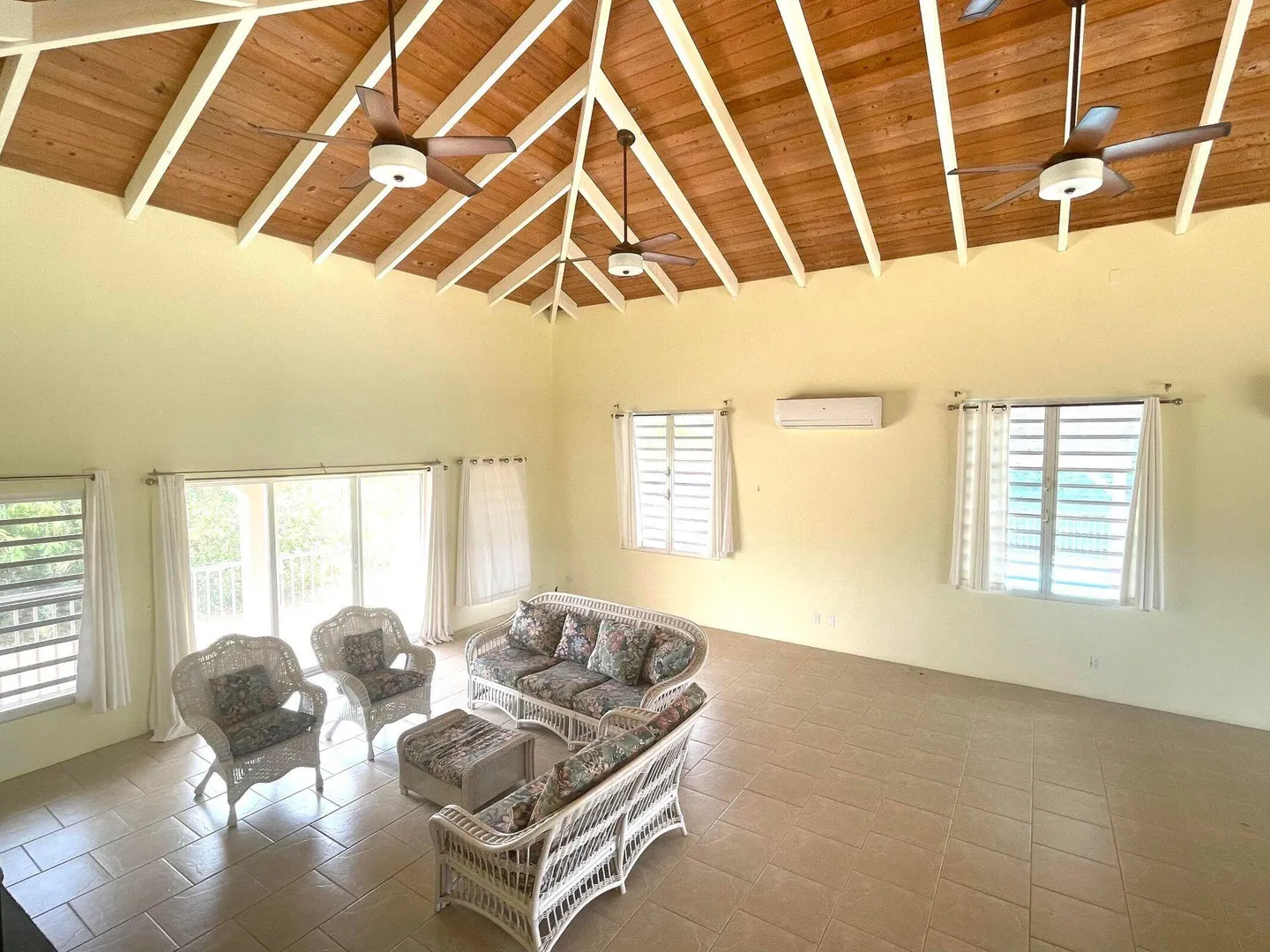 Spacious three bedroom three bath unit on upper level of duplex features a large bright bonus space perfect for use as a den or game room. The home features a roomy deck and refreshing swimming pool, and has a bonus rooftop terrace where you can take in the Buck Island view. Beautiful finishes throughout the home, fans and split AC units in every room. Tenant responsible for electric, internet and cable. Landlord provides landscaping and pest control.