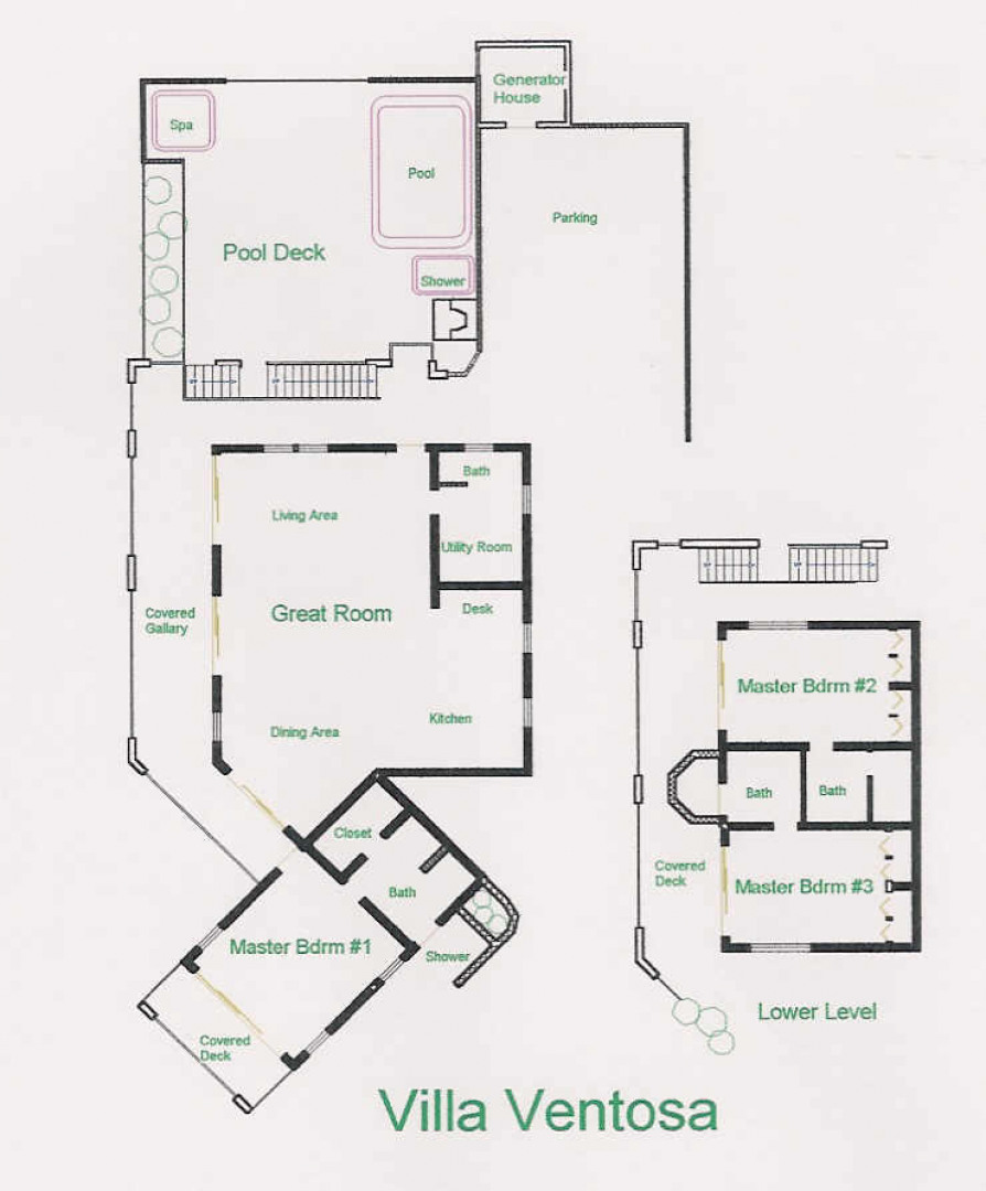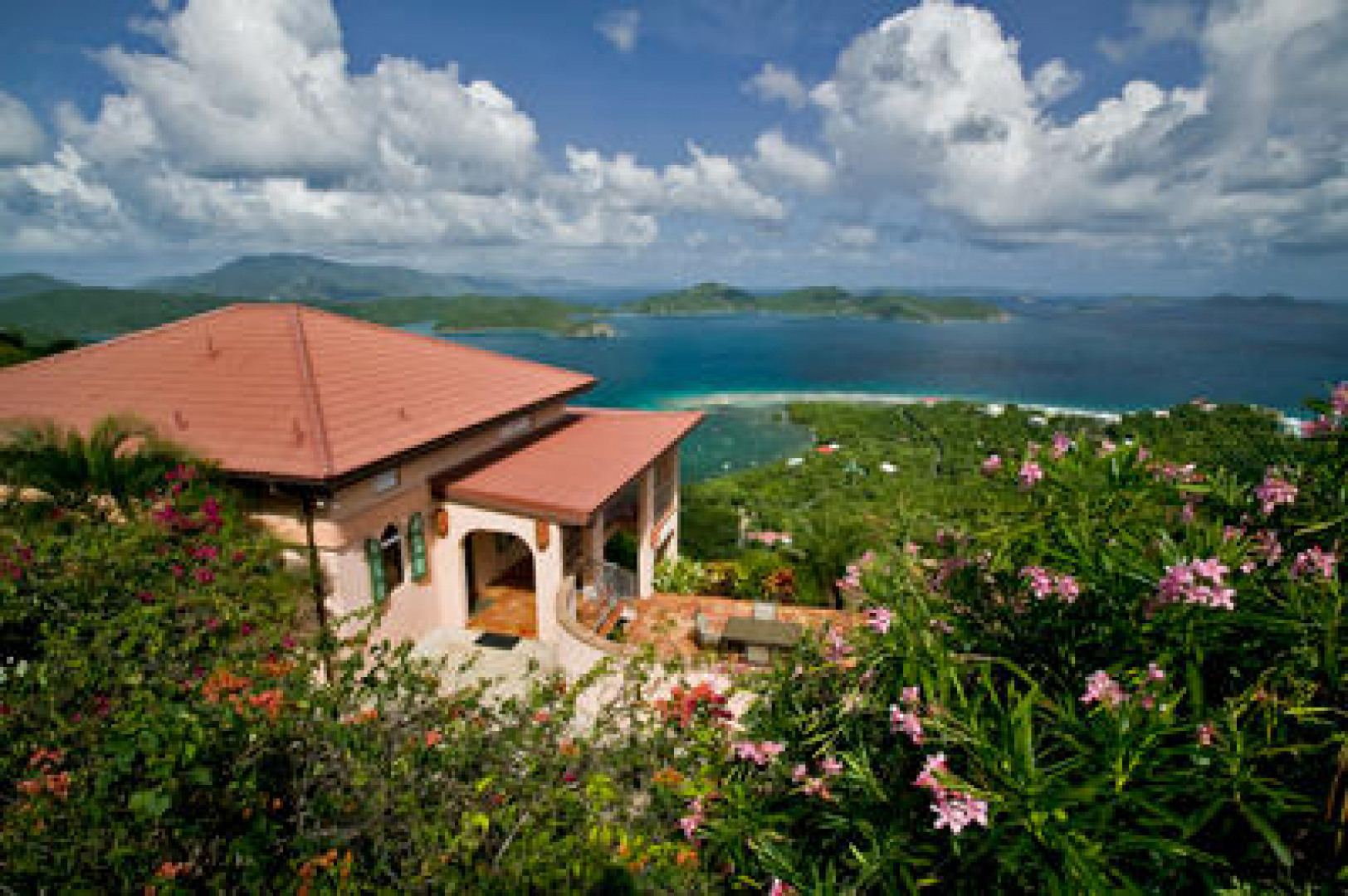 VERY MOTIVATED, A MUST SEE!! ''VILLA VENTOSA'' has absolutely mesmerizing water views to the British Virgin Islands and beyond! Set high on a lush breezey hillside near Virgin Islands National Park lands, the pristine privacy is perfect and yet it is just minutes from Coral Bay shops, restaurants and boat harbor. This newer, well maintained, masonry, Mediterranean inspired villa is extremely well built and custom designed to take advantage of the views and tradewinds with every luxury amenity for owners' and guests' comfort. It has 3 king air conditioned bedroom suites plus an open great room and gourmet kitchen which features Bosch appliances beautiful Island stone work, unique coral stone walls, tile floors, custom mahogany cabinetry and granite counters very elegant low maintenance.The exquisite swimming pool has a large sun deck plus spa and there are covered galleries for shade and dining. Excellent rental history with great income. All committed rentals shall be honored by Buyer. Buyer and Seller to split cost of Stamp Tax evenly. Buyer to cooperate with documentation if Seller contemplates a 1031 Tax Free Exchange.