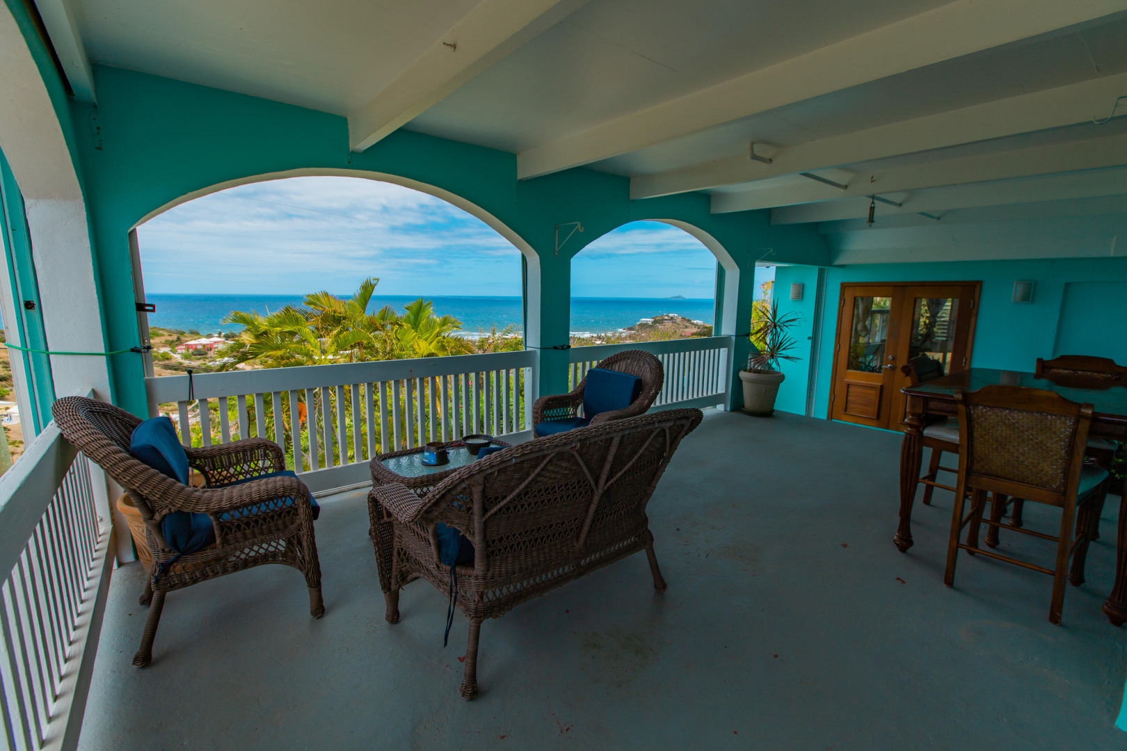 This Caribbean oasis nestled in the hillside of Judith's Fancy estate sits on 0.81 acres and offers stunning views in every direction. Watch the sun rise over Buck Island as you enjoy your morning coffee or sit poolside in the evenings as the sun sets over Salt River. Ample outdoor spaces and large rooms make this a wonderful home for entertaining. The expansive kitchen features two freezers, two refrigerators, two dishwashers, a large gas range, breakfast room and an adjacent wet bar perfect for parties or a large family. The spacious primary bedroom suite includes two walk in closets, a private sitting room and an ensuite bathroom. The main house is completed by three additional sizable bedrooms, a private office, laundry room with new washer and dryer and plenty of storage.