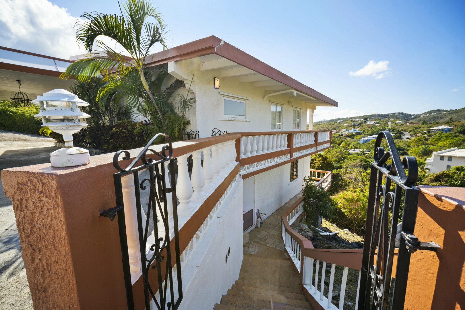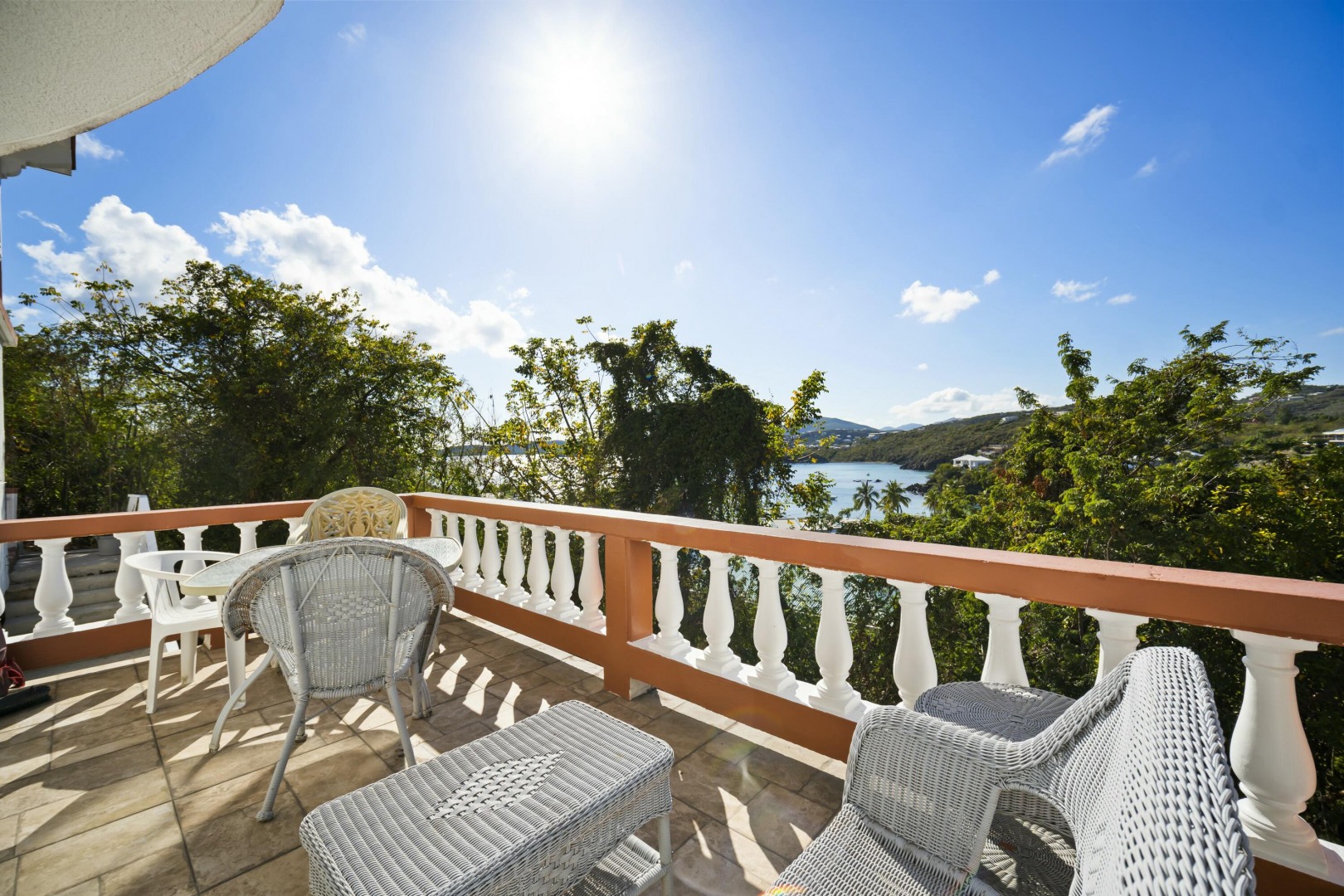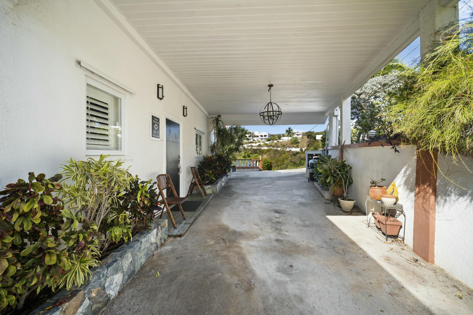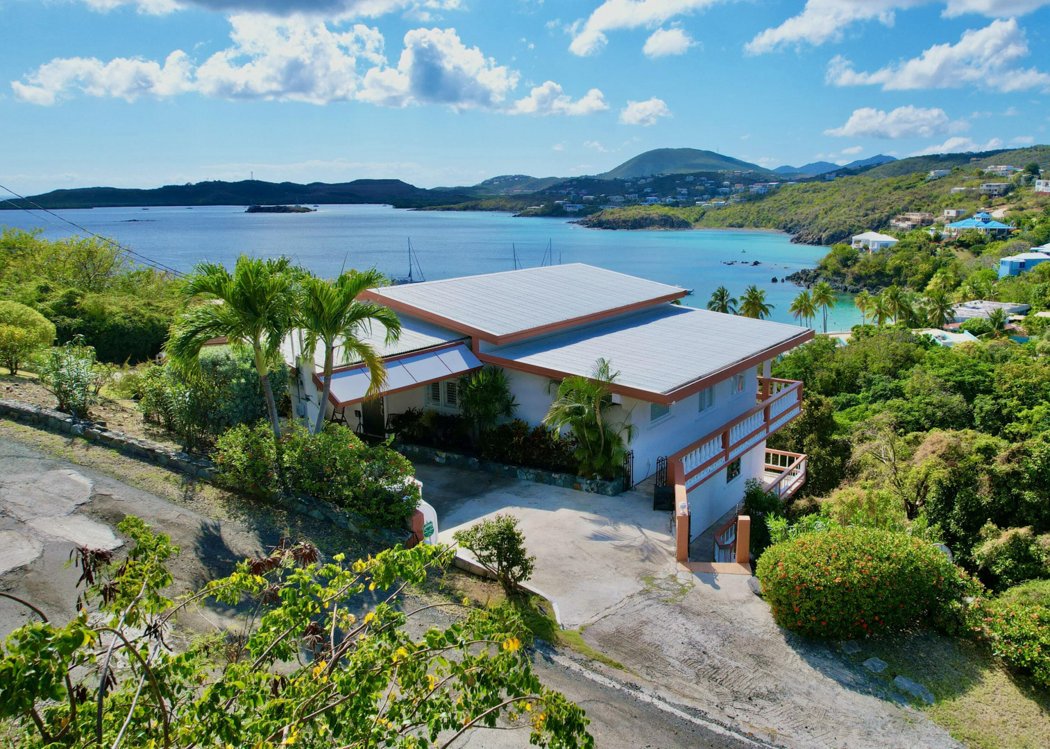A perfect blend of privacy, ocean views & natural beauty in this stunning 3Br-2 Bath with 1 Br-1Bath Apt. (separate metering) & studio. on .37 acres. East End, shops, restaurants, ferry, yacht club, & walk to Secret Harbour Beach. Conveyed turn-key furnished ($175K separate bill of sale tendered at closing) Smart home, wired, monitored security. Premium upgrades. Solid bluestone construction, reinforced roofing, 2 concrete storages, new elastomeric paint. Horseshoe driveway, Porte cochere, French doors, wrap decks, hurricane glass, steel shutters, plantation shutters. Vaulted ceiling, attic, custom cabinetry, Cambria quartz, toto toilets, 3 commercial HVAC, 2 satellites, 22K auto generator, solar conduit, 50,000 + cistern -water purification system.There are MANY extra features in this home. of superior quality. Please go to documents -Assets- Schedule ''A'' Survey Schedule'' B'' and house layouts - Schedule ''C''