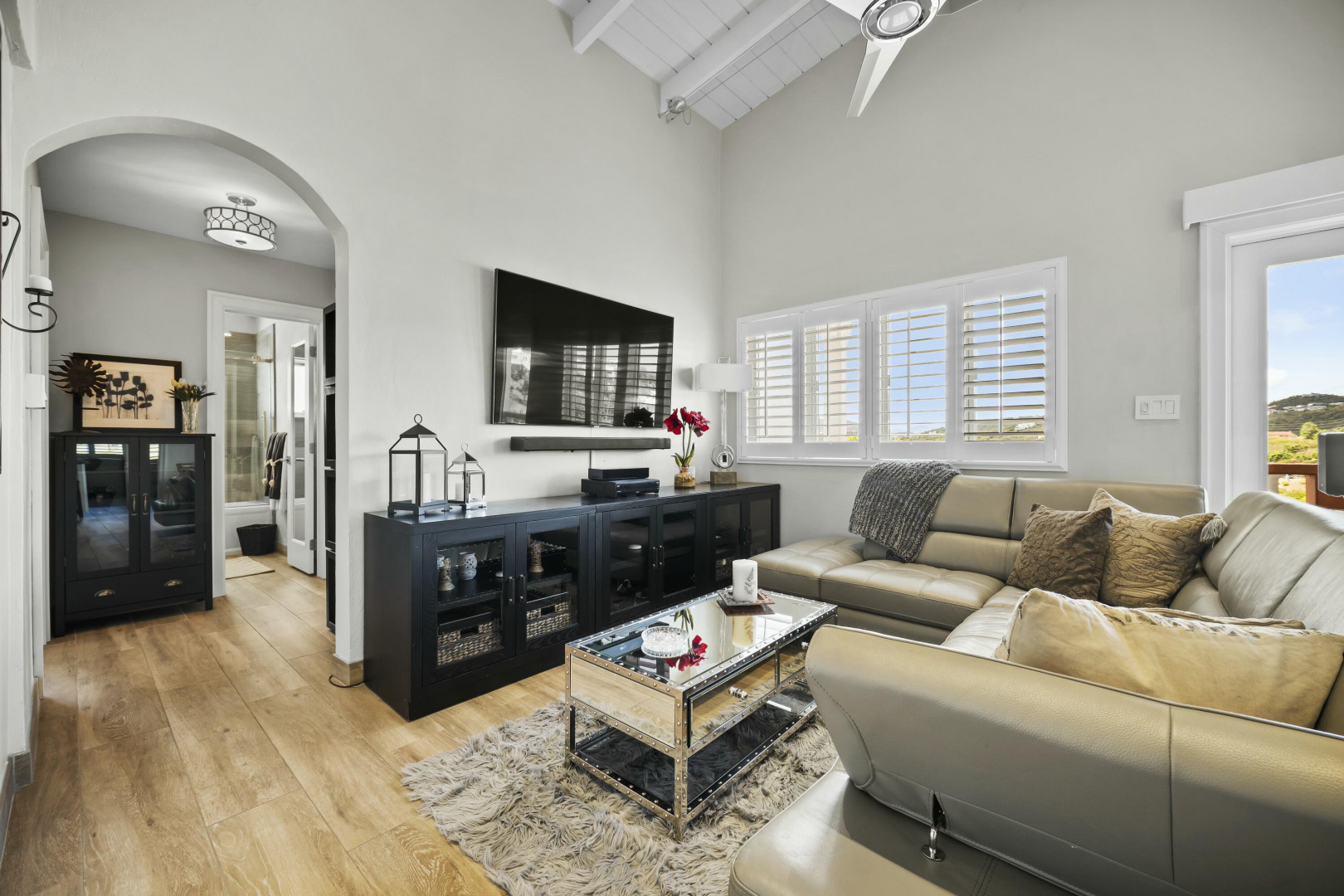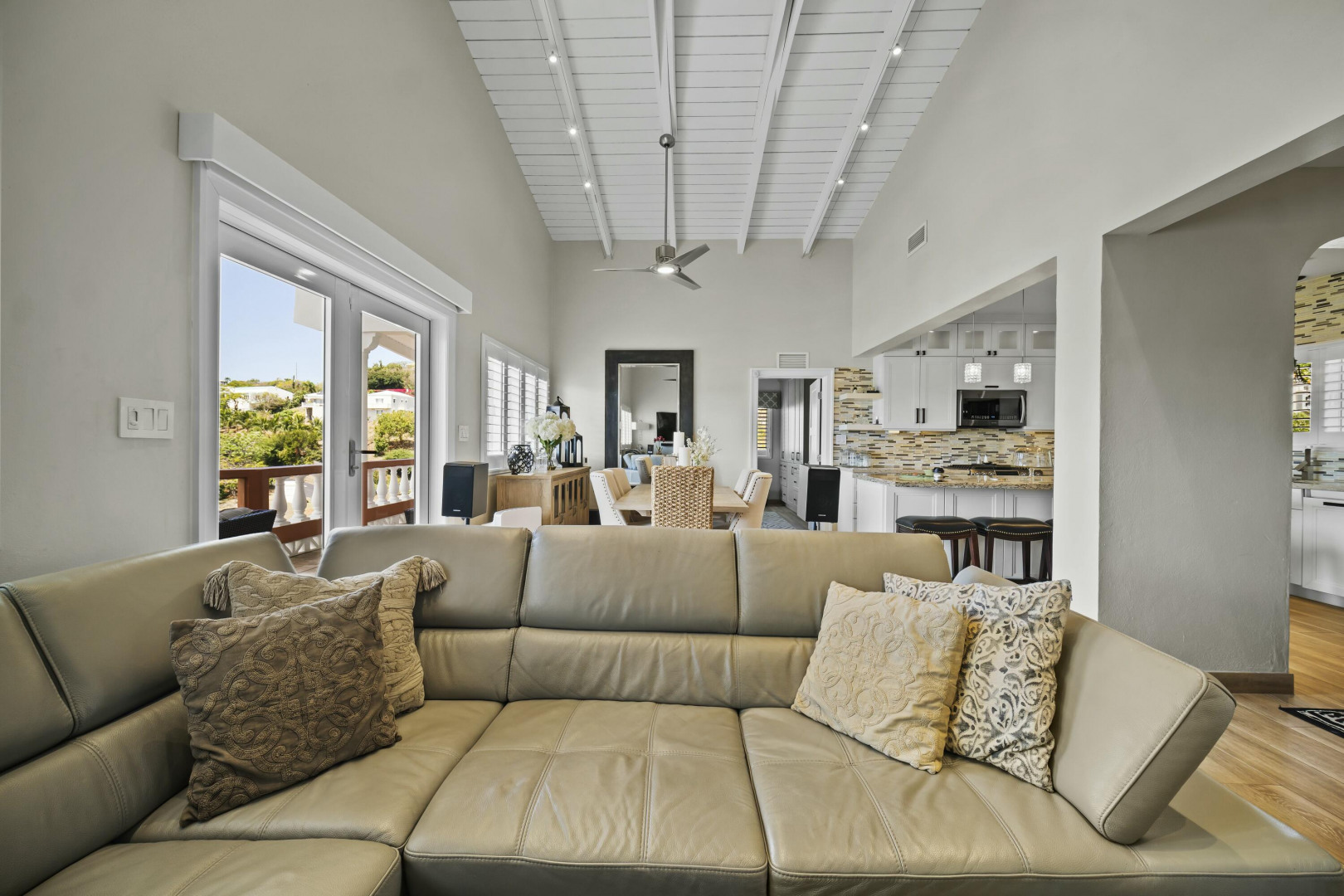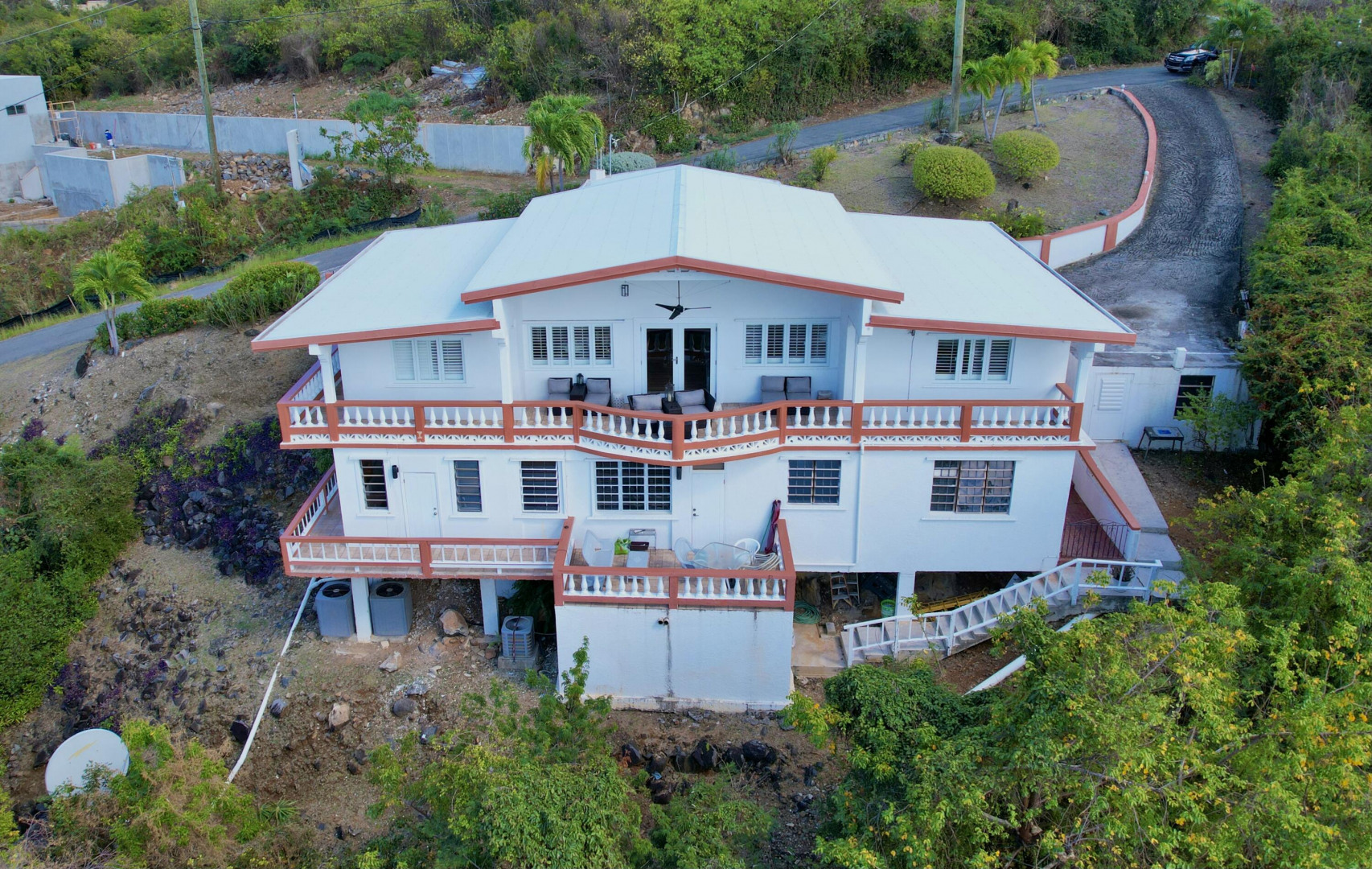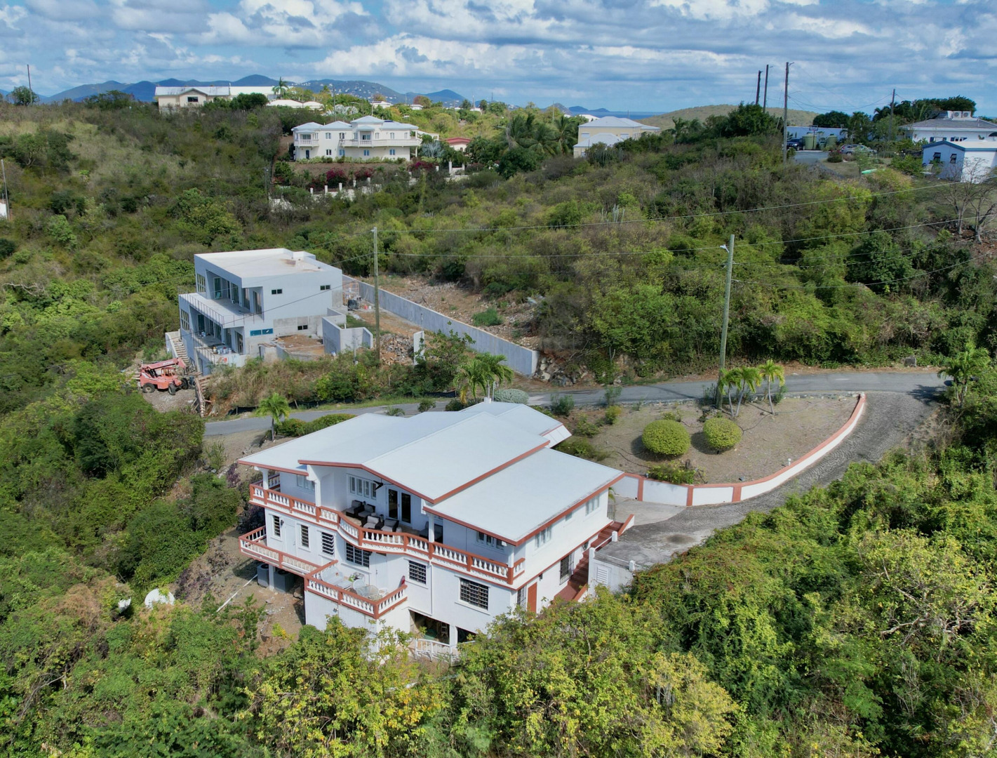 A perfect blend of privacy, ocean views & natural beauty in this stunning 3Br-2 Bath with 1 Br-1Bath Apt. (separate metering) & studio. on .37 acres. East End, shops, restaurants, ferry, yacht club, & walk to Secret Harbour Beach. Conveyed turn-key furnished ($175K separate bill of sale tendered at closing) Smart home, wired, monitored security. Premium upgrades. Solid bluestone construction, reinforced roofing, 2 concrete storages, new elastomeric paint. Horseshoe driveway, Porte cochere, French doors, wrap decks, hurricane glass, steel shutters, plantation shutters. Vaulted ceiling, attic, custom cabinetry, Cambria quartz, toto toilets, 3 commercial HVAC, 2 satellites, 22K auto generator, solar conduit, 50,000 + cistern -water purification system.There are MANY extra features in this home. of superior quality. Please go to documents -Assets- Schedule ''A'' Survey Schedule'' B'' and house layouts - Schedule ''C''