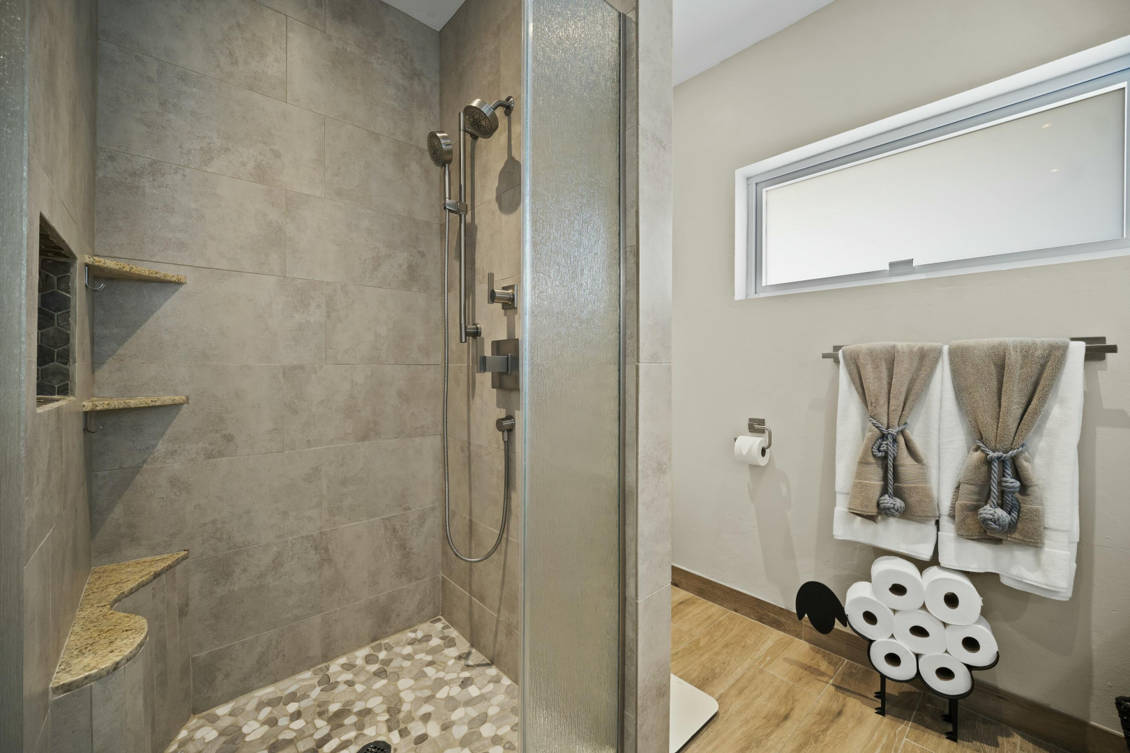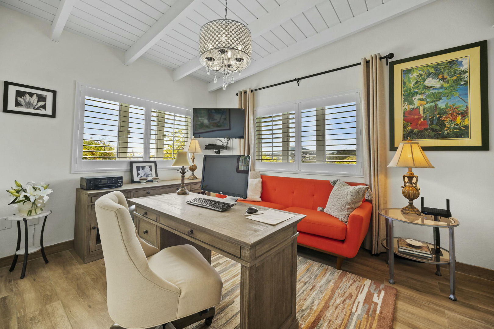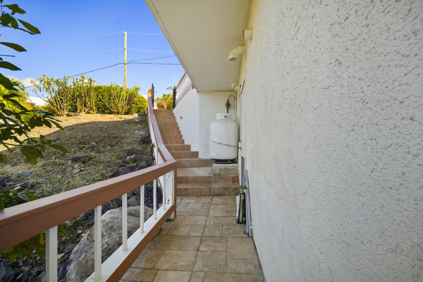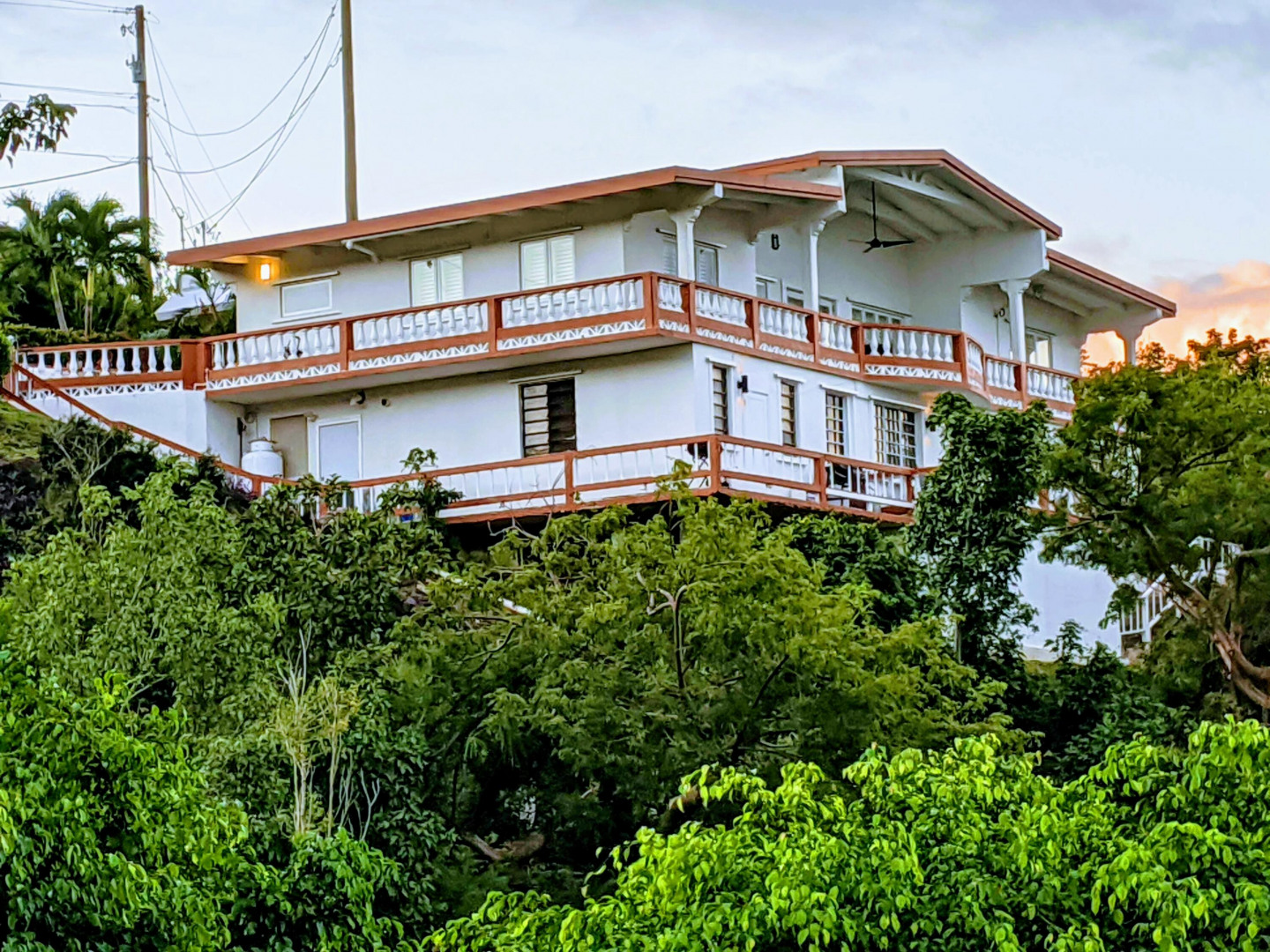 A perfect blend of privacy, ocean views & natural beauty in this stunning 3Br-2 Bath with 1 Br-1Bath Apt. (separate metering) & studio. on .37 acres. East End, shops, restaurants, ferry, yacht club, & walk to Secret Harbour Beach. Conveyed turn-key furnished ($175K separate bill of sale tendered at closing) Smart home, wired, monitored security. Premium upgrades. Solid bluestone construction, reinforced roofing, 2 concrete storages, new elastomeric paint. Horseshoe driveway, Porte cochere, French doors, wrap decks, hurricane glass, steel shutters, plantation shutters. Vaulted ceiling, attic, custom cabinetry, Cambria quartz, toto toilets, 3 commercial HVAC, 2 satellites, 22K auto generator, solar conduit, 50,000 + cistern -water purification system.There are MANY extra features in this home. of superior quality. Please go to documents -Assets- Schedule ''A'' Survey Schedule'' B'' and house layouts - Schedule ''C''