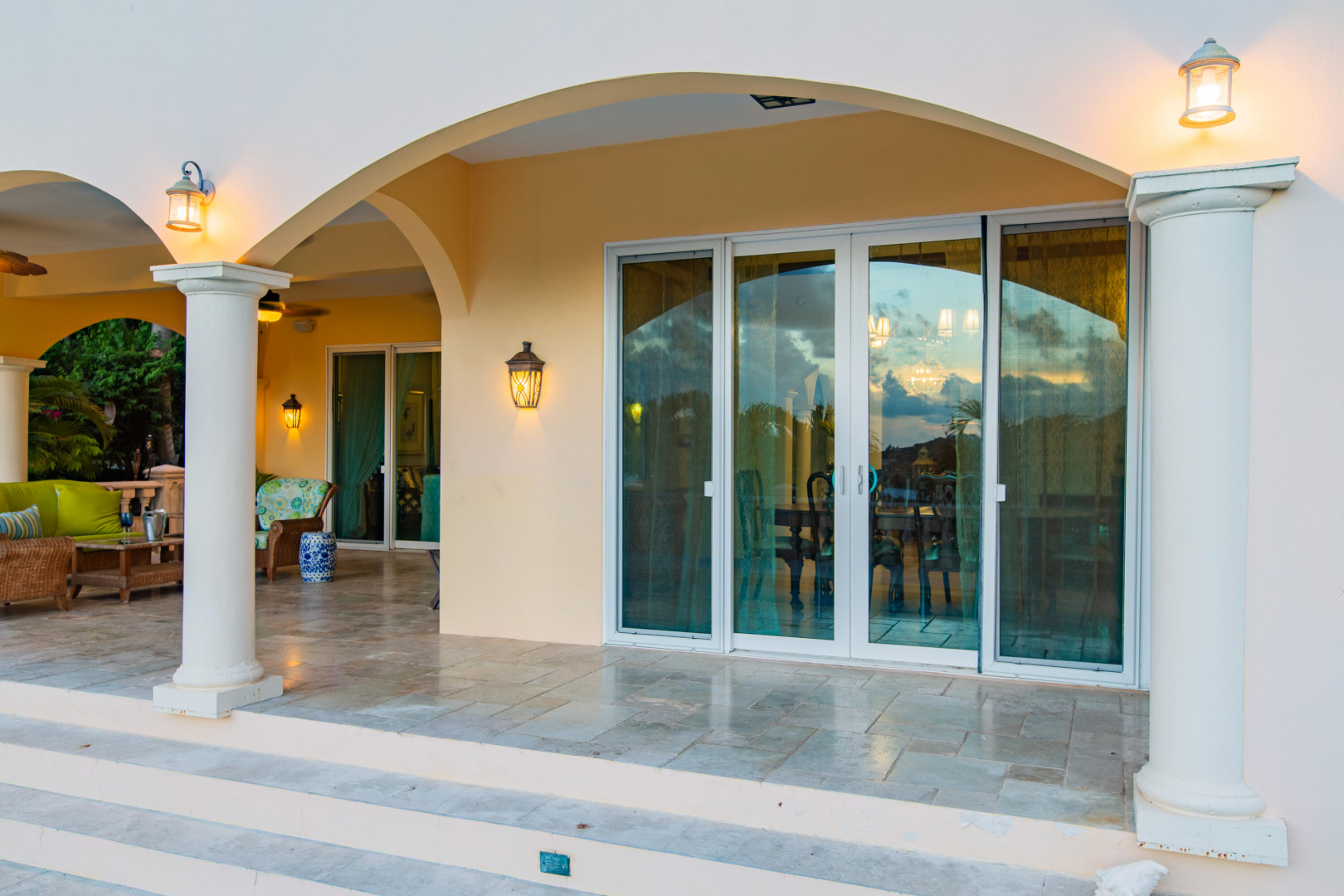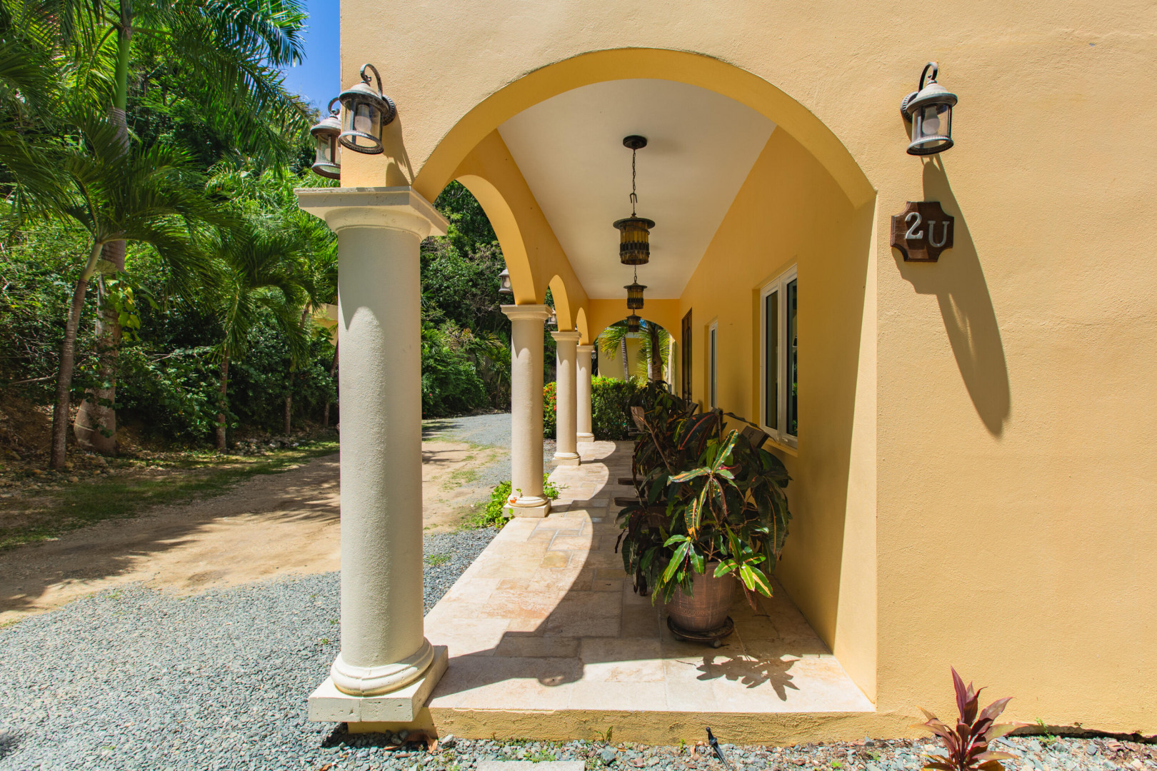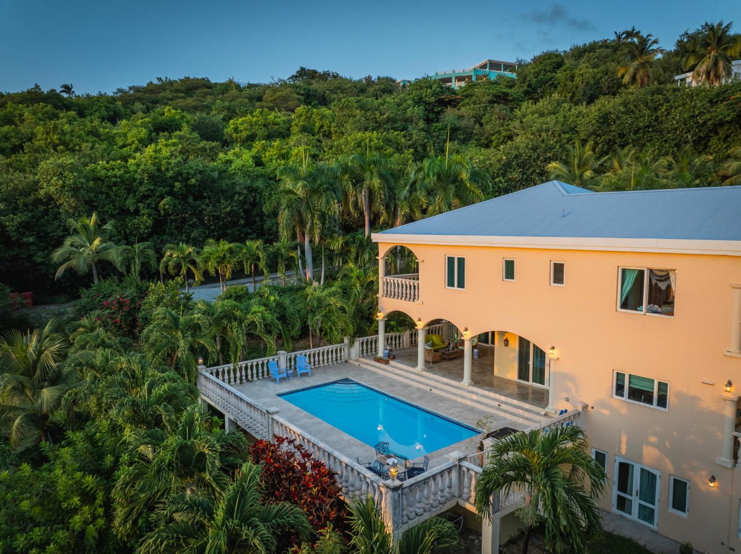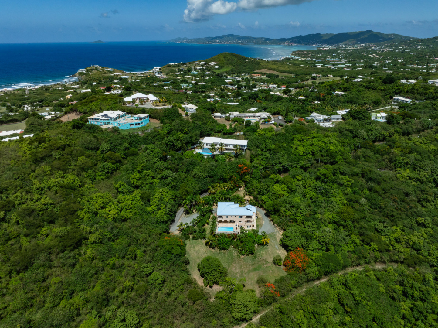 Tucked in the secluded northwest corner of Judith's Fancy overlooking Salt River Bay, sits this meticulously designed and maintained, furnished 3 bed, 3 bath (and 2 half baths) Caribbean Villa with one bed, one bath apartment and a climate controlled two-car garage. Set on just over an acre and filled with palm and fruit trees. This residence is thoughtfully planned and executed with no detail left to chance. Traditional in size and layout, the home has a formal dining room and sitting room, foyer, Media Room & office (both could become bedrooms), laundry room, 2 upstairs patios; a 2,200 sq ft pool deck, crown moulding throughout and ample storage. It is an entertaining home complete with a chef's kitchen, granite countertops, state-of-the-art sound system piped throughout the home.There is only one other home in this secluded part of the gated Judith's Fancy community, making the home private, and the sounds of birds chirping your only distraction. As you drive onto the property you are greeted by Royal Palms flanking the driveway. Caribbean style planters' chairs sit on the patio. Dramatic arches as you enter the foyer and formal sitting room, the gorgeously decorated Blue Room. The furnishings are so beautiful you may be distracted from the sea views outside the impact resistant sliders that open onto a bright and comfy seating area above the pool, kept cool by 4 ceiling fans. The formal dining room has seating for 8 and easy access to the kitchen through a pass-through arch. A gorgeous glass sideboard and antique dresser house all your table linens and serving pieces. Your dinner guests seated on the east side of the table, will see the twinkling lights of Salt River and Clairmont while they dine.