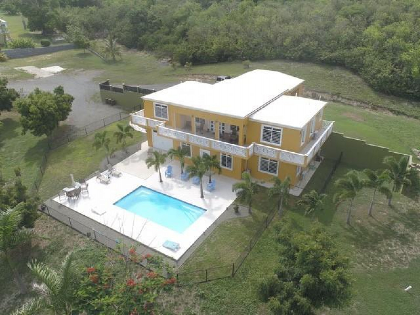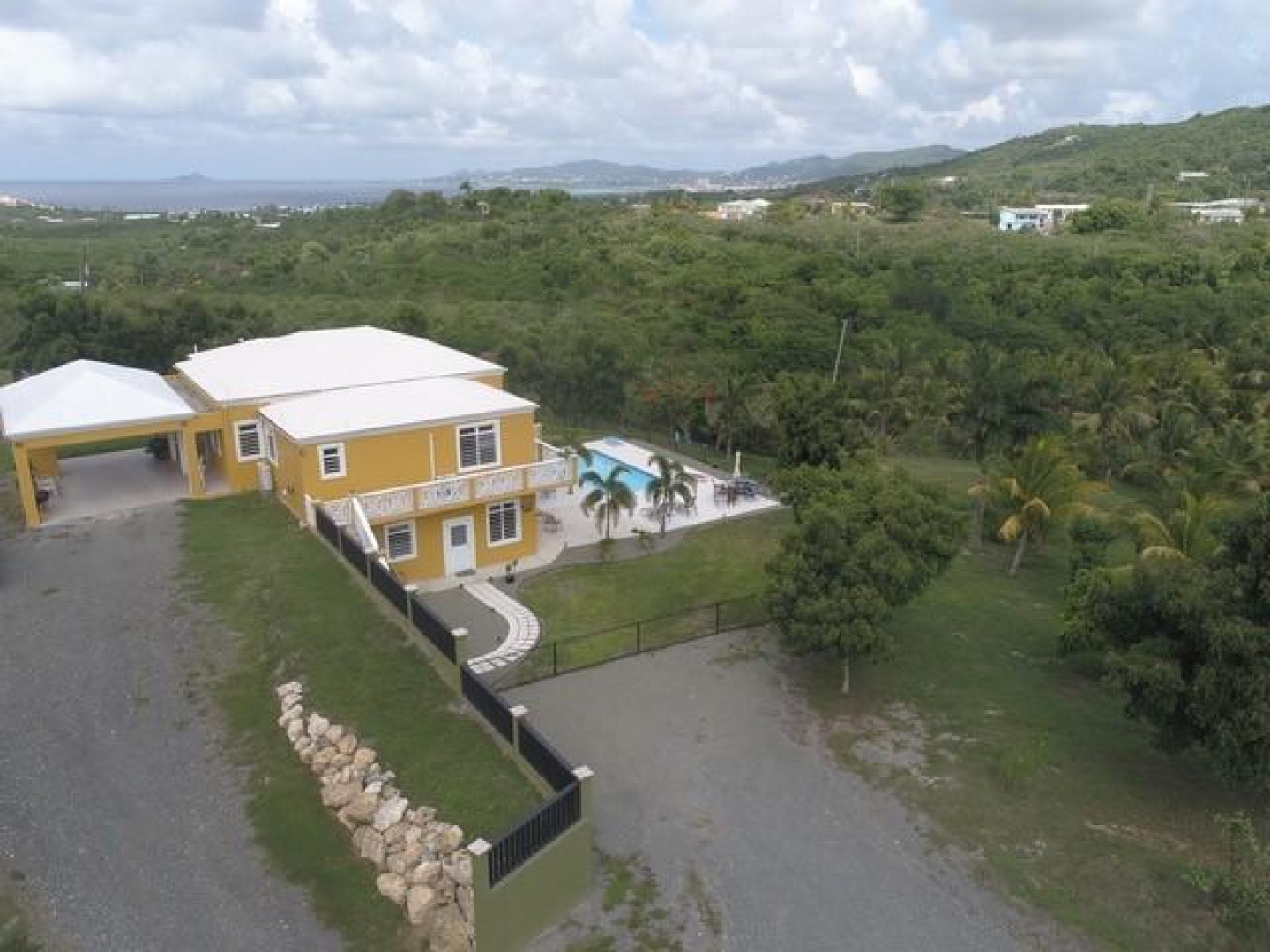 The best of everything. Built new in 2016 and of the finest materials.Living area upstairs has great room and custom kitchen, large master bedroom with gorgeous views of Buck Island and master bath. Guest room and bath, and lovely deck overlooking pool and stunning views. Additional game room with private full bath and full apartment lower level. Beautifully maintained property with fruit trees and 2 acres of privacy. Automatic 22K propane generator. 250 bulk tank, two 20,000 gallon cisterns make this the perfect island home. Sold furnished and Buyer pays stamp tax.