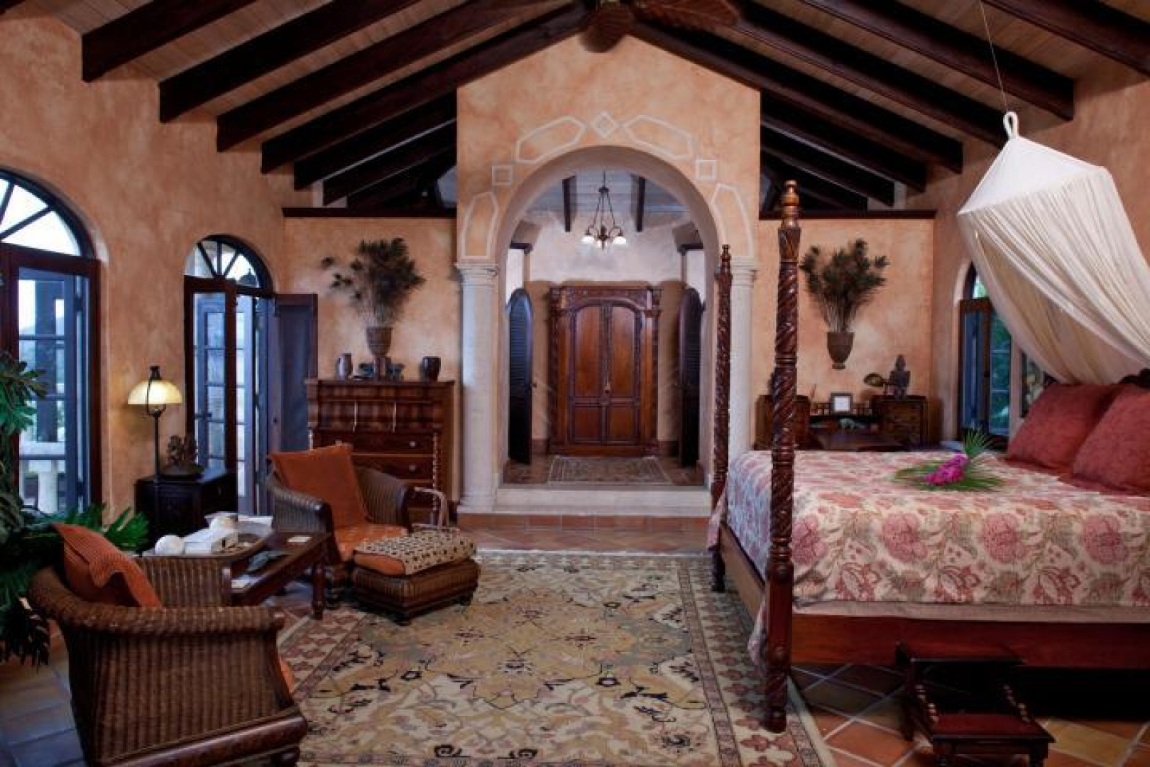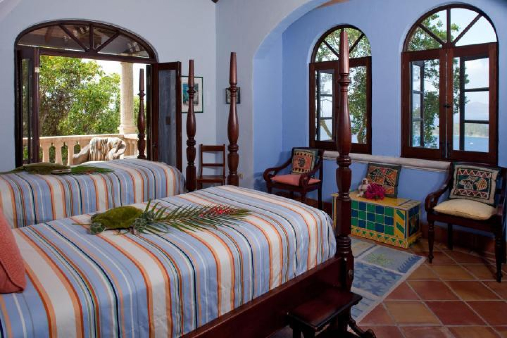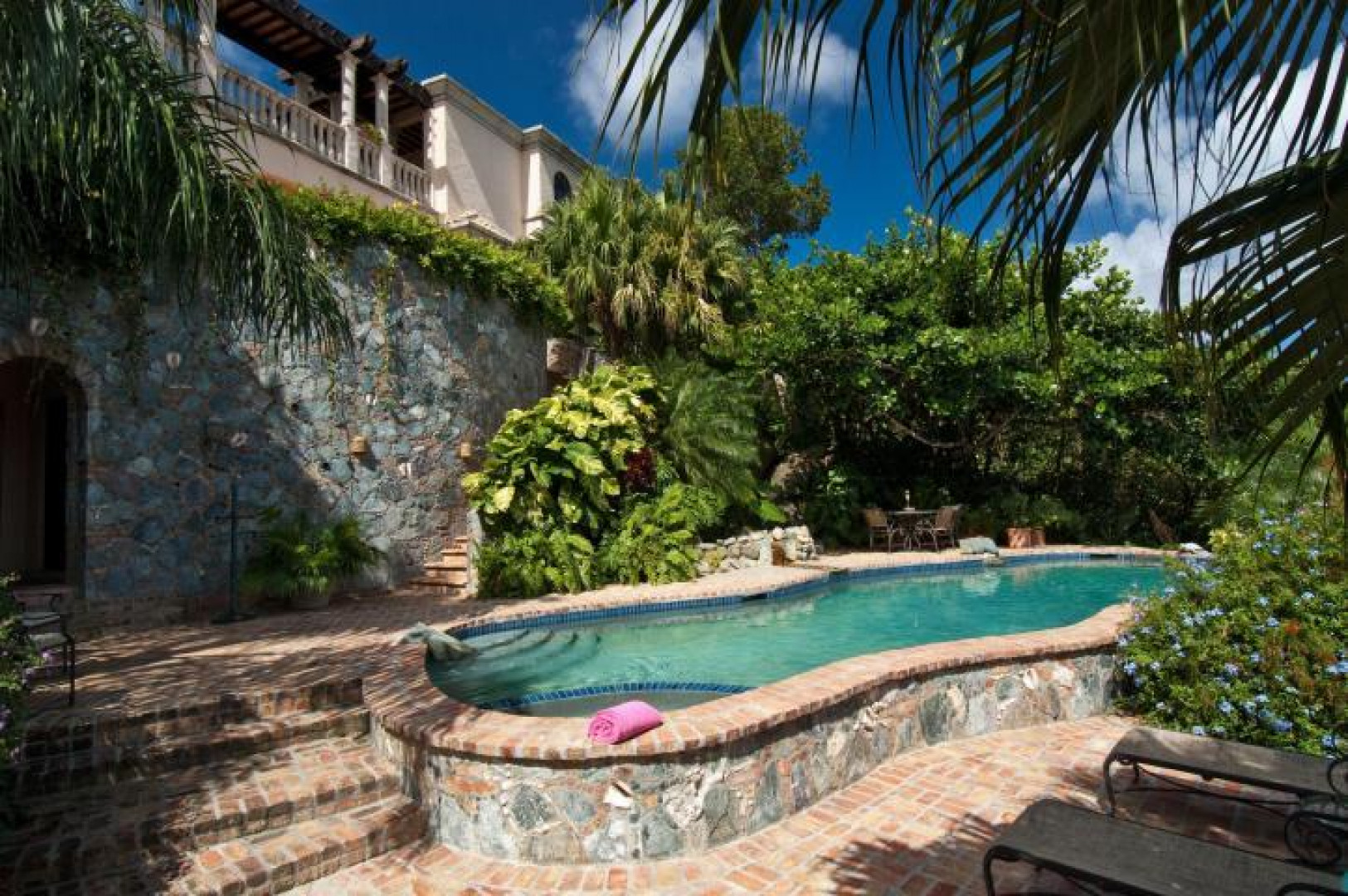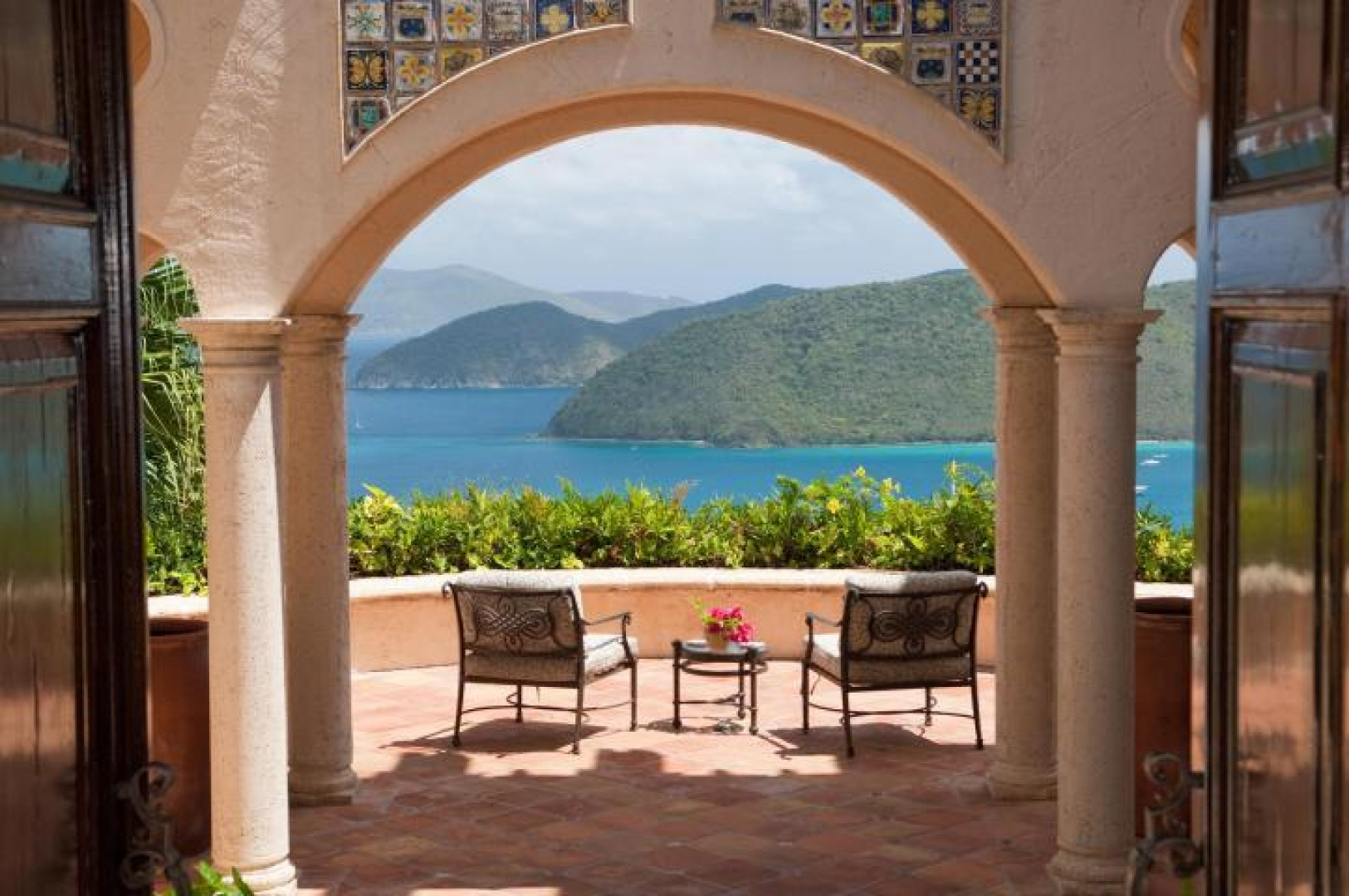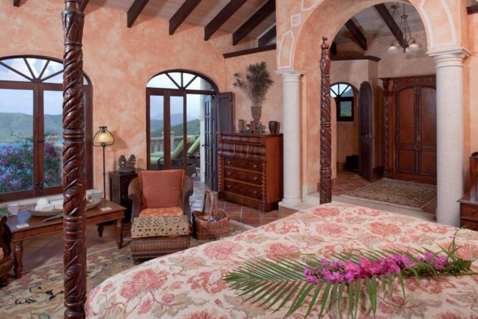 Generations of old Danish sugar mill plantation ruins great you as you enter the private estate enclave known as Estate Catherneberg within the Naional Park and overlooking St. John's north shore. Hakuna Matata presents a dramatic entrance with it's paved circular driveway with custom gates set in stone pillars surrounded by lush tropical landscaping. Constructed with incredible attention to detail & furnished with treasures from around the world.Enter this private estate through custom double mahogany 13' entry doors. On the first main level (handicap accessible) is one of four bedrooms with ensuite and private terrace. Heading back to the main entry the 2 story courtyard welcomes you with columns and arches that frame an incredible 180 degree view. Italian tile accents & terra cotta til& coral stone benches & stairs, tropical flowers & vines complete this dramatic entrance. Close by is a unique artist painted powder room. Across the courtyard, double mahogany French doors lead into the great room, a large open space with beamed ceilings & palm frond fans (fans & lights are dual controlled with speed & dimmers) Total comfort is assured with the two love seats and chairs & a table made from an antique Moroccan door. Side tables & dining table with 8 chairs are all made from exotic hardwood from Africa that was reclaimed from old railroad ties which were milled and made in to furniture. There's a built in mahogany entertainment center with cable TV, DVD, stereo & IPOD connection. The indoor dining area,along with the living room area walls have been enhanced by faux wall treatments done by professional artists. The entire room is surrounded by tall windows and 4 sets of French doors providing great tropical breezes and access to outdoor venues. An arched doorway leads to the gourmet kitchen with coral stone counters and custom mahogany cabinets and a large center island. Complete with top-of-the-line appliances including a Northland Commercial fridge & Viking 8 burner range & double oven & Viking dishwasher. From the kitchen you can access the fully equipped and spacious laundry room and a large supply cabinet. The back kitchen courtyard provides a primary point of ingress & egress for unloading supplies &/or groceries & deliveries. Also this courtyard has a BBQ grill & quiet sitting area & additional storage. Back though the kitchen another set of French doors lead to a large covered veranda with a dining table for 8. The ocean views through arches framed by columns & flowers can be enjoyed from this area. Back in the main courtyard entrance coral stone steps lead upstairs to another guest bedroom with ensuite and the master bedroom suite. The first room is a guest bedroom with a trellised porch & hanging adjustable porch swing. The private bath has an outdoor shower & hand painted tiles. Over the trellised walkway is the master suite,beautifully furnished with mahogany pieces from England & a majestic beamed ceiling. There's an exterior covered seating area with amazing ocean views & constant cooling breezes. Although each of the 4 bedrooms are air-conditioned you will seldom need to turn them on with this villa, where cooling tradewinds surround you year round. There's a a spacious his & hers bathroom with 2 vanity/sink areas, each area with it's own water closet and a large outdoor shower offers a 180 degree view. This master suite is completed with two walk-in closets. The lower level of this magnificent estate offers a custom designed and built spa/hot tub built with native natural stone from the property. There's a free form heated salt swimming pool with a baby area. The private pool deck is paved with old Chicago bricks and surrounded by lush tropical landscaping with many species of indigenous plants and incredible ocean views. Also, on this level is another spacious guest bedroom with ensuite & an outdoor shower and an incredible waterfall with a goldfish pond. The entire 1.44 acre property is fully fenced (hided by the lush landscaping and native stones) comes complete with a 40KW diesel generator with a ATS, solar hot water,