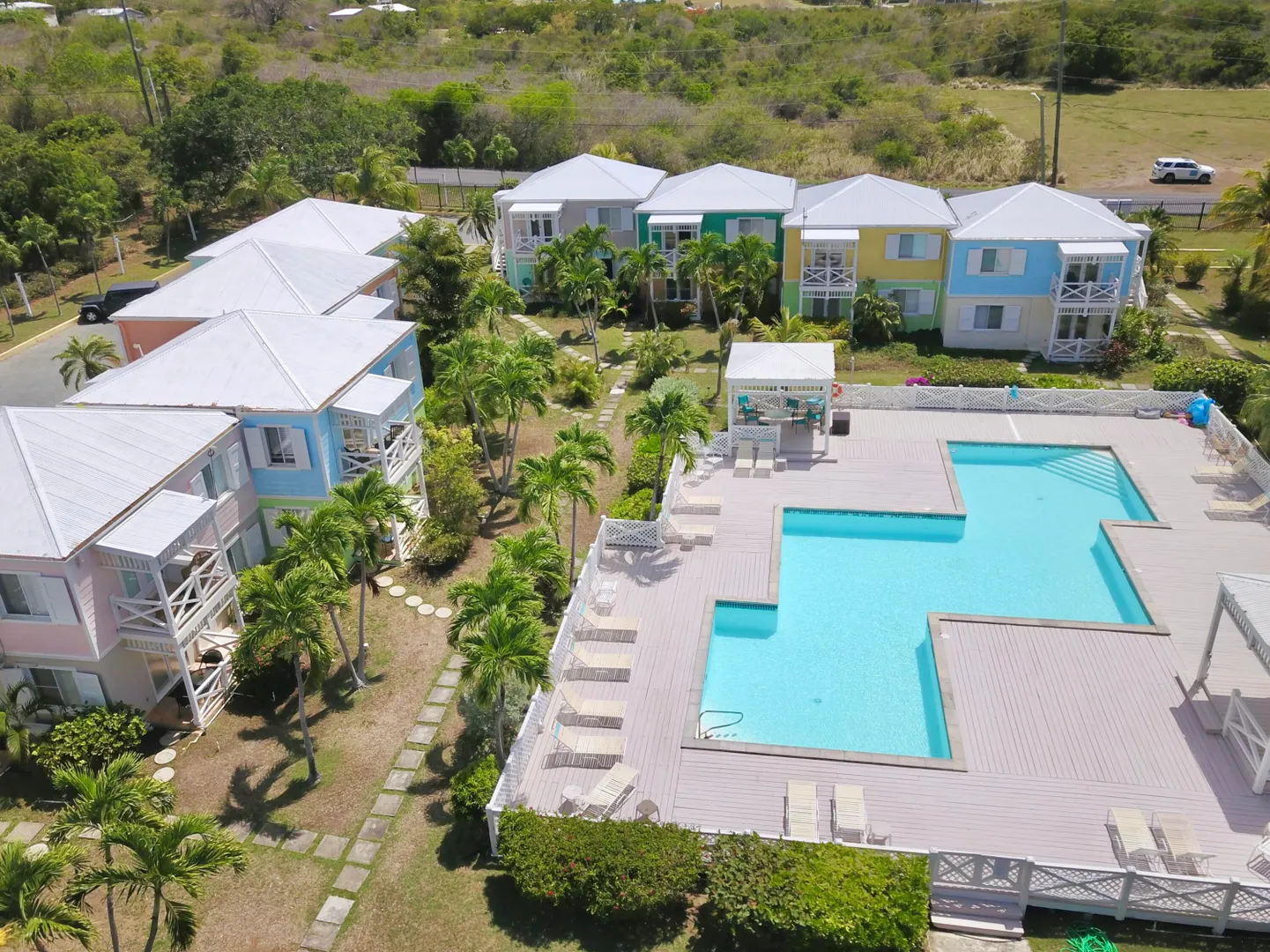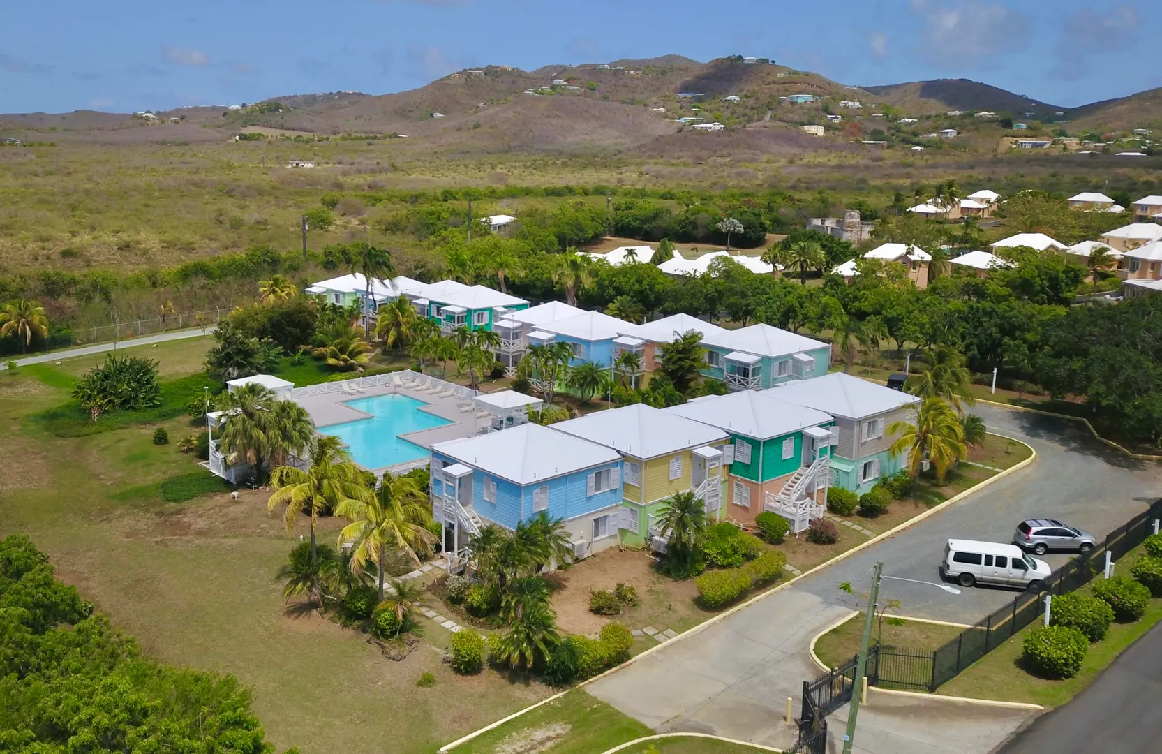 This charming upper level condo features an open floor plan and vaulted ceilings that create a spacious and bright space. French doors open to a cozy patio where you can take in the morning sunrise, and enjoy the amazing view and breezes. Amenities include keyless entry, wood floors, gorgeous custom mahogany countertop, split AC, tankless hot water and new ceiling fans. Within walking distance is the Southgate Coastal Reserve and Chenay Bay where you can spend the day enjoying the beach and beautiful Caribbean Sea. This turnkey property is minutes from downtown Christiansted and will make the perfect island getaway or investment property. Roof was replaced new in 2022, pool redone and switched to salt water in 2023, patio deck replaced new in 2024.