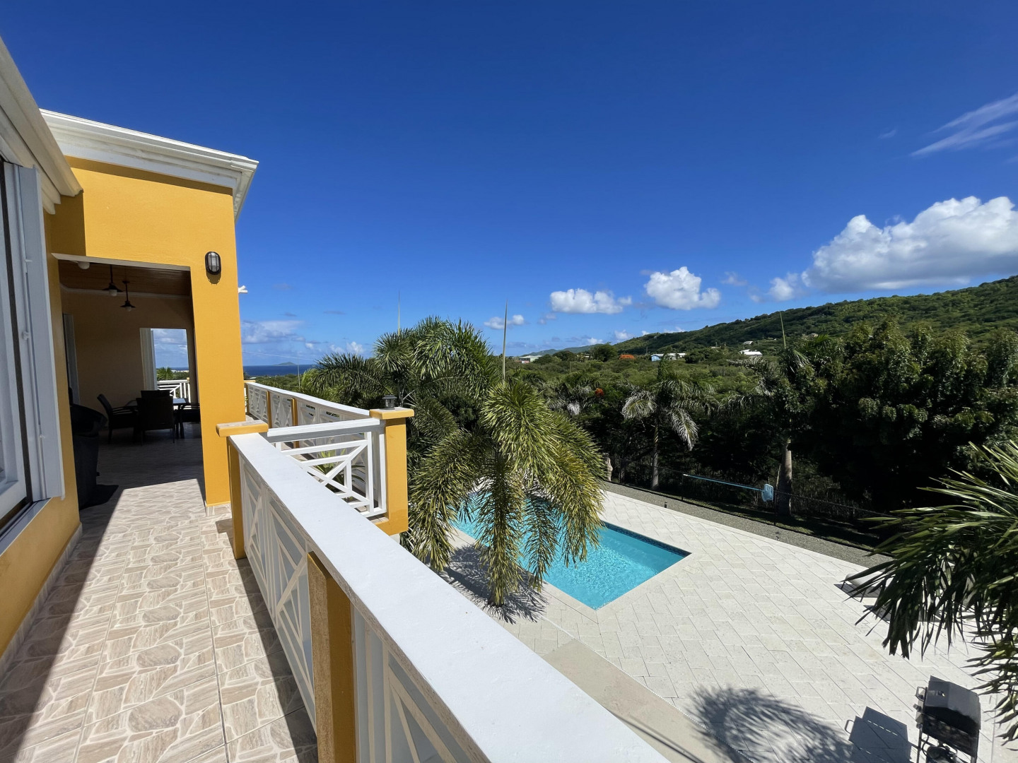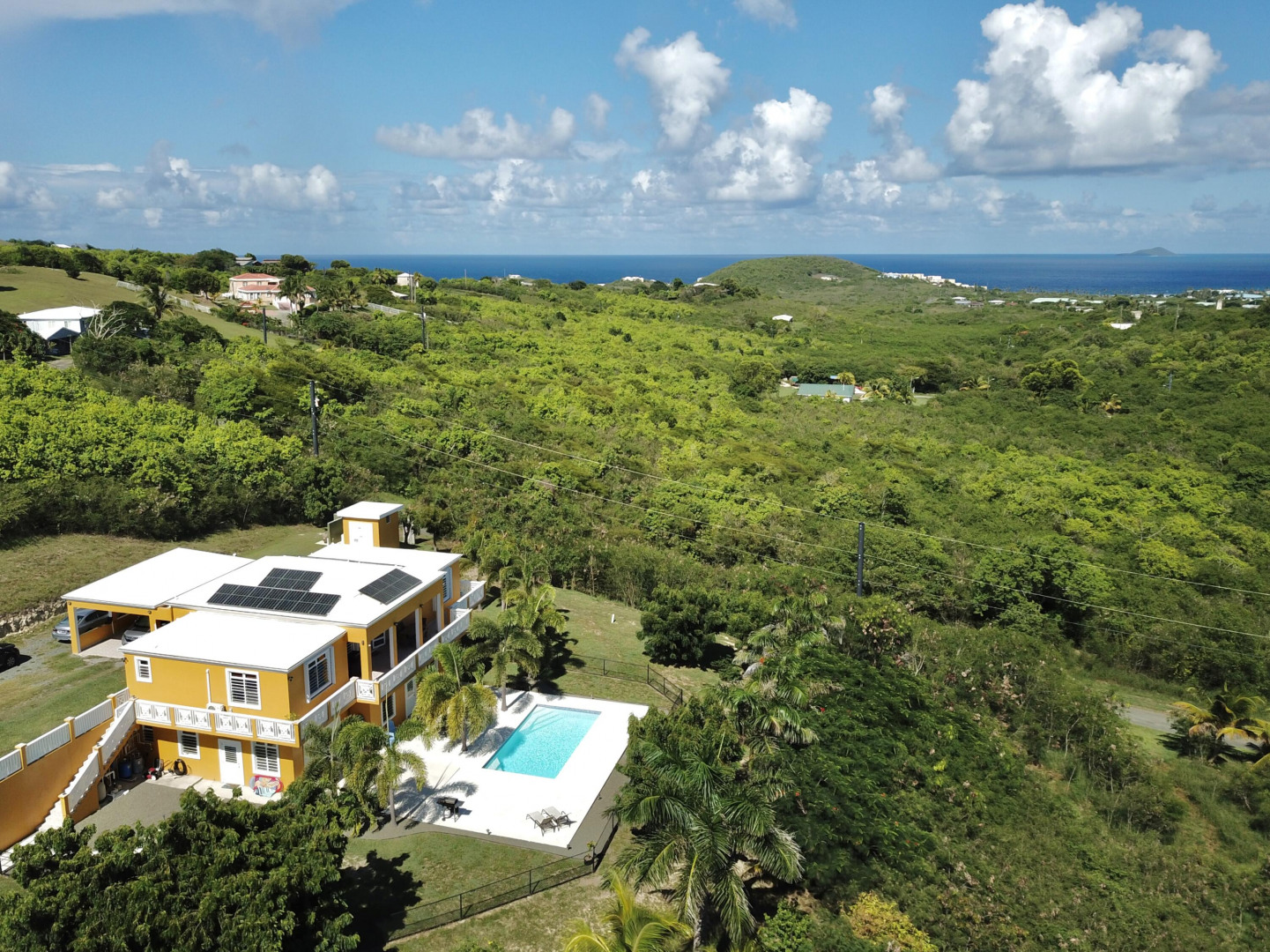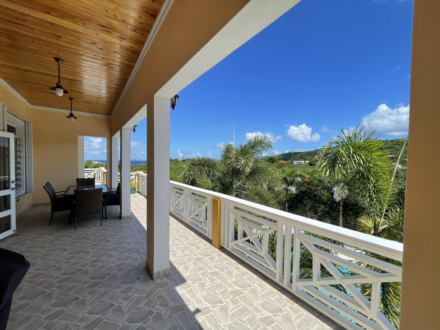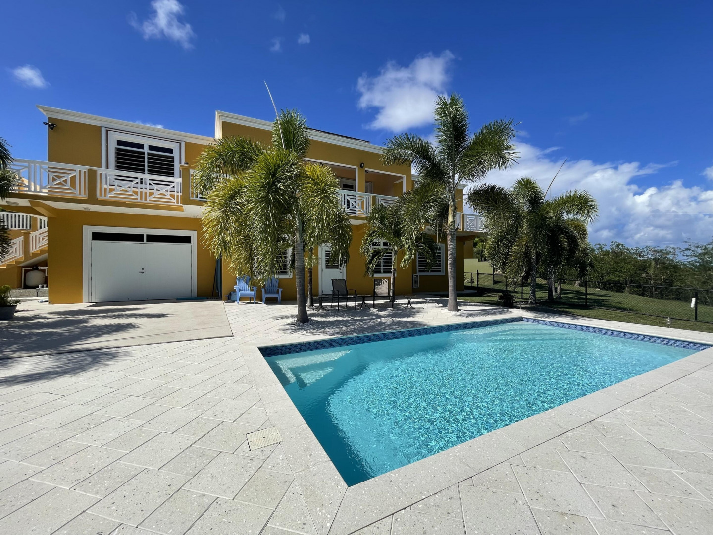 TURN-KEY PROPERTY! Nestled along a quiet hillside, this meticulously maintained home has a lot of great features! The upstairs consists of a spacious open floor plan with vaulted ceilings, two bedrooms and two bathrooms. Open the double doors to a wraparound balcony where you can sip your morning coffee with a view of Buck Island. Downstairs is a spacious studio as well as a large space that is set up as a media/entertaining space and opens up to the pool. You may be able to add a staircase for easy accessibility to the upper level. The house is situated on over an acre of land and the area surrounding the house and pool is beautifully landscaped.Features include: 7.8 KW solar system with batteries, UV filtration system, 22K propane generator, hurricane shutters.
