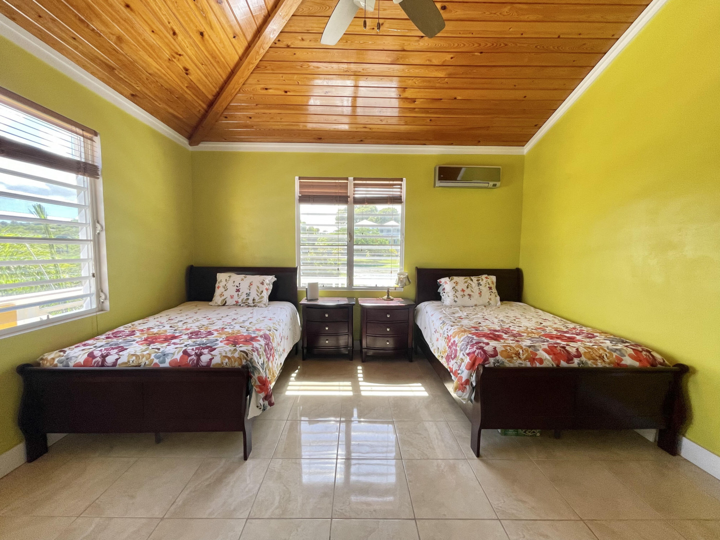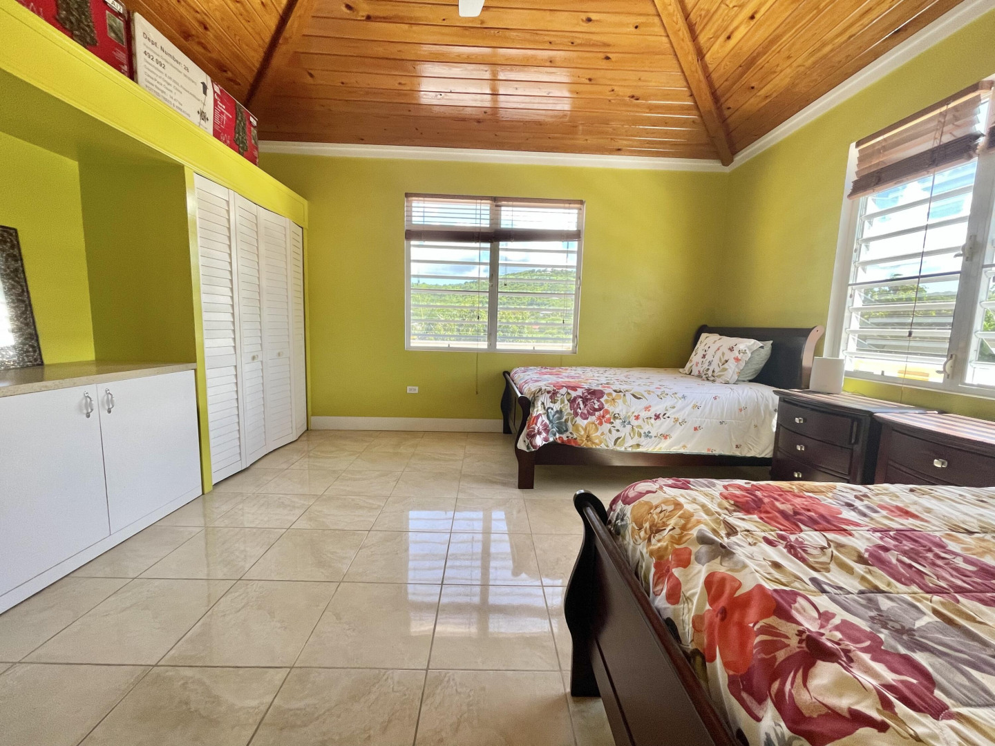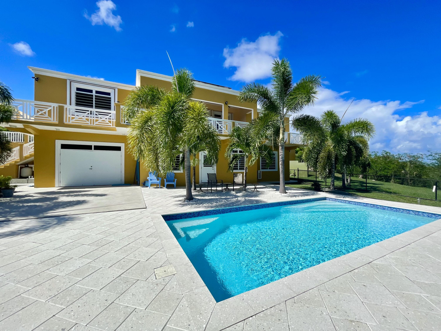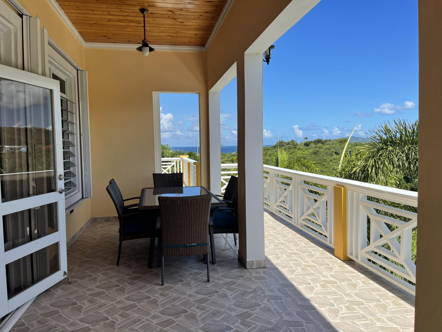 TURN-KEY PROPERTY! Nestled along a quiet hillside, this meticulously maintained home has a lot of great features! The upstairs consists of a spacious open floor plan with vaulted ceilings, two bedrooms and two bathrooms. Open the double doors to a wraparound balcony where you can sip your morning coffee with a view of Buck Island. Downstairs is a spacious studio as well as a large space that is set up as a media/entertaining space and opens up to the pool. You may be able to add a staircase for easy accessibility to the upper level. The house is situated on over an acre of land and the area surrounding the house and pool is beautifully landscaped.Features include: 7.8 KW solar system with batteries, UV filtration system, 22K propane generator, hurricane shutters.