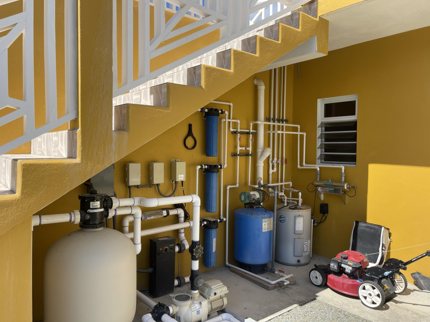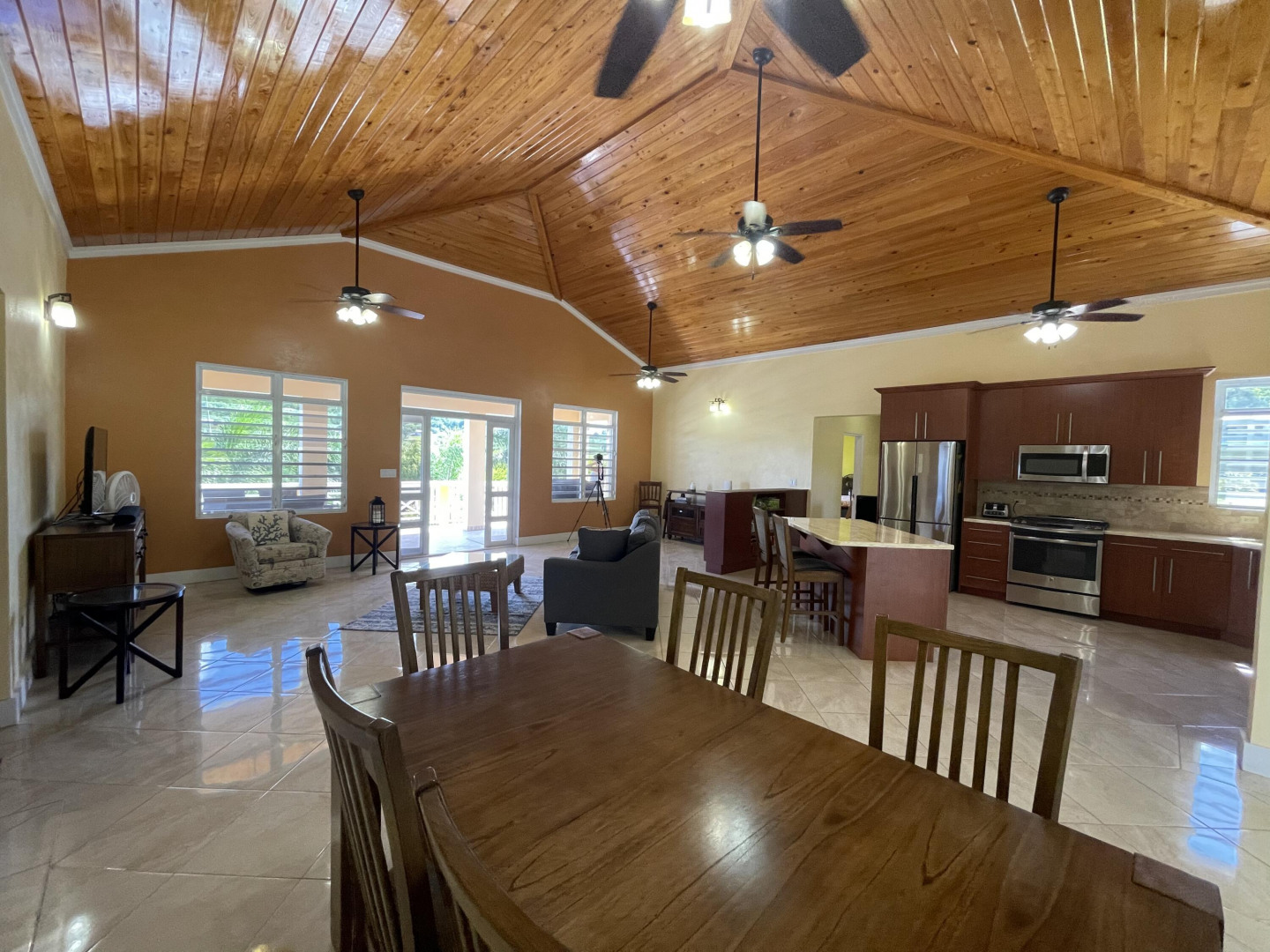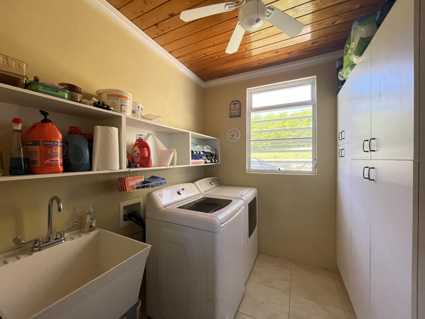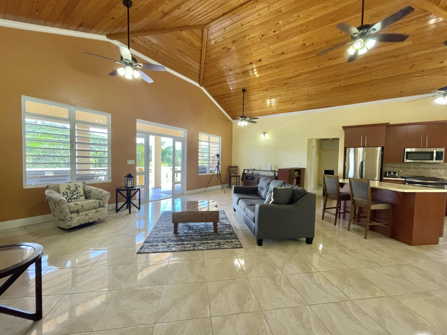 TURN-KEY PROPERTY! Nestled along a quiet hillside, this meticulously maintained home has a lot of great features! The upstairs consists of a spacious open floor plan with vaulted ceilings, two bedrooms and two bathrooms. Open the double doors to a wraparound balcony where you can sip your morning coffee with a view of Buck Island. Downstairs is a spacious studio as well as a large space that is set up as a media/entertaining space and opens up to the pool. You may be able to add a staircase for easy accessibility to the upper level. The house is situated on over an acre of land and the area surrounding the house and pool is beautifully landscaped.Features include: 7.8 KW solar system with batteries, UV filtration system, 22K propane generator, hurricane shutters.